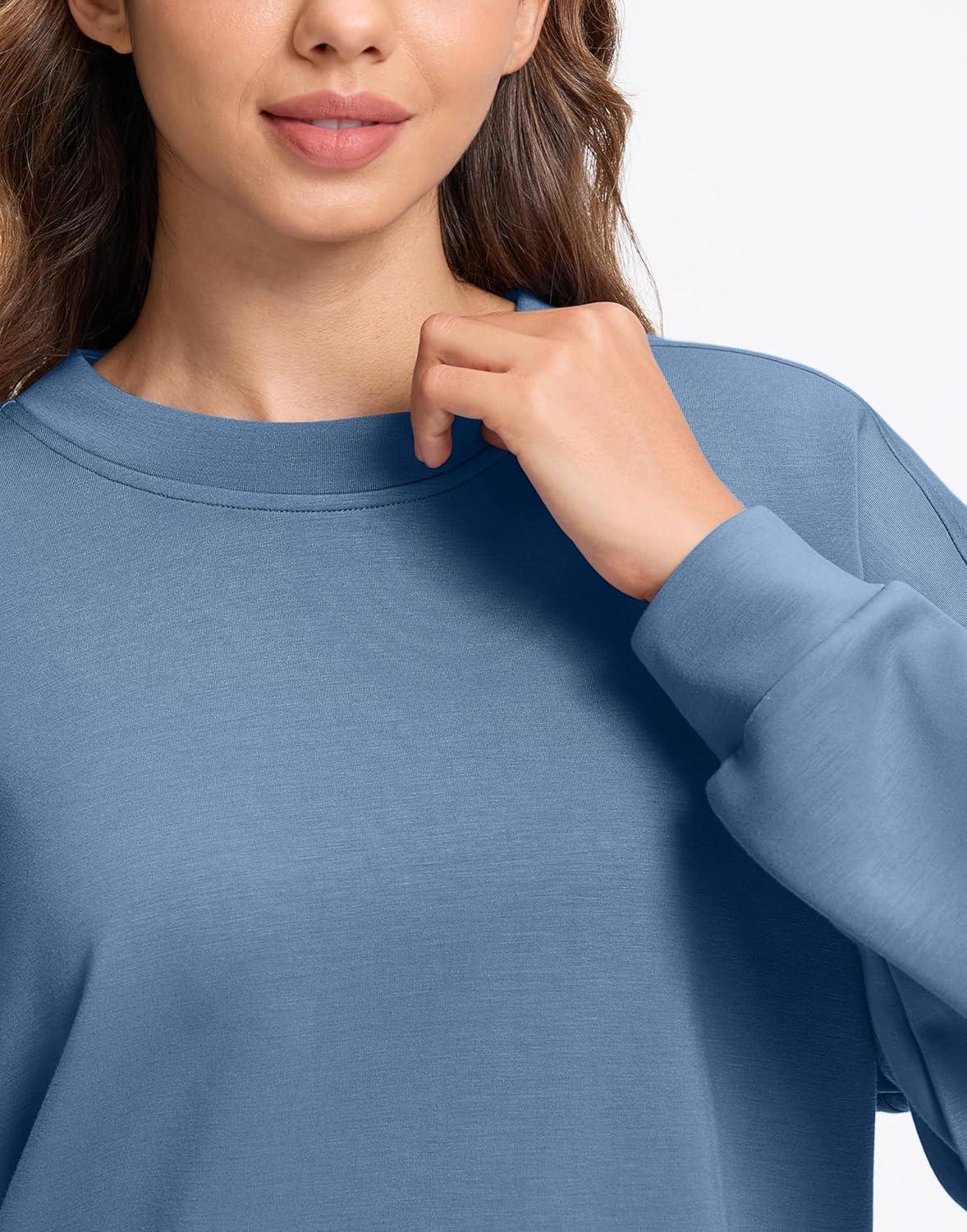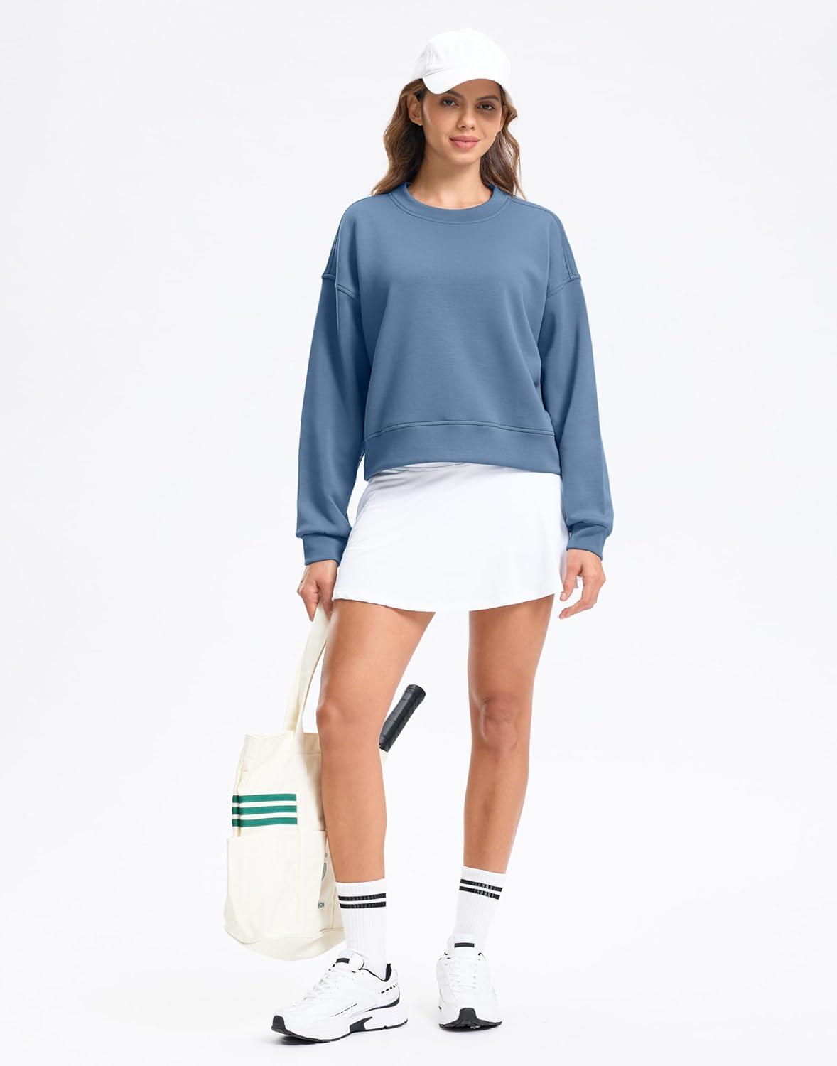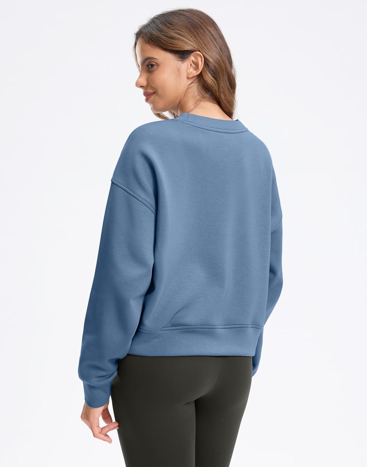 SANTINY Fleece Cropped Sweatshirts for Women Soft Crewneck Sweatshirt Pullover Long Sleeve Workout Crop Tops(Dusty Blue)