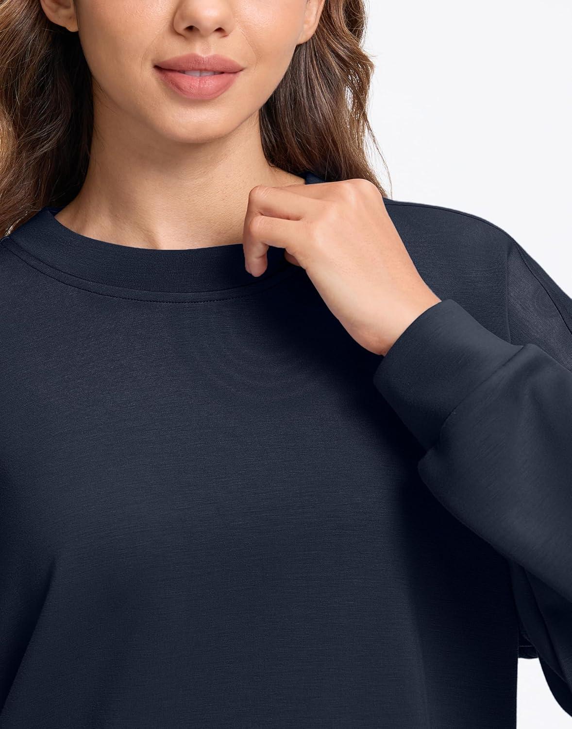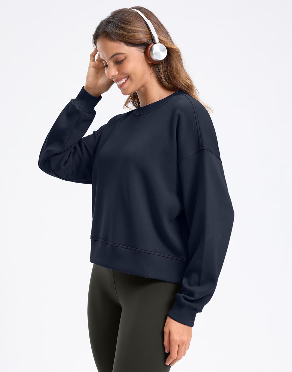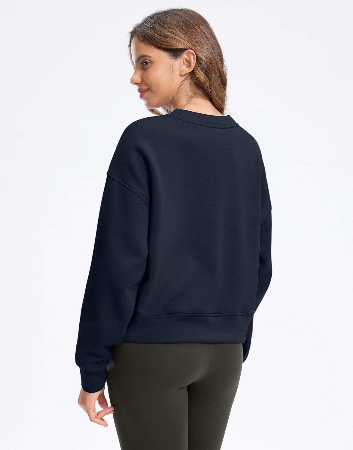 SANTINY Fleece Cropped Sweatshirts for Women Soft Crewneck Sweatshirt Pullover Long Sleeve Workout Crop Tops(Navy)