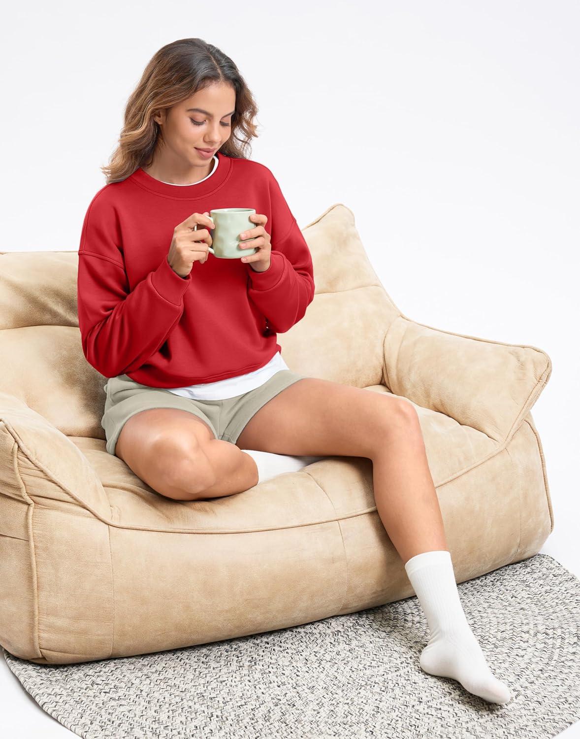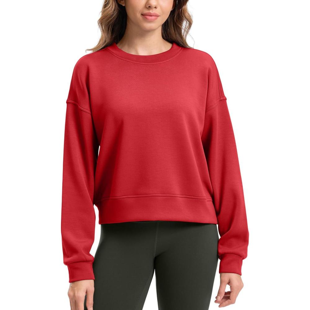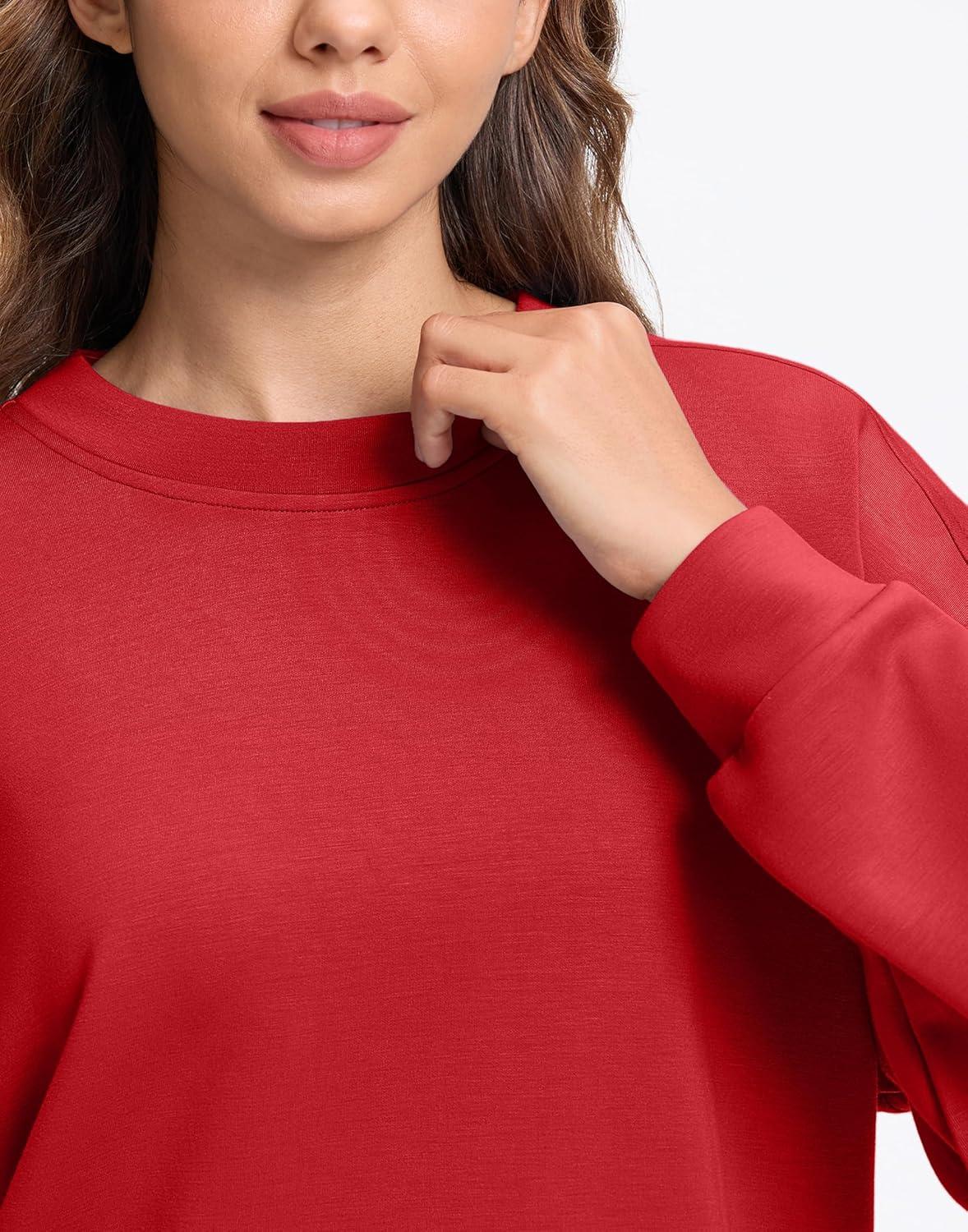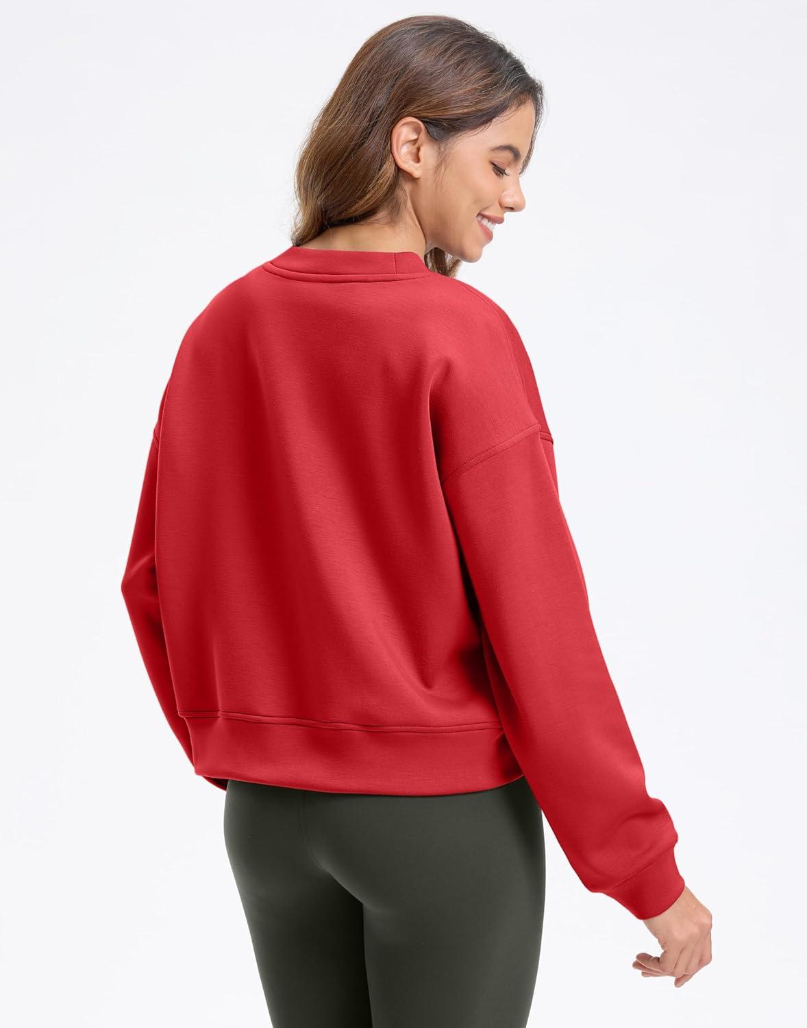 SANTINY Fleece Cropped Sweatshirts for Women Soft Crewneck Sweatshirt Pullover Long Sleeve Workout Crop Tops(Red)