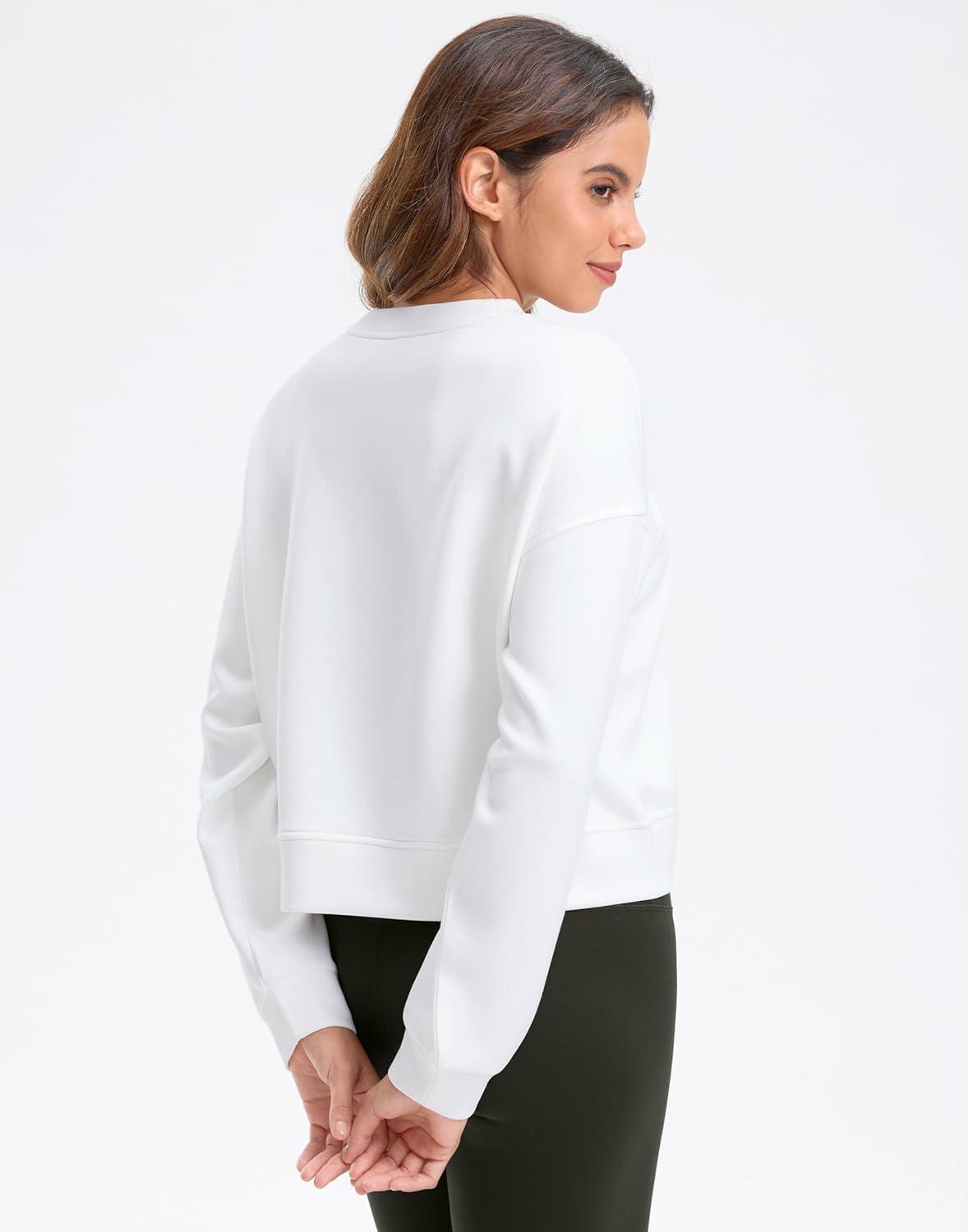 SANTINY Fleece Cropped Sweatshirts for Women Soft Crewneck Sweatshirt Pullover Long Sleeve Workout Crop Tops(White)