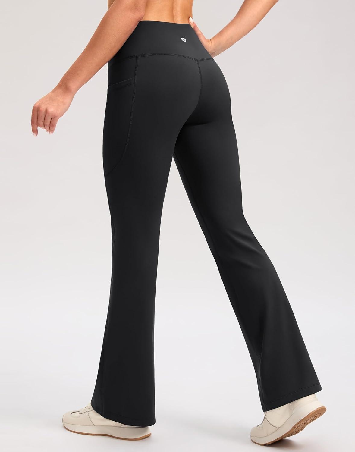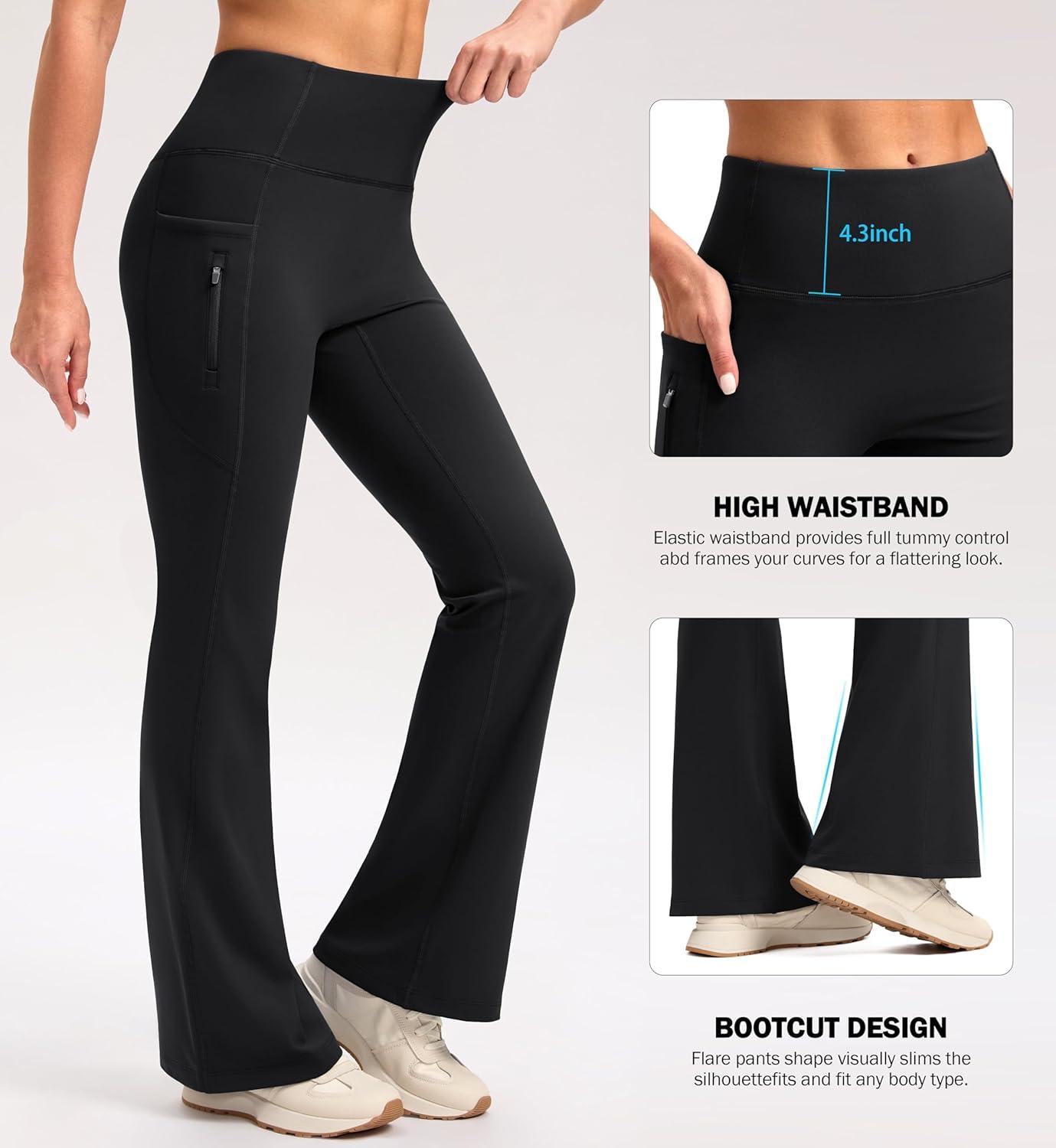 SANTINY Fleece Lined Flare Leggings Women 28.5/30.5/32 Water Resistant Winter Bell Bottom Hiking Yoga Pants with Pockets(Black)