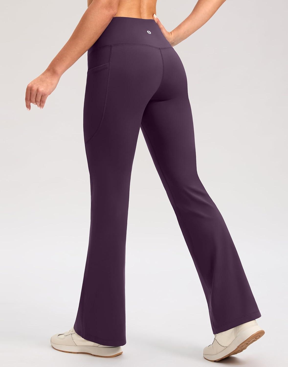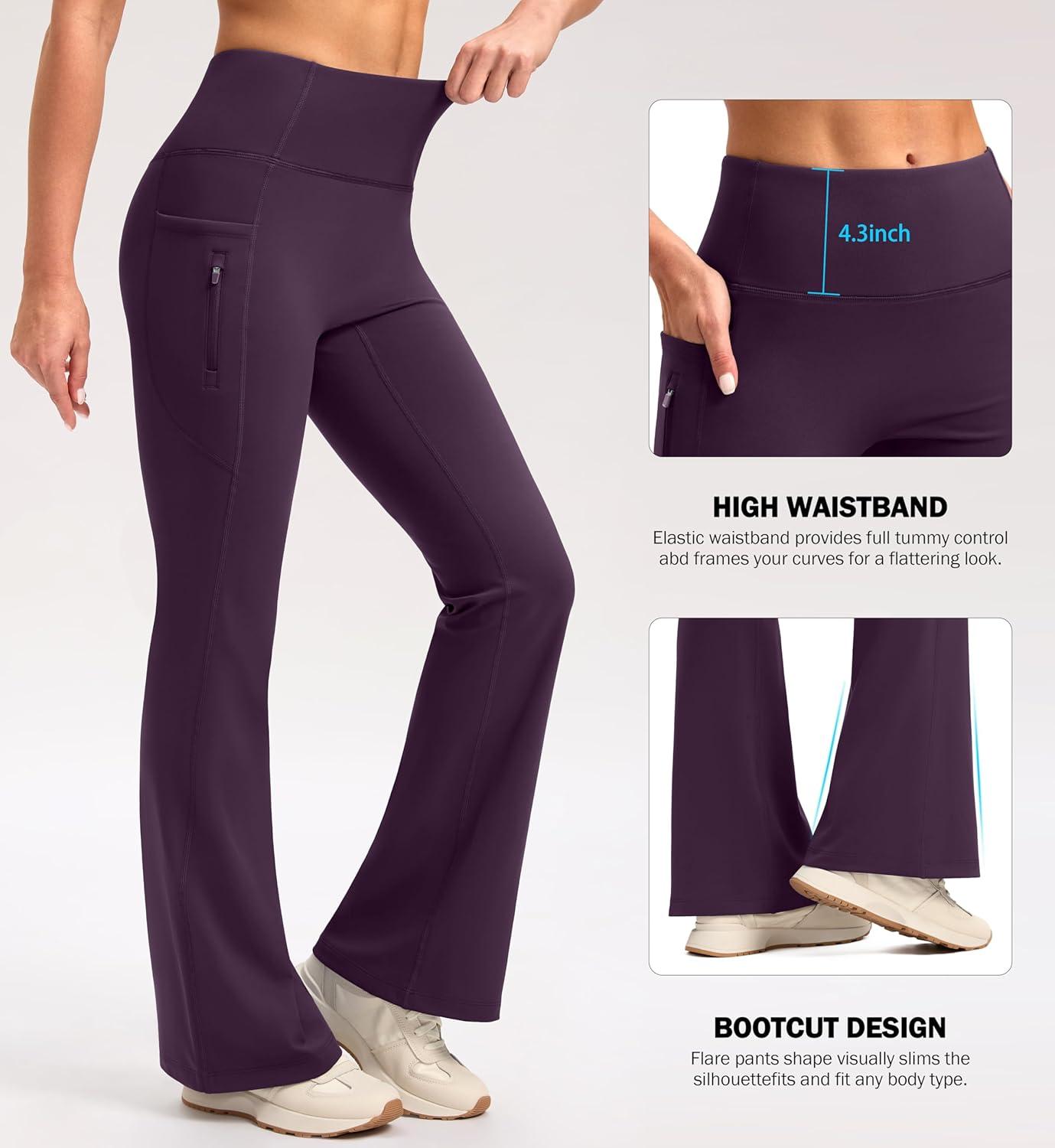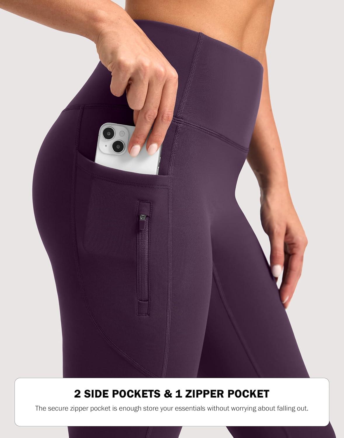 SANTINY Fleece Lined Flare Leggings Women 28.5/30.5/32 Water Resistant Winter Bell Bottom Hiking Yoga Pants with Pockets(Purple)
