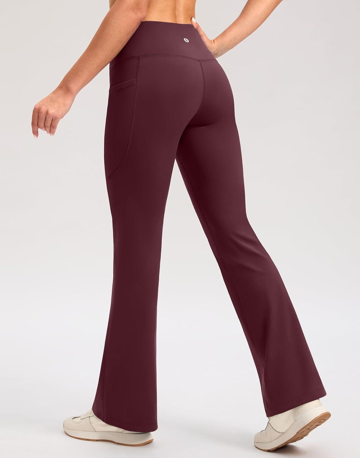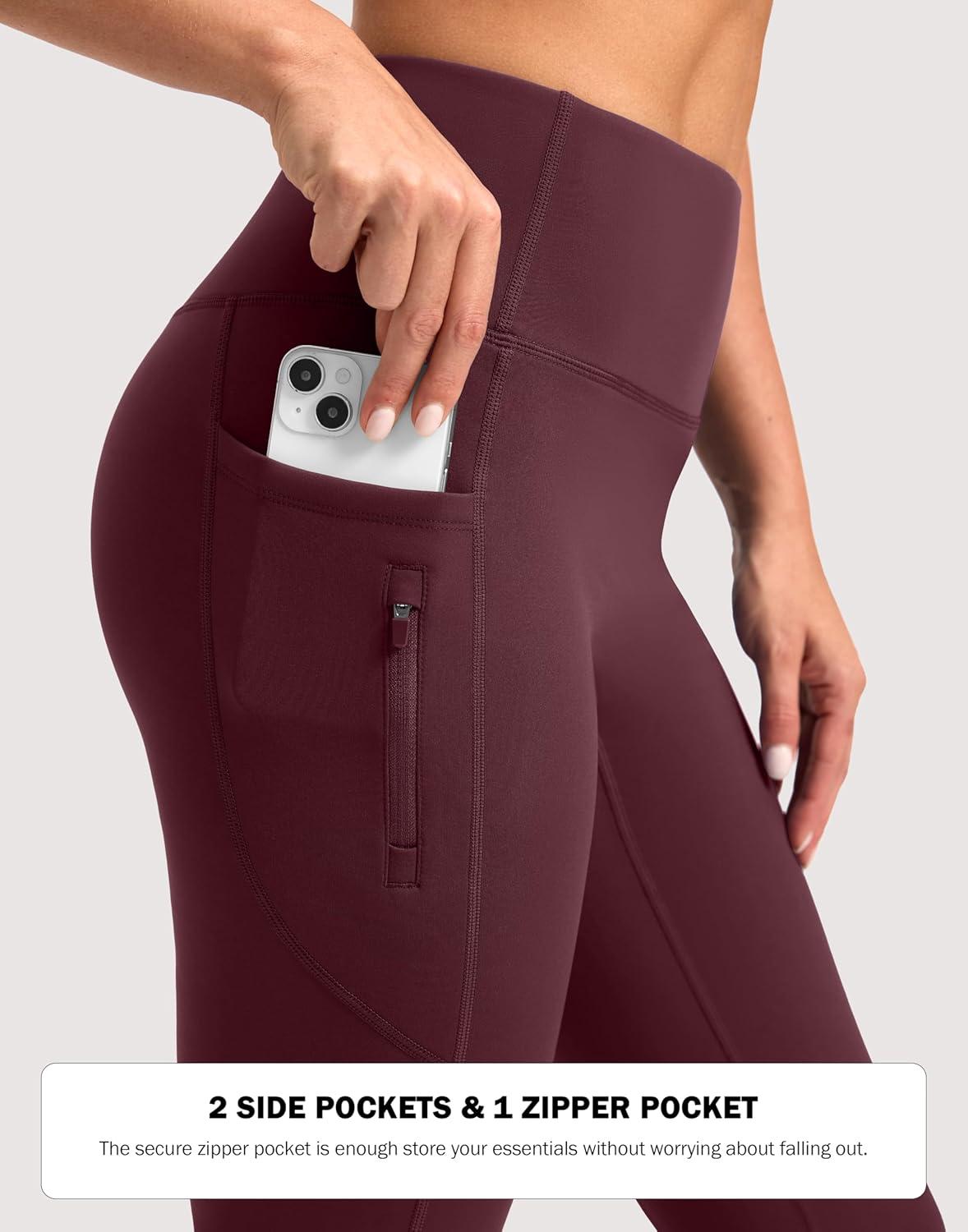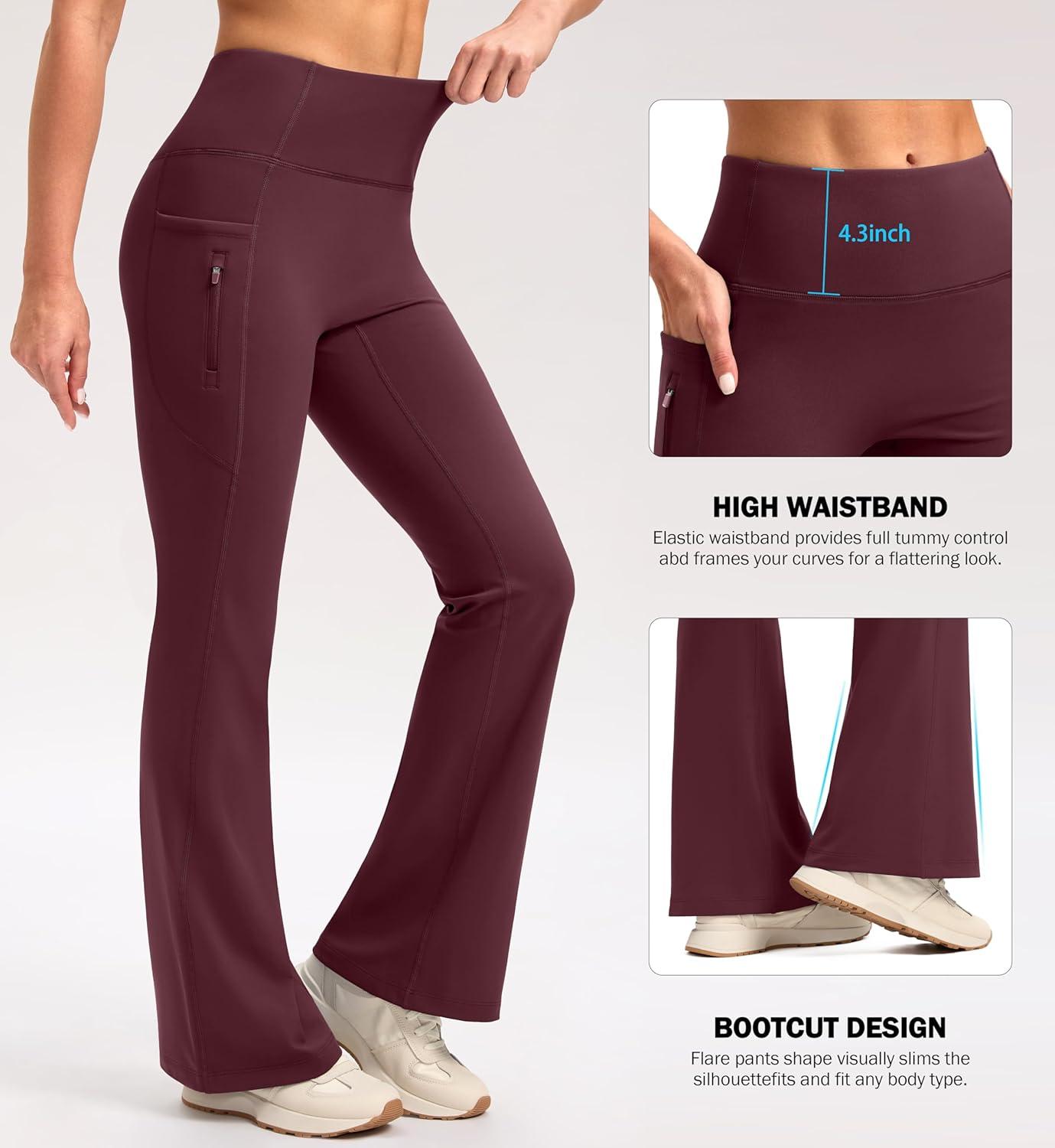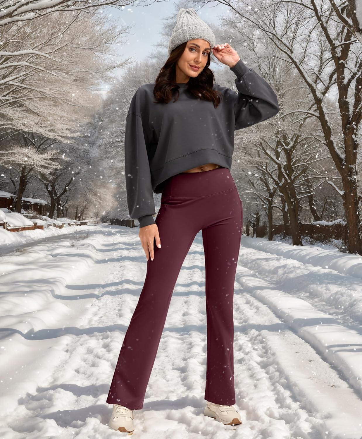 SANTINY Fleece Lined Flare Leggings Women 28.5/30.5/32 Water Resistant Winter Bell Bottom Hiking Yoga Pants with Pockets(Wine)