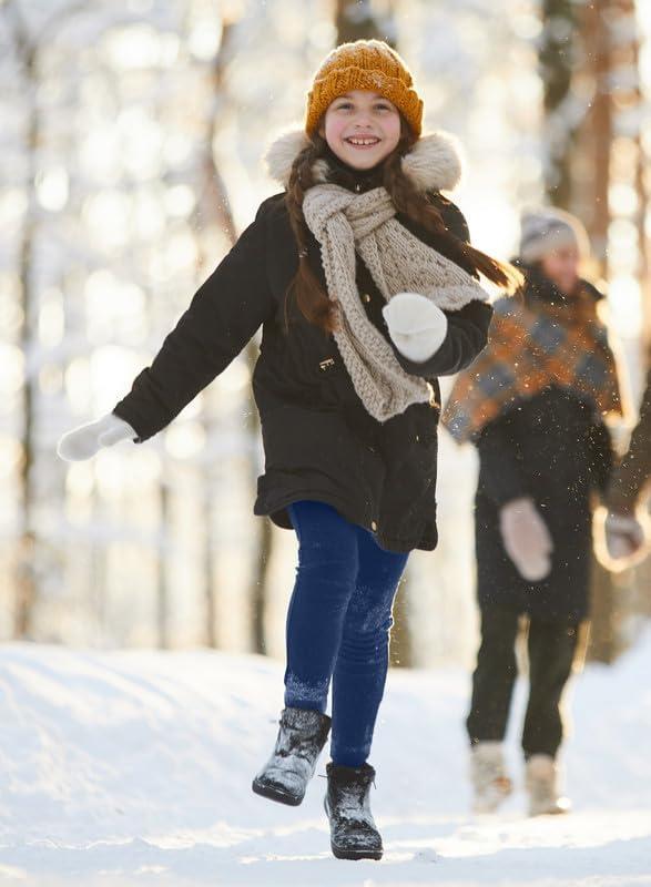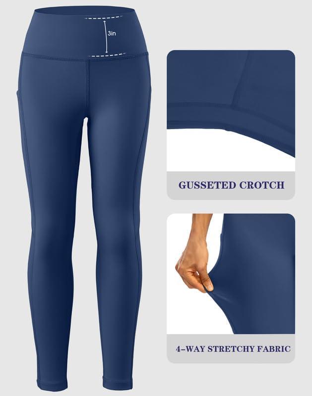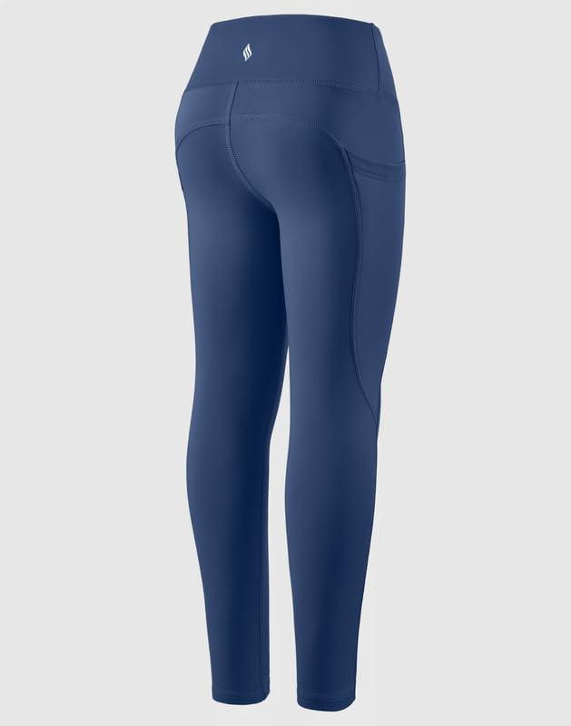 SANTINY Girl’s Fleece Lined Leggings with Pockets Kids Thermal Warm Winter High Waisted Athletic Running Workout Yoga Pants(Deep Blue)