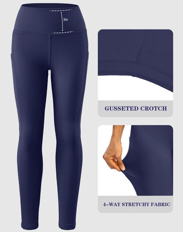 SANTINY Girl’s Fleece Lined Leggings with Pockets Kids Thermal Warm Winter High Waisted Athletic Running Workout Yoga Pants(Navy)