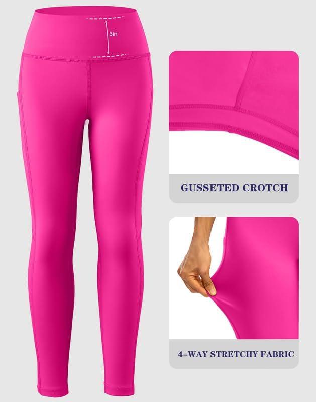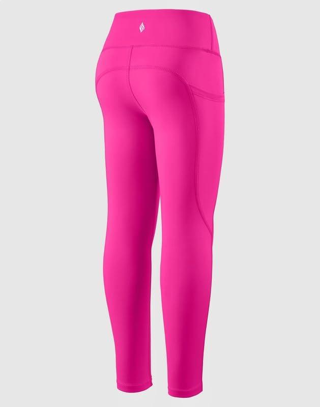 SANTINY Girl’s Fleece Lined Leggings with Pockets Kids Thermal Warm Winter High Waisted Athletic Running Workout Yoga Pants(Rose)