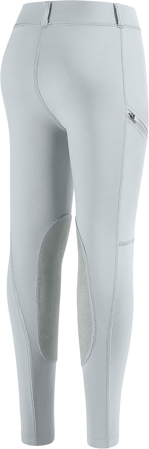 SANTINY Girls Horse Riding Pants with Zipper Pockets Kids Stretchy Equestrian Breeches Knee-Patch Youth Schooling Tights(Light Grey)
