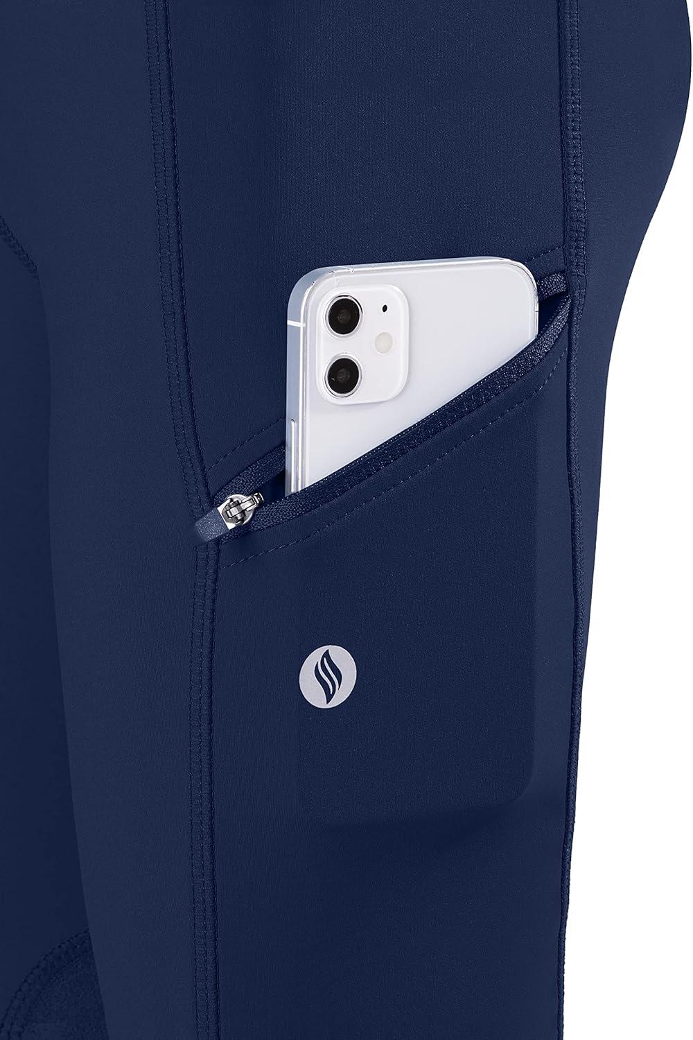 SANTINY Girls Horse Riding Pants with Zipper Pockets Kids Stretchy Equestrian Breeches Knee-Patch Youth Schooling Tights(Navy)