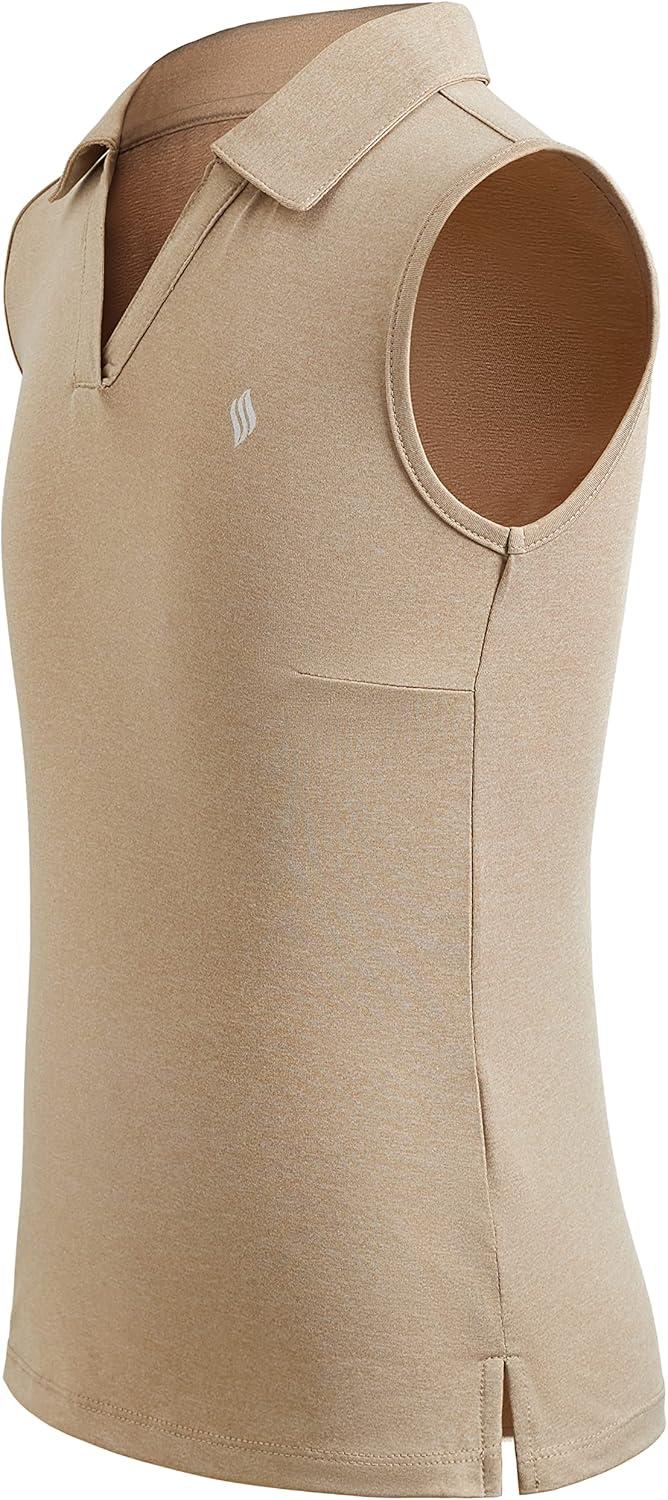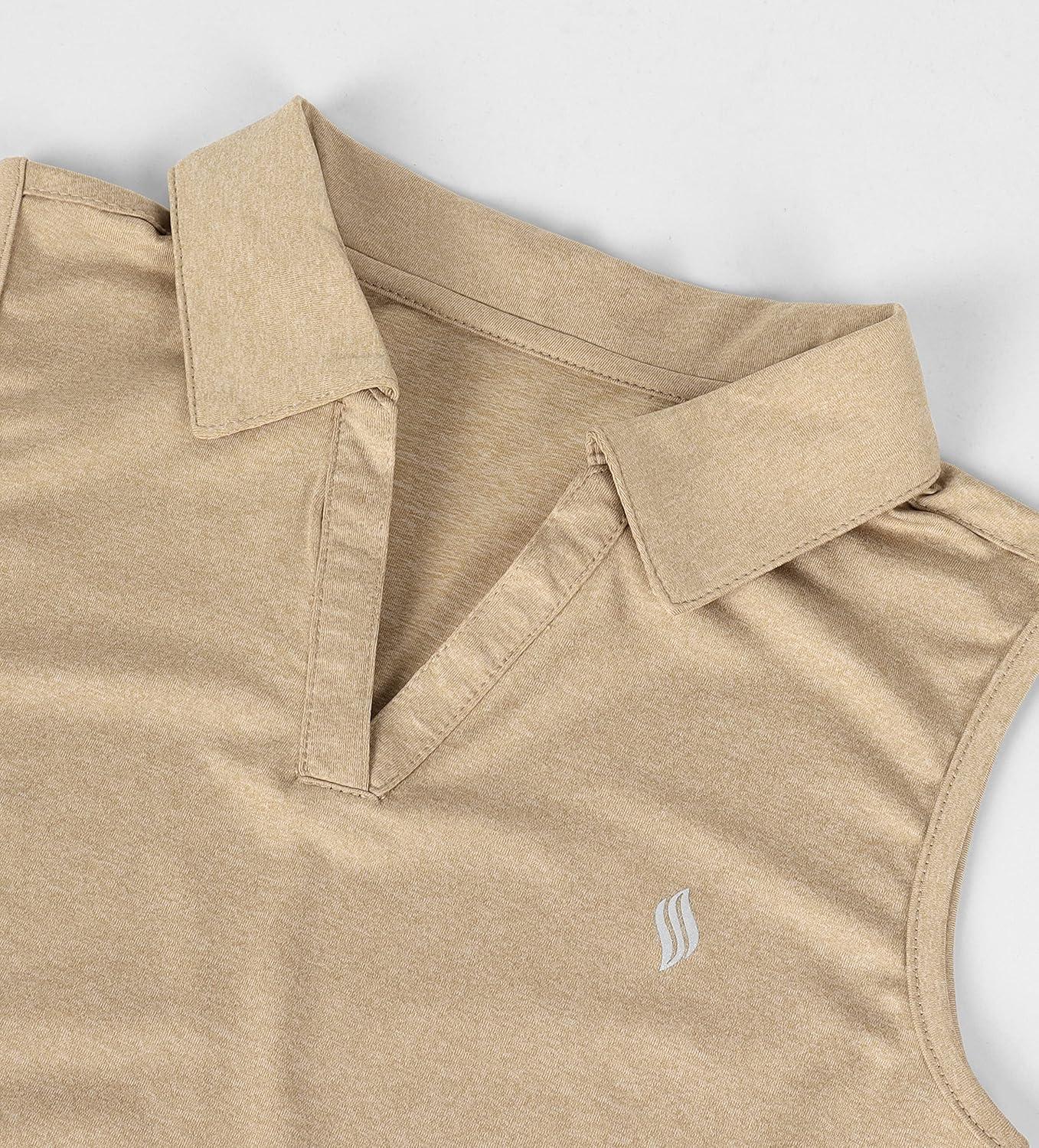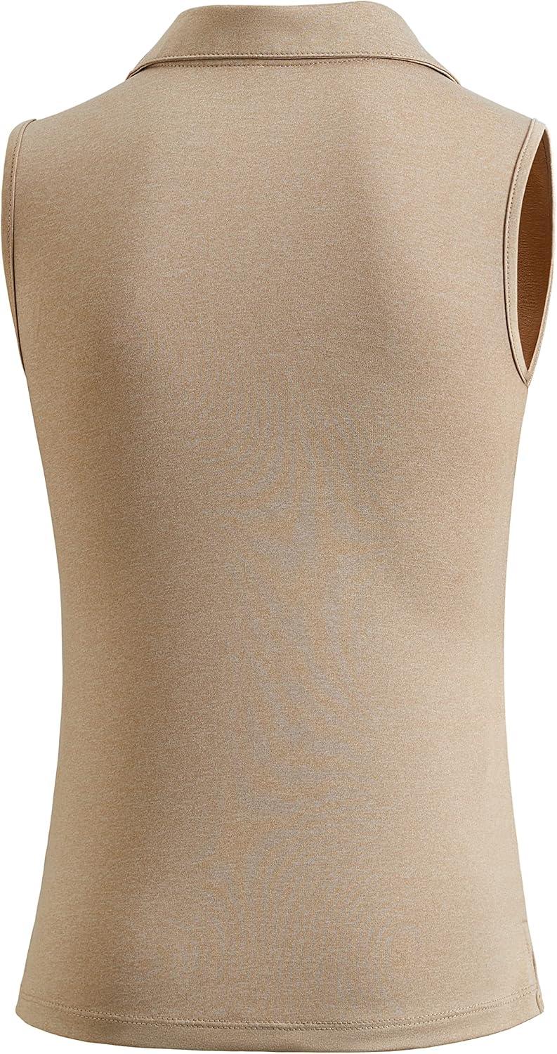 SANTINY Girls’ Sleeveless Golf Shirt V-Neck Quick Dry Tennis Tank Tops Golf Clothes Collared Polo Shirts for Girl(Khaki)