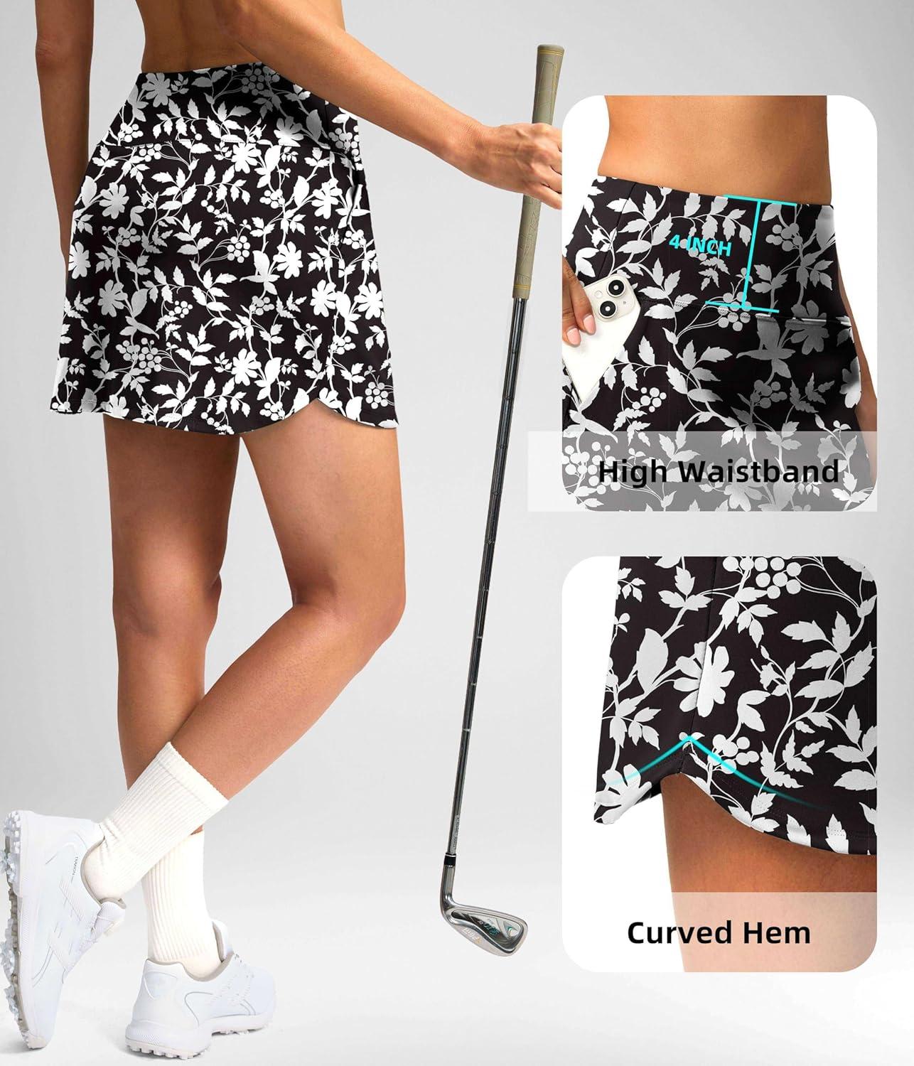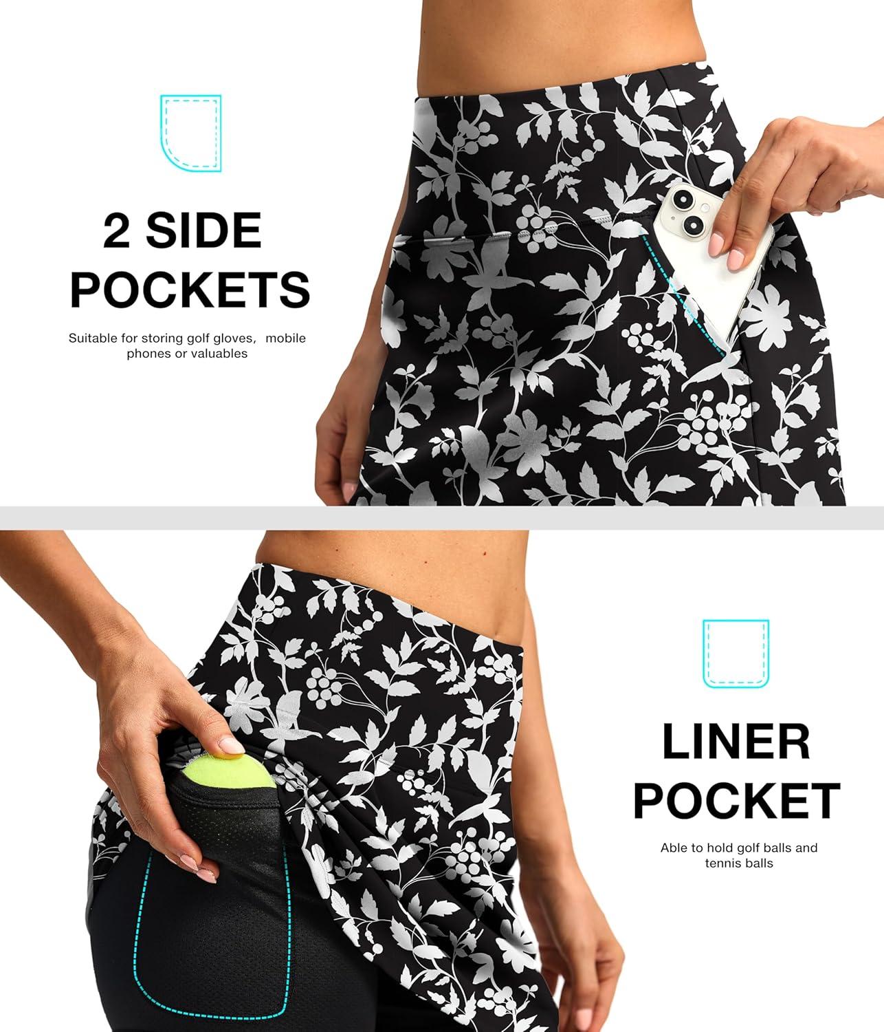 SANTINY Golf Skirts for Women Tennis Skirt High Waisted Skorts for Woman Athletic Pickleball Casual Skort with Pockets(Black Flower)