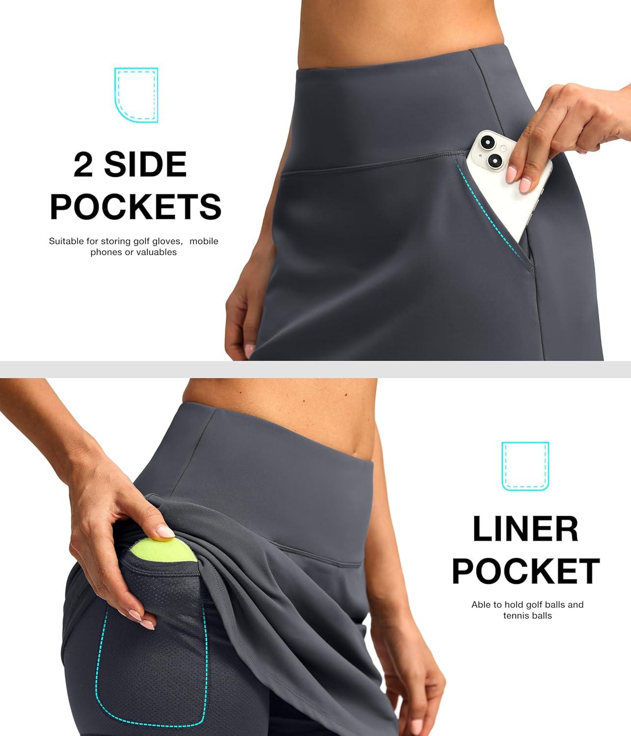 SANTINY Golf Skirts for Women Tennis Skirt High Waisted Skorts for Woman Athletic Pickleball Casual Skort with Pockets(Iron Grey)