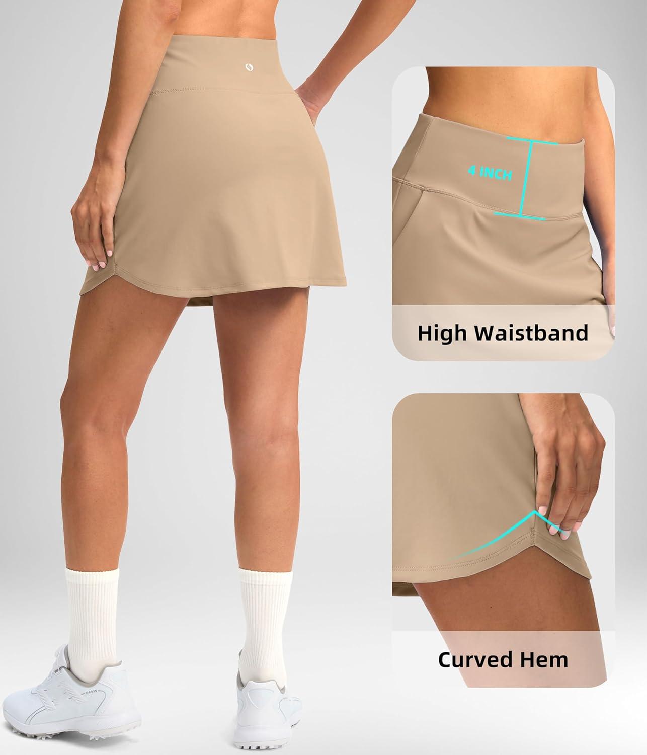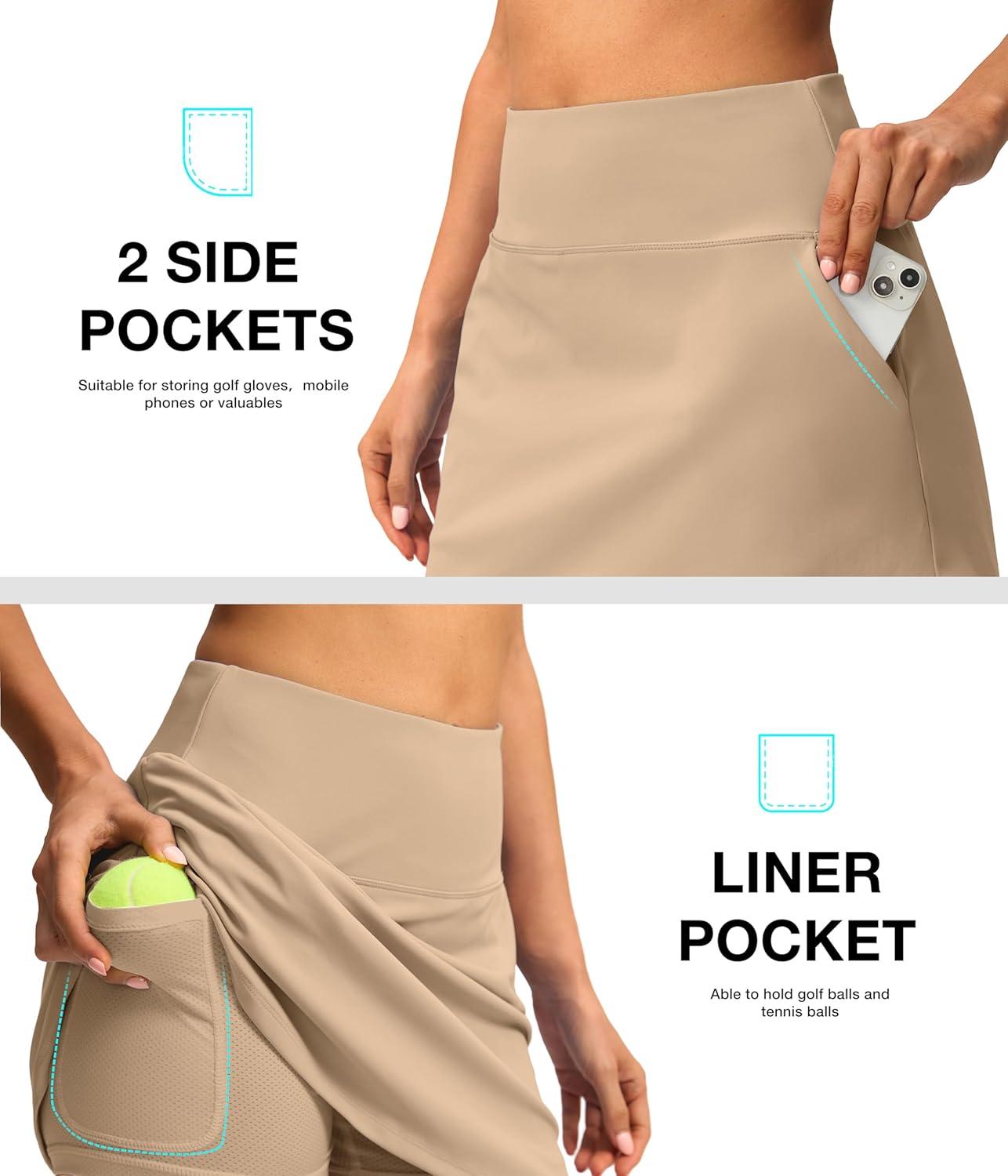 SANTINY Golf Skirts for Women Tennis Skirt High Waisted Skorts for Woman Athletic Pickleball Casual Skort with Pockets(Light Khaki)
