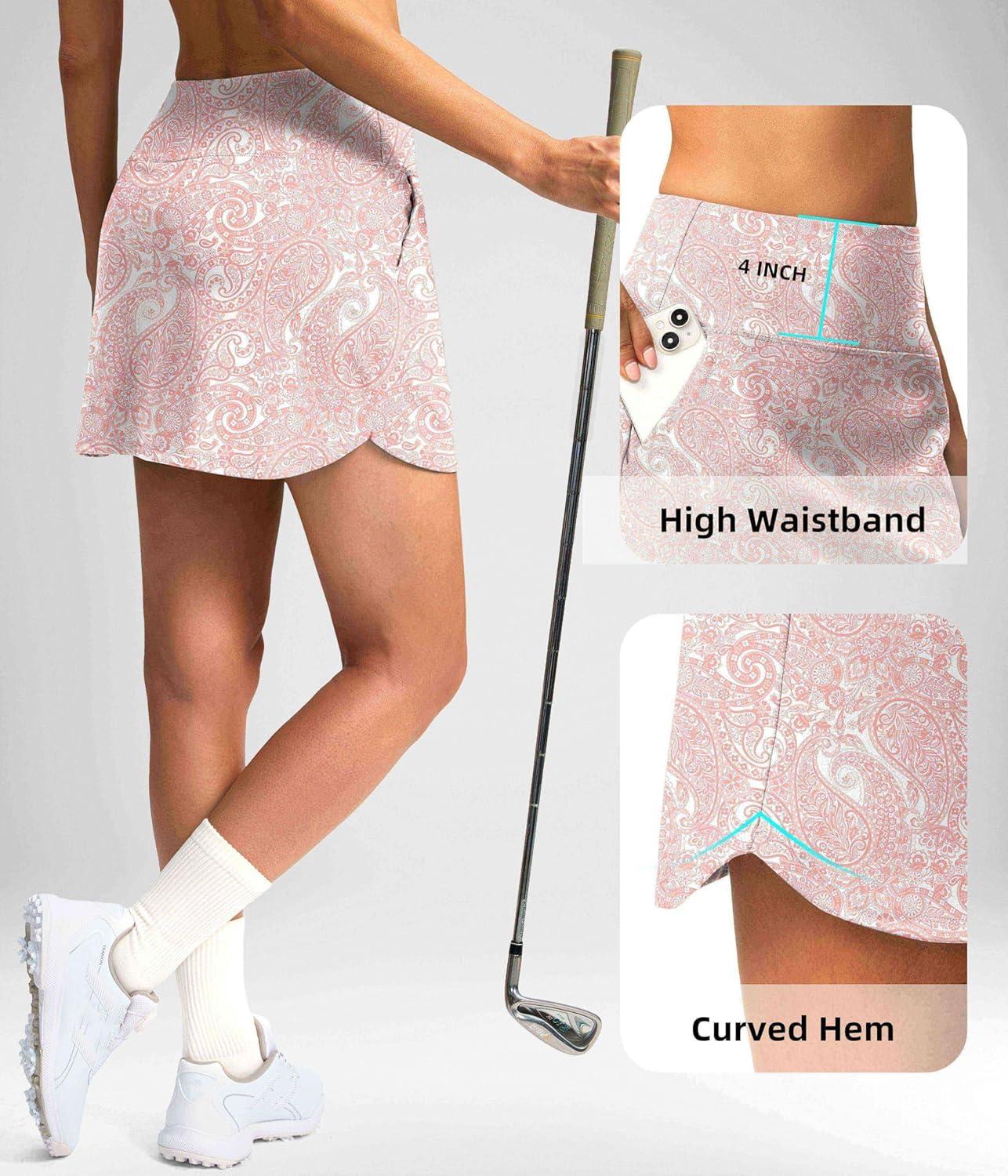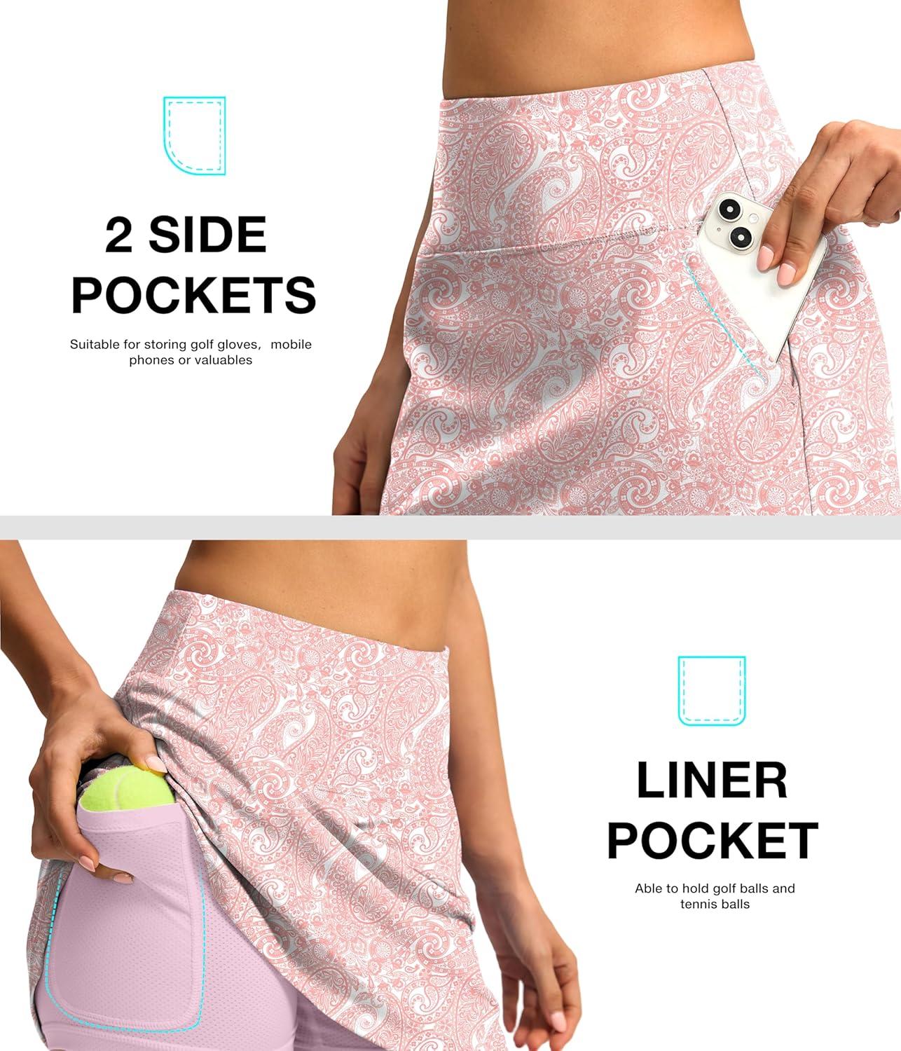 SANTINY Golf Skirts for Women Tennis Skirt High Waisted Skorts for Woman Athletic Pickleball Casual Skort with Pockets(Pink Paisley)