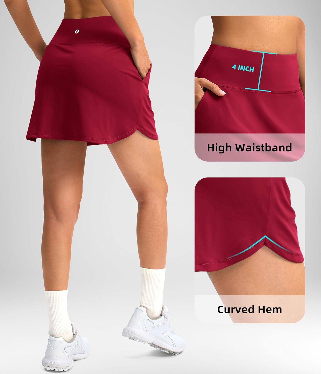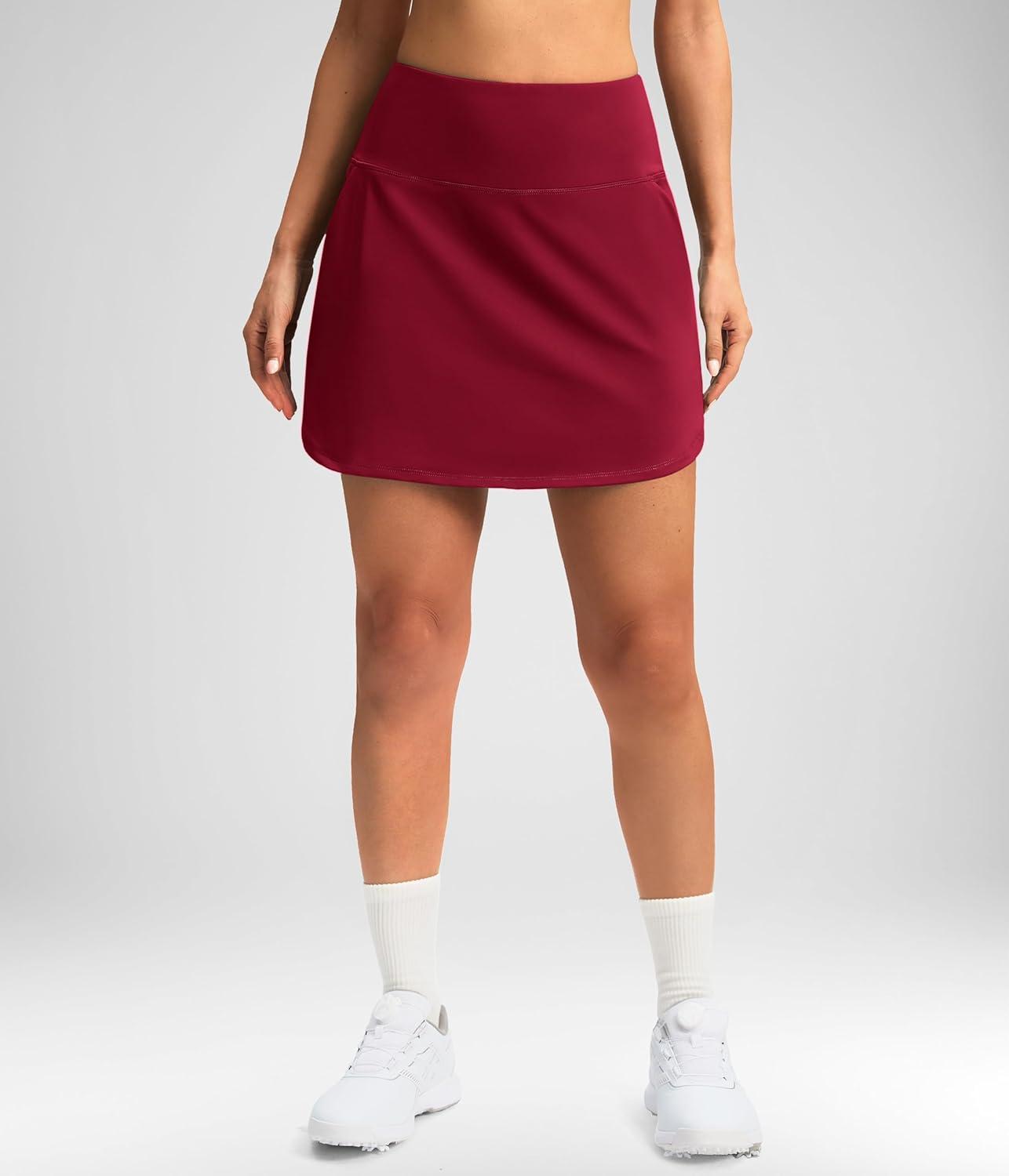 SANTINY Golf Skirts for Women Tennis Skirt High Waisted Skorts for Woman Athletic Pickleball Casual Skort with Pockets(Red)