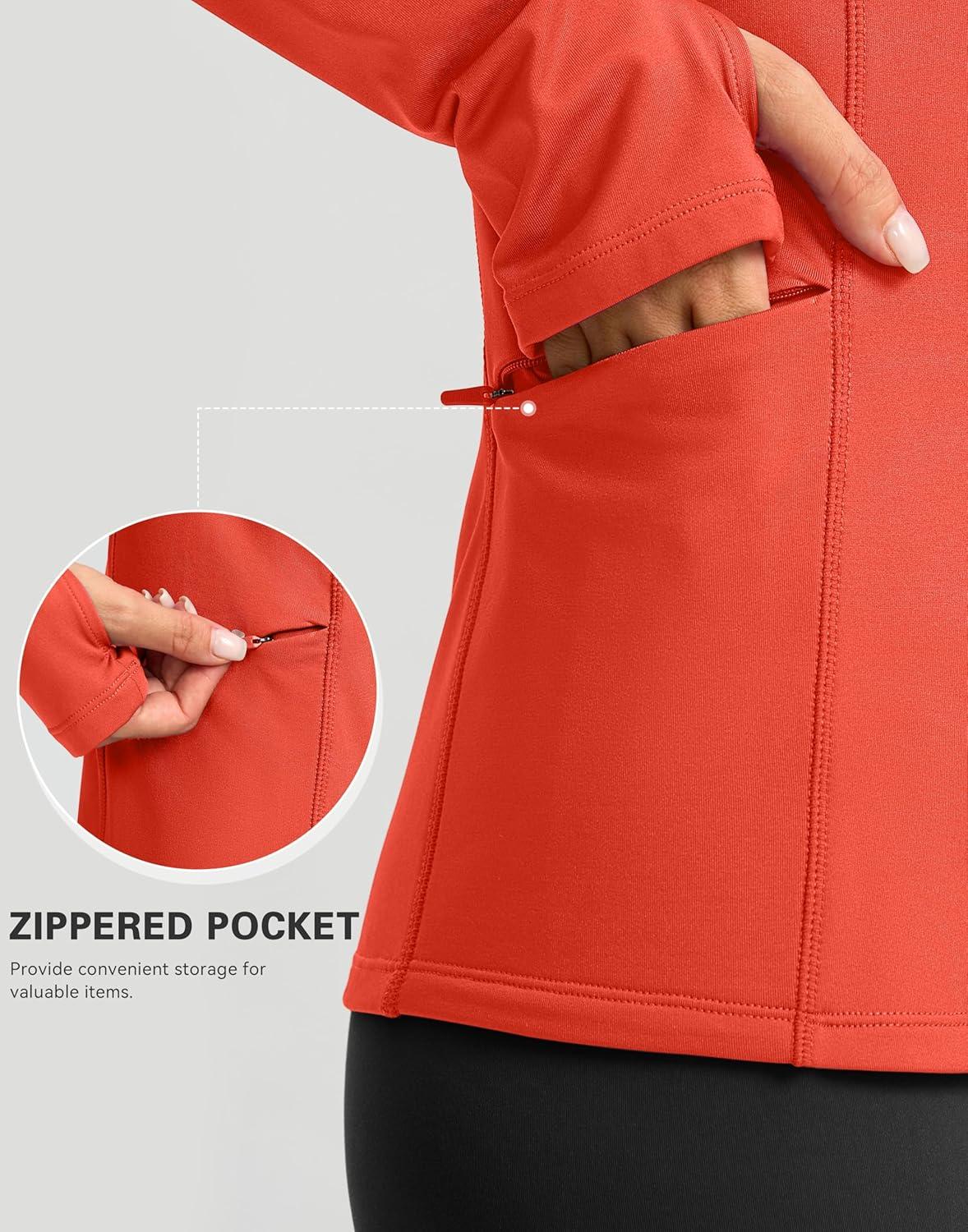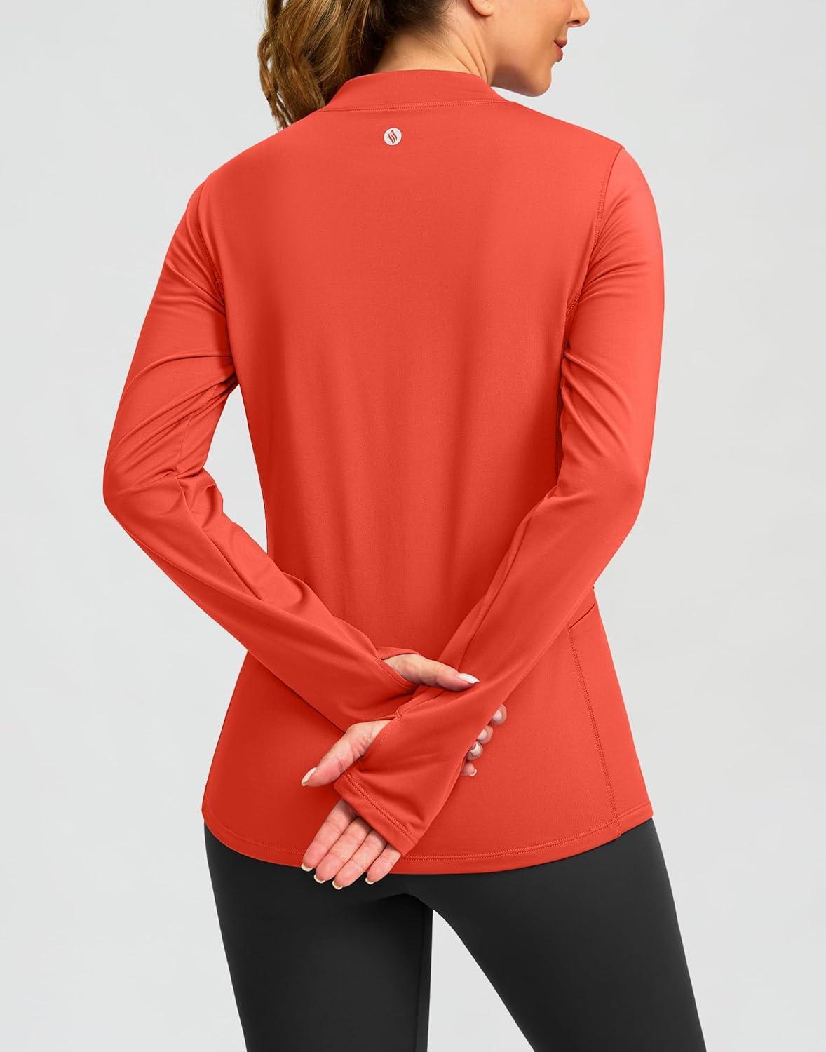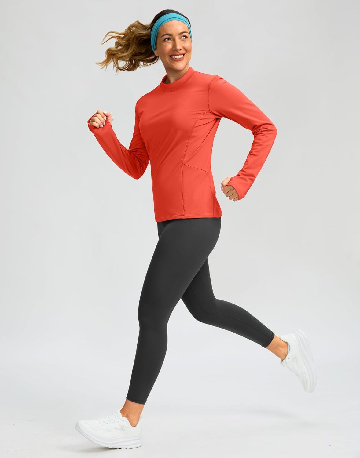 SANTINY Long Sleeve Thermal Shirts for Women Fleece Mock Neck Tops Winter Workout Running Gear with Zipper Pockets(Coral)