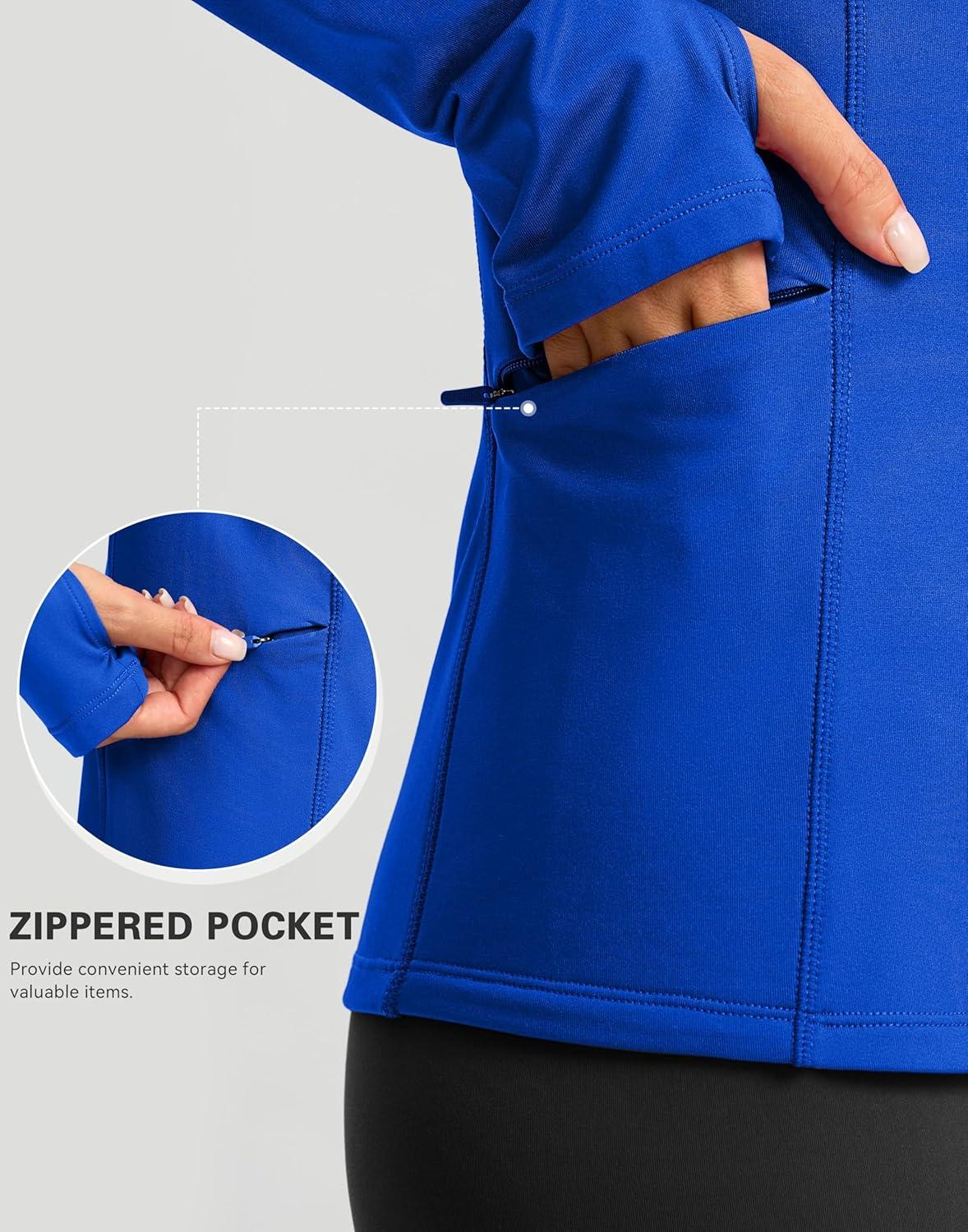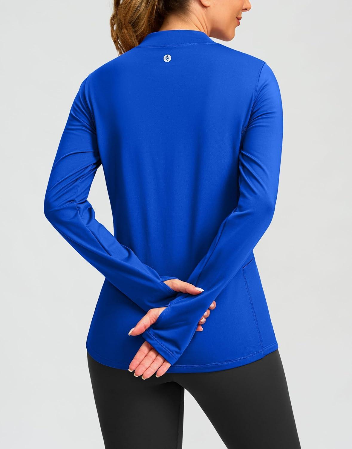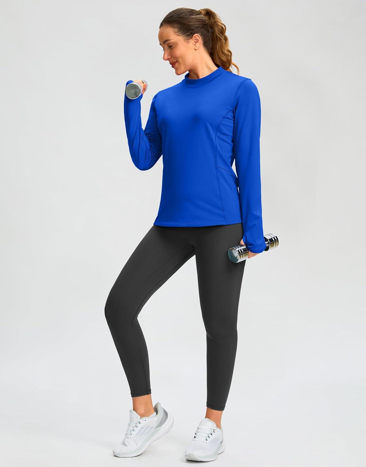 SANTINY Long Sleeve Thermal Shirts for Women Fleece Mock Neck Tops Winter Workout Running Gear with Zipper Pockets(Slate Blue)