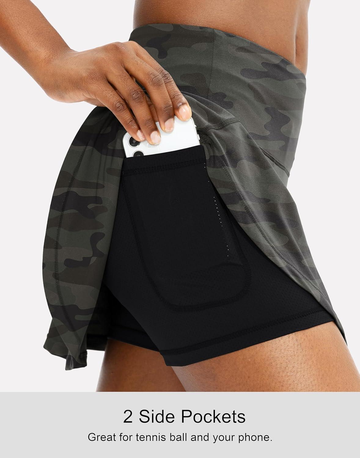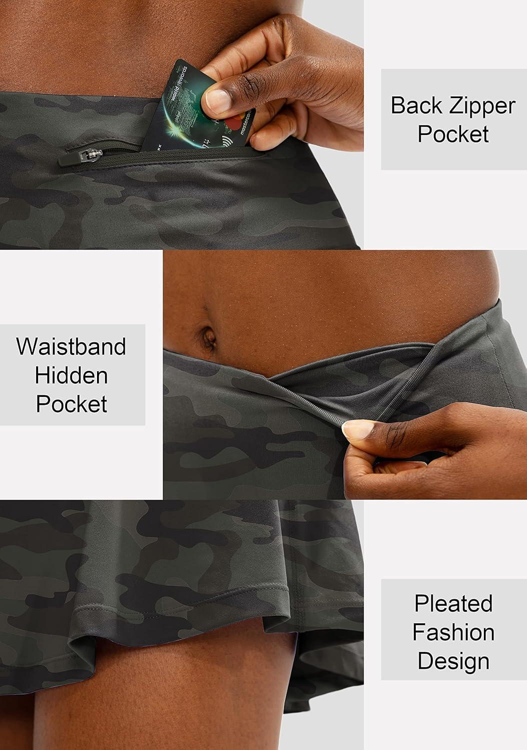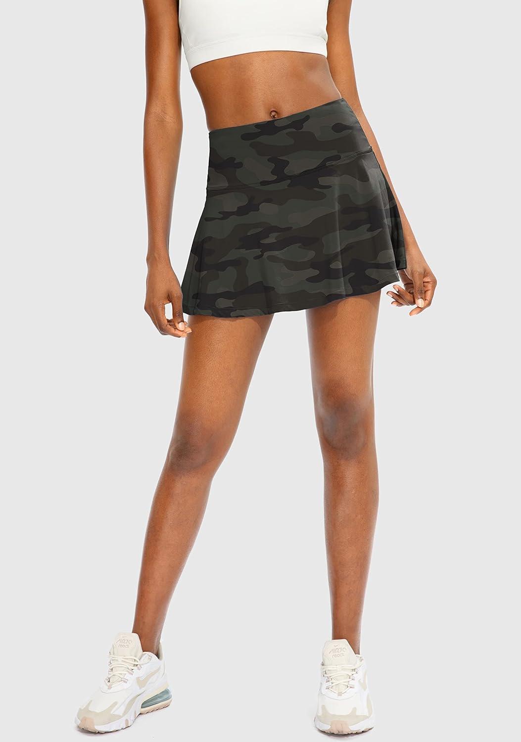 SANTINY Pleated Tennis Skirt for Women with 4 Pockets Women’s High Waisted Athletic Golf Skorts Skirts for Running Casual(Green Camo)