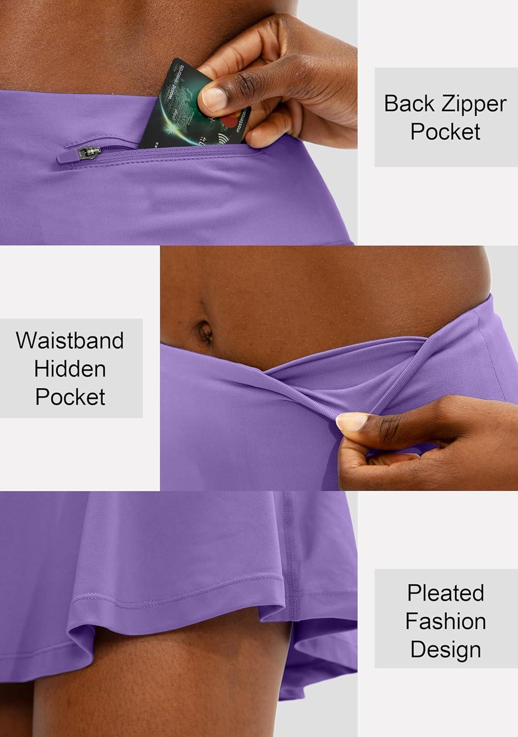SANTINY Pleated Tennis Skirt for Women with 4 Pockets Women’s High Waisted Athletic Golf Skorts Skirts for Running Casual(Lavender)
