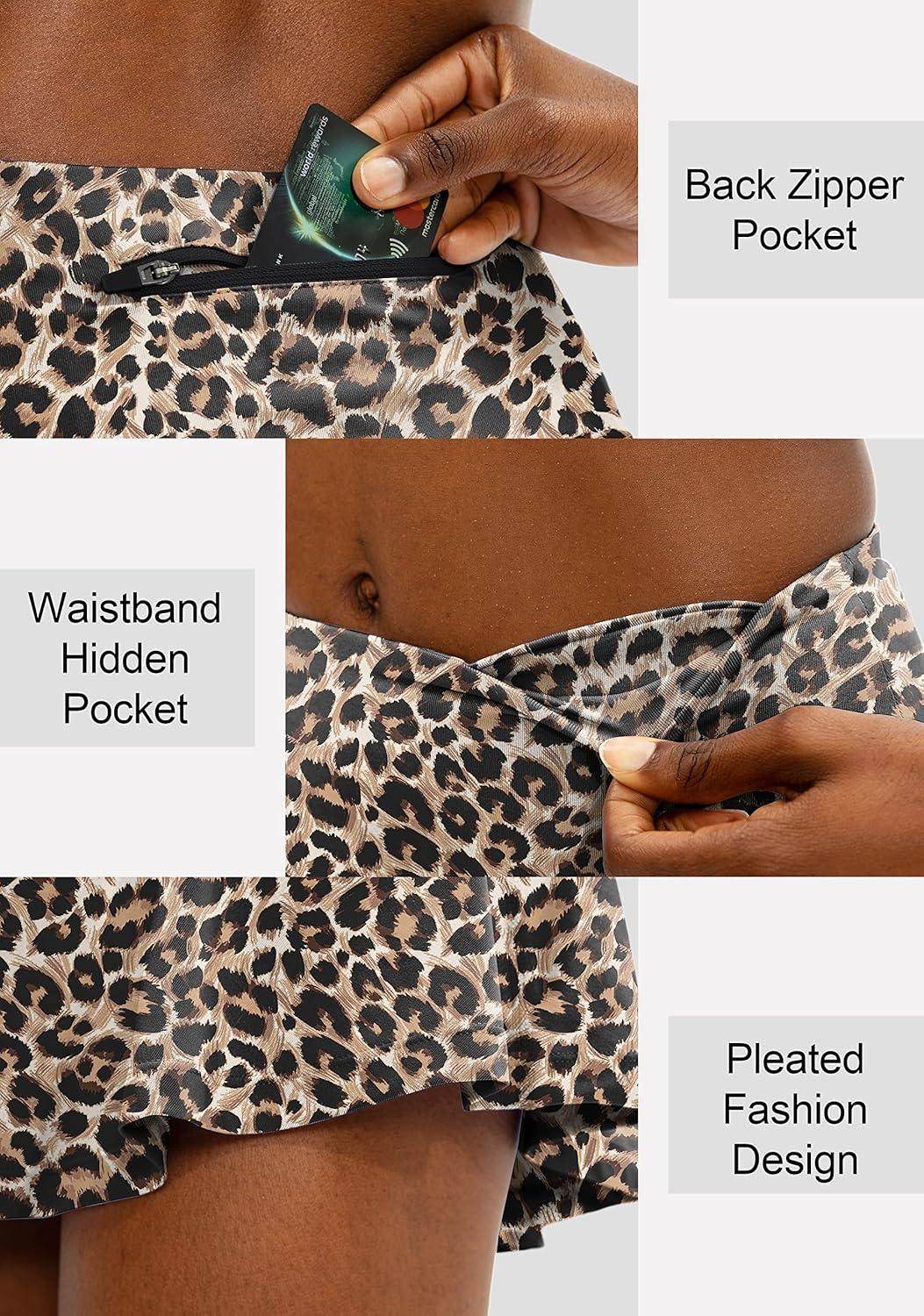 SANTINY Pleated Tennis Skirt for Women with 4 Pockets Women’s High Waisted Athletic Golf Skorts Skirts for Running Casual(Leopard)