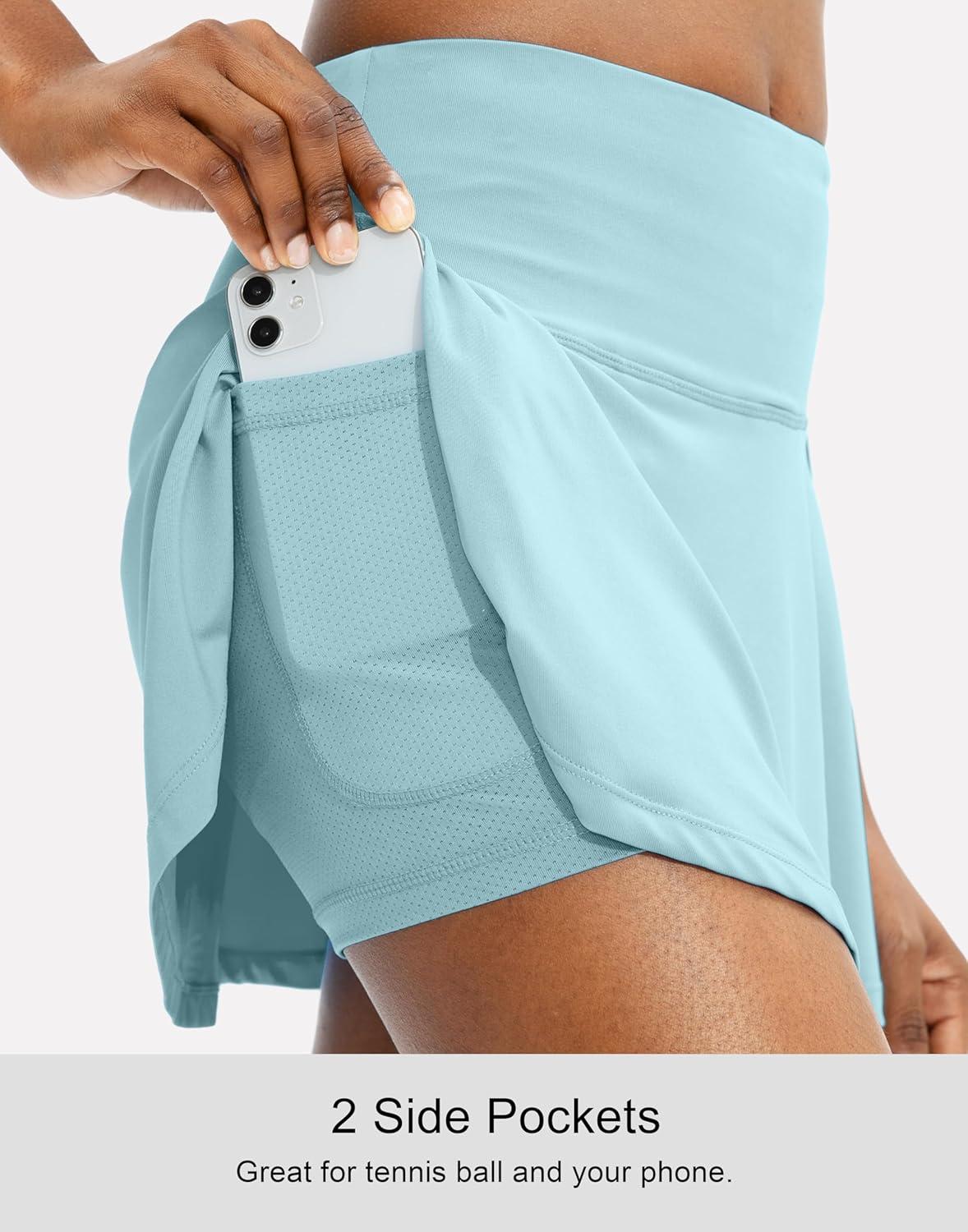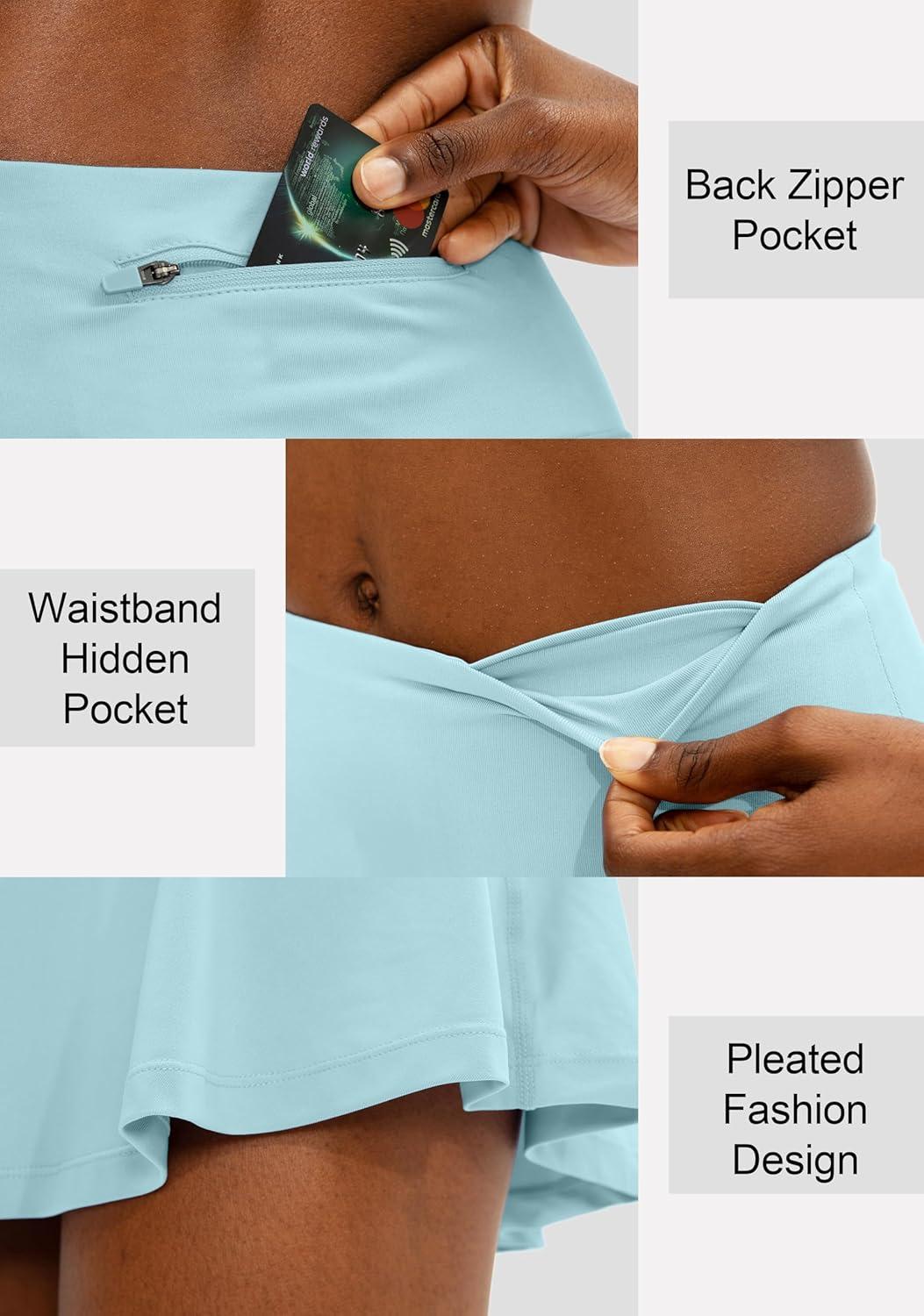 SANTINY Pleated Tennis Skirt for Women with 4 Pockets Women’s High Waisted Athletic Golf Skorts Skirts for Running Casual(Sky Blue)