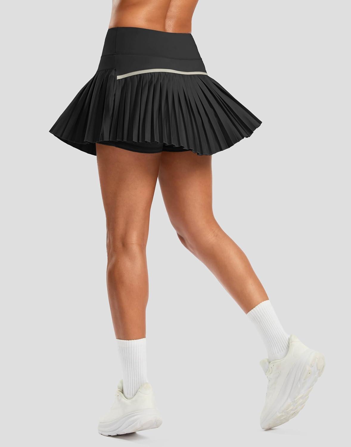 SANTINY Pleated Tennis Skirt for Women with Pockets High Waisted Athletic Golf Skorts with Shorts for Workout Pickleball(Black#grey)