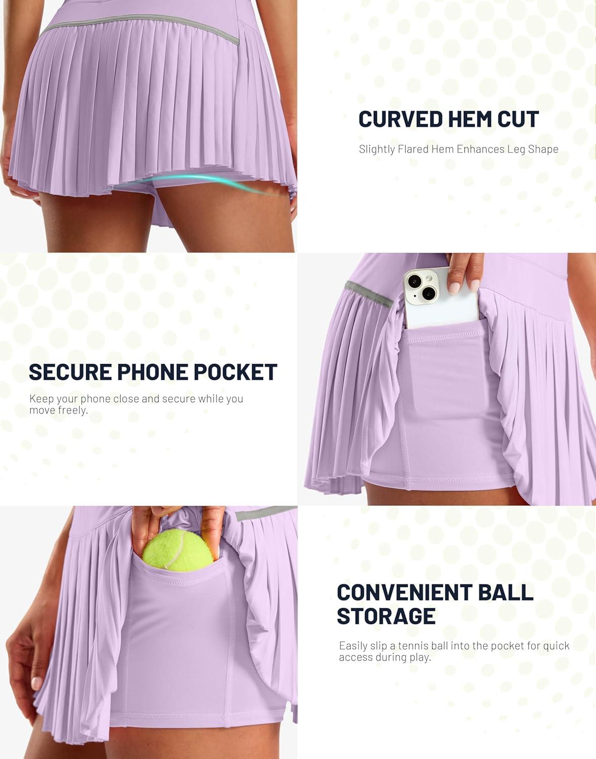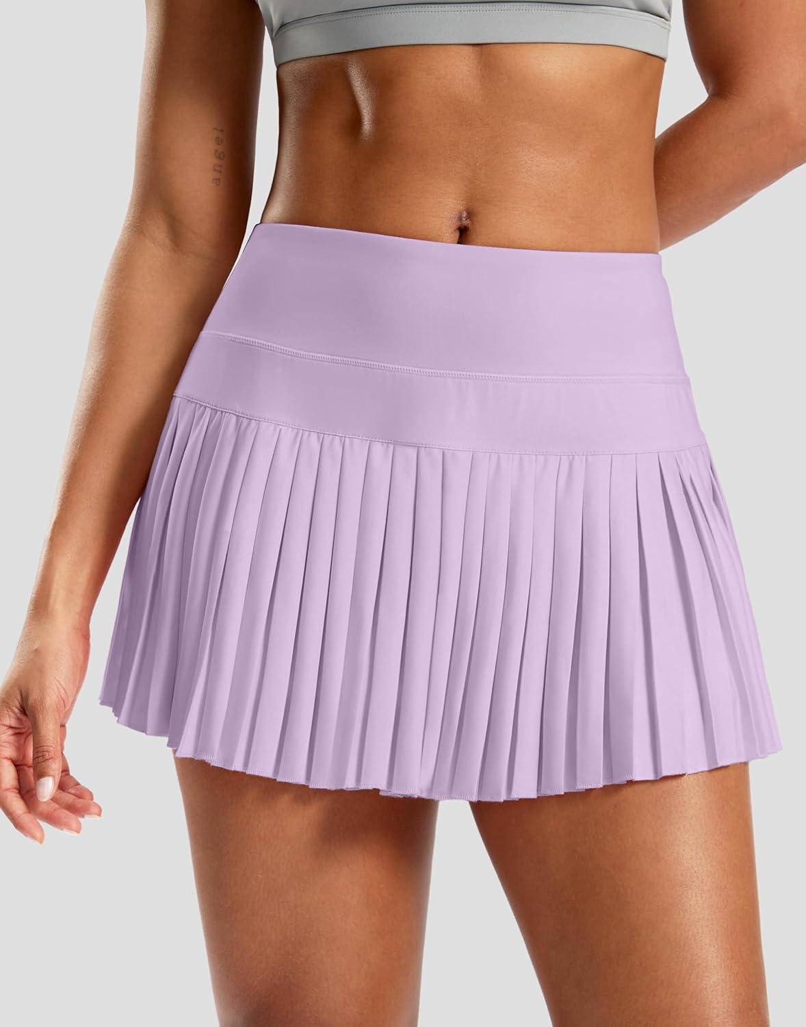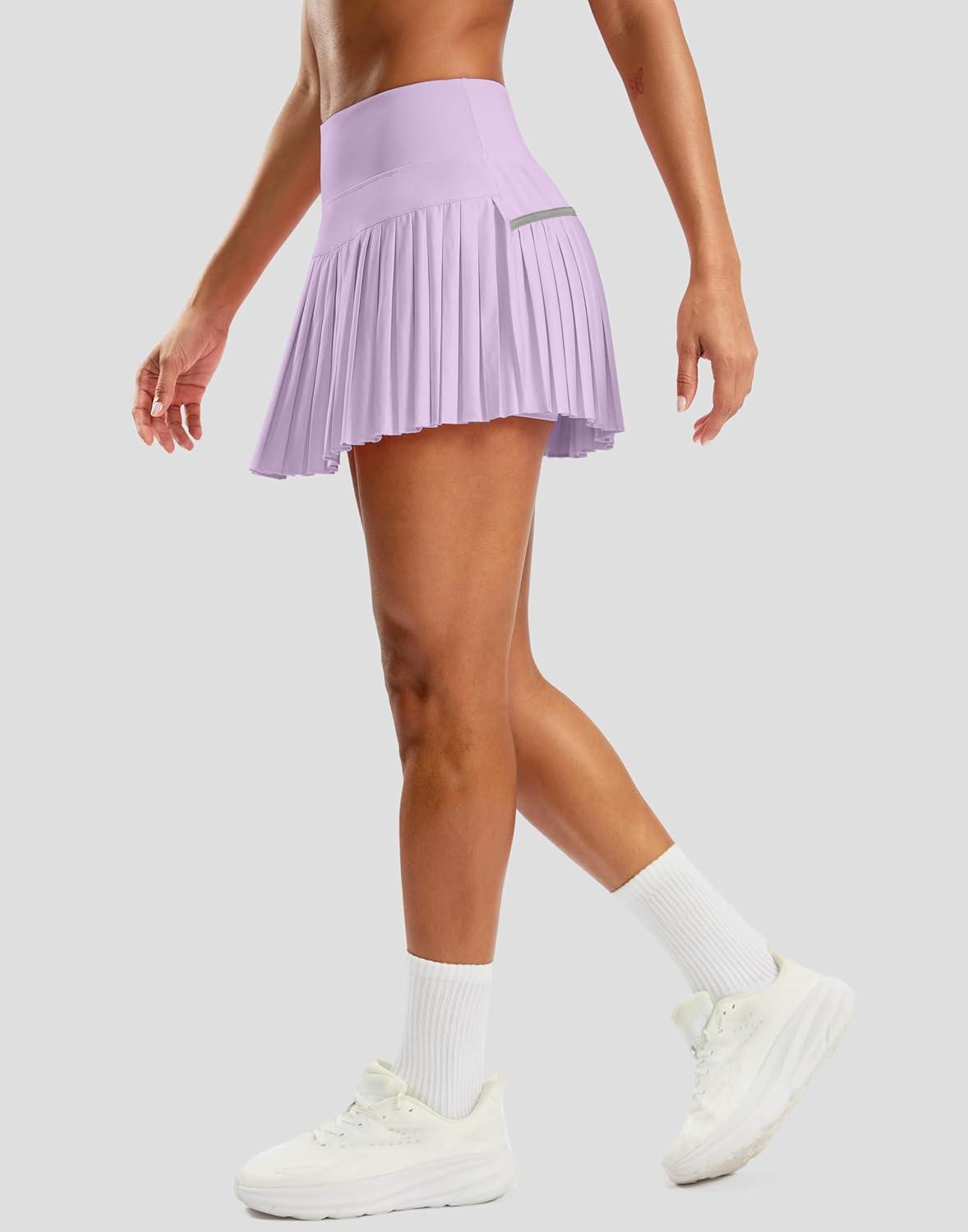 SANTINY Pleated Tennis Skirt for Women with Pockets High Waisted Athletic Golf Skorts with Shorts for Workout Pickleball(Light Purple)
