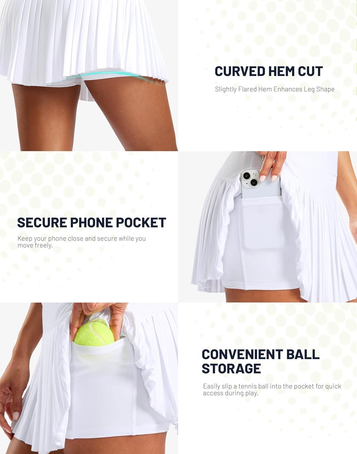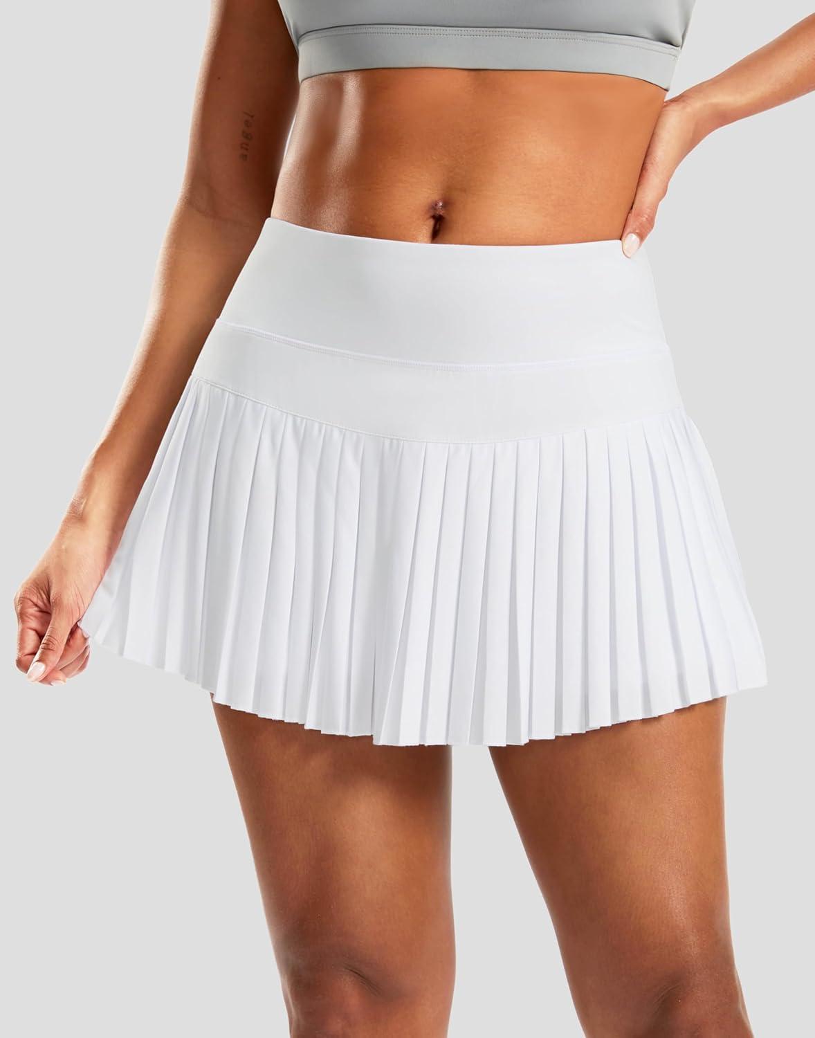 SANTINY Pleated Tennis Skirt for Women with Pockets High Waisted Athletic Golf Skorts with Shorts for Workout Pickleball(White#grey)