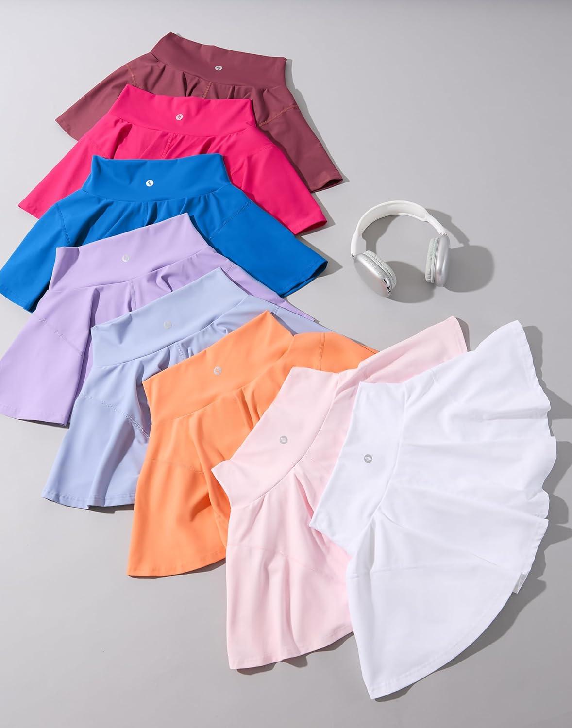 SANTINY Pleated Tennis Skirts for Women with Pockets Women’s High Waisted Running Workout Athletic Golf Skorts Skirts(Blue)