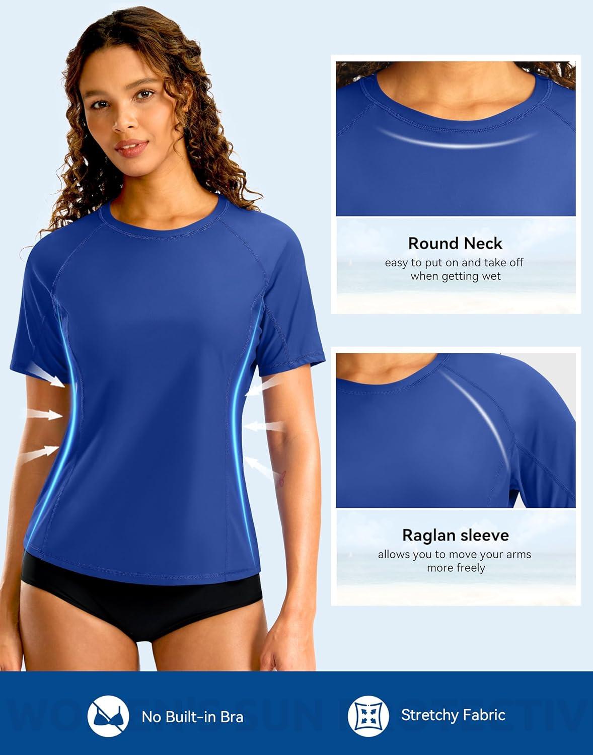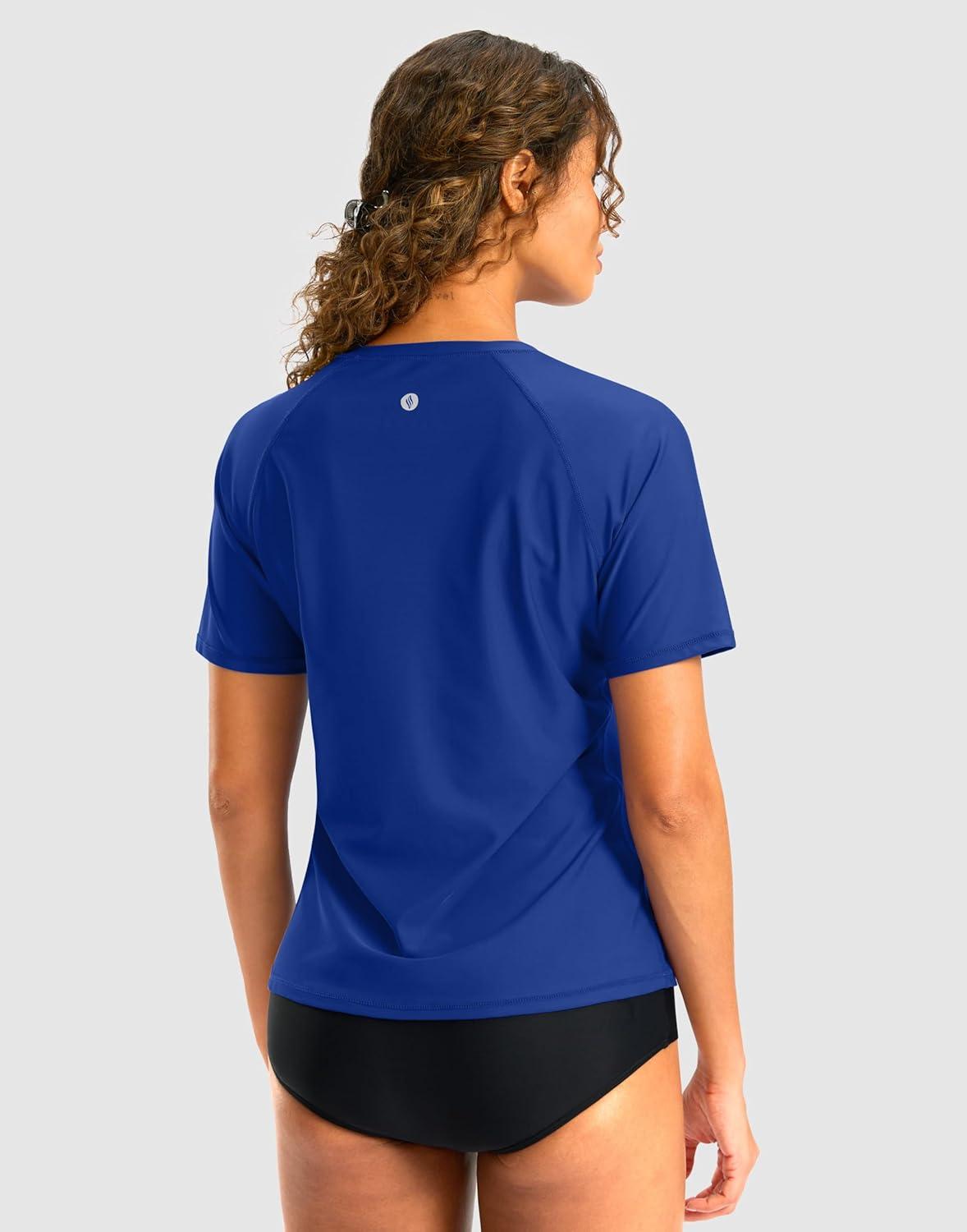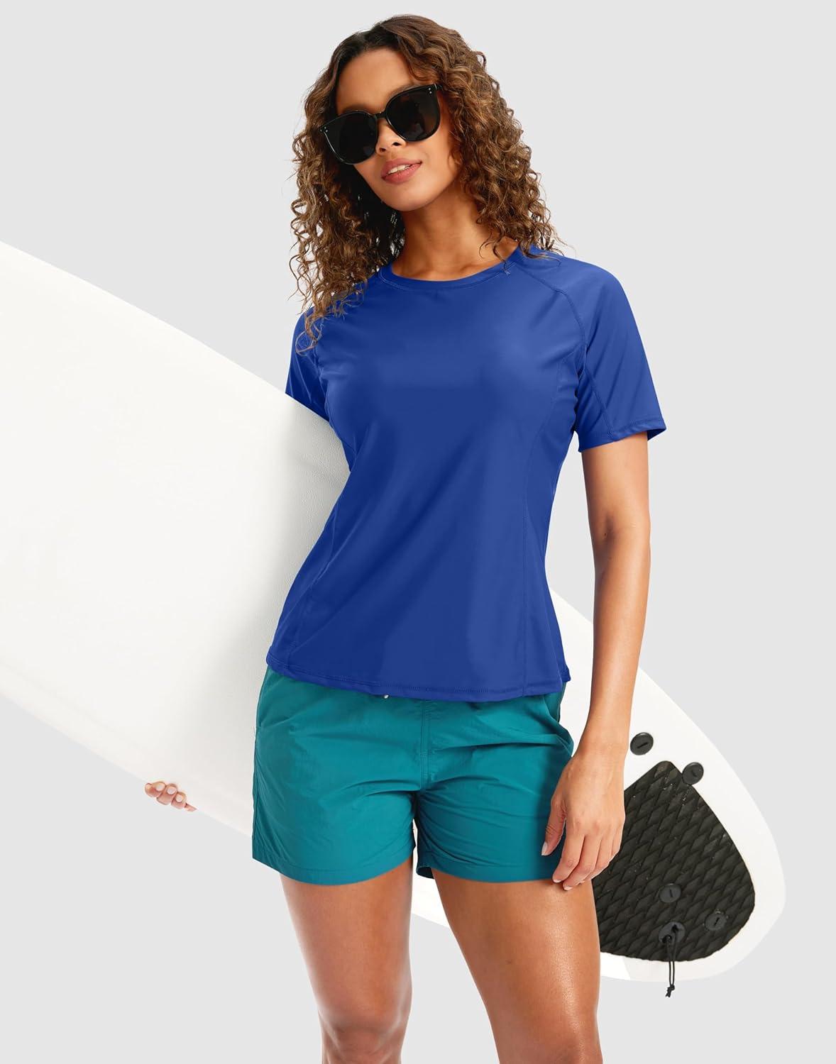 SANTINY Rash Guard for Women UPF 50+ Bathing Suit Sun Protection Short Sleeve Swimsuit Top Quick Dry Swim Shirts for Women(Deep Blue)