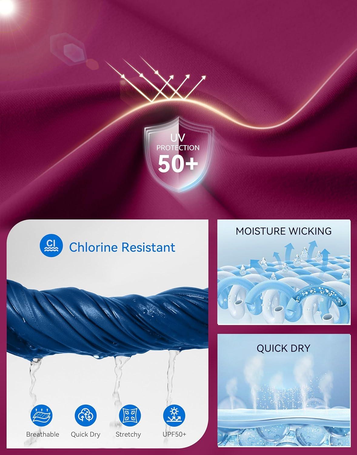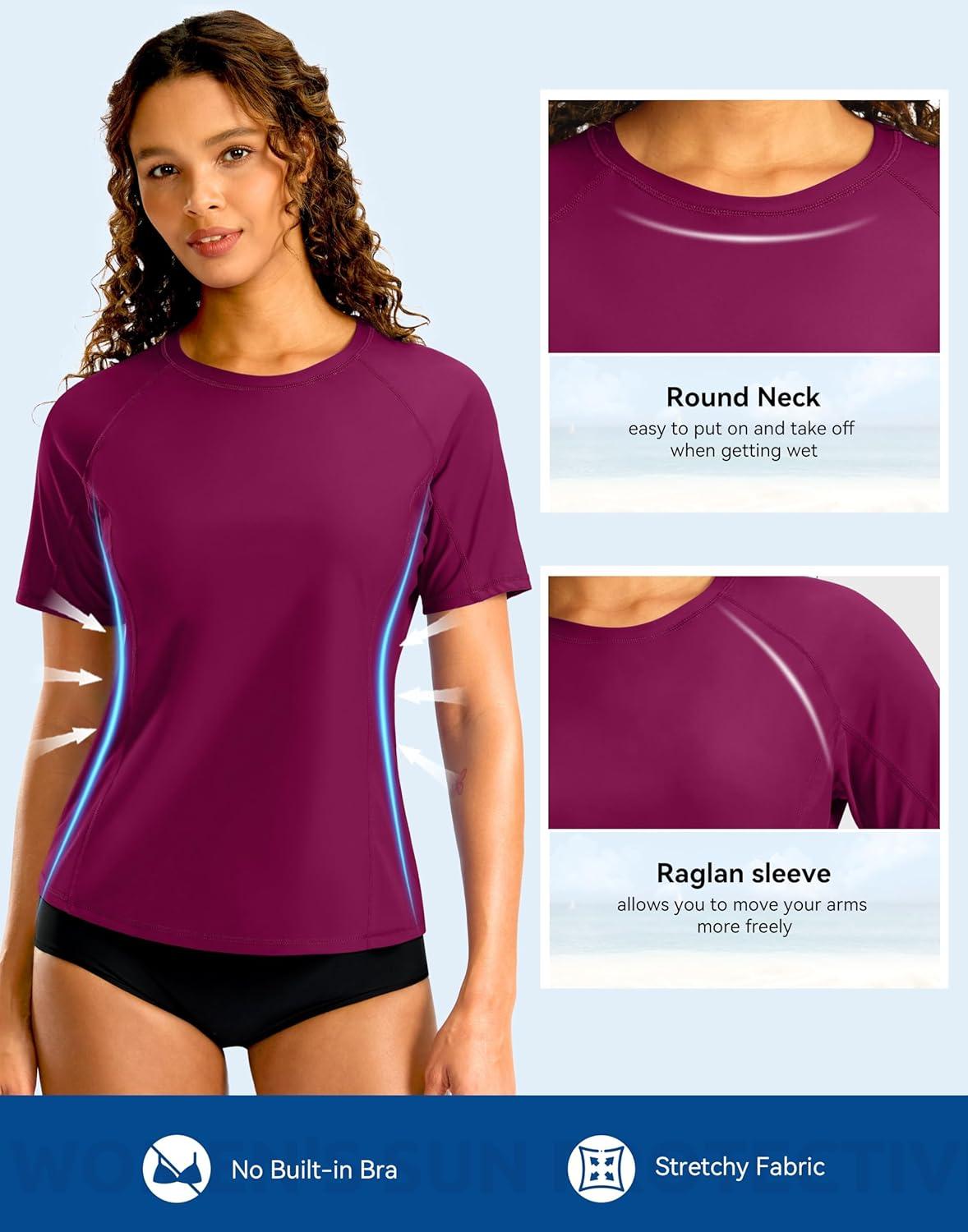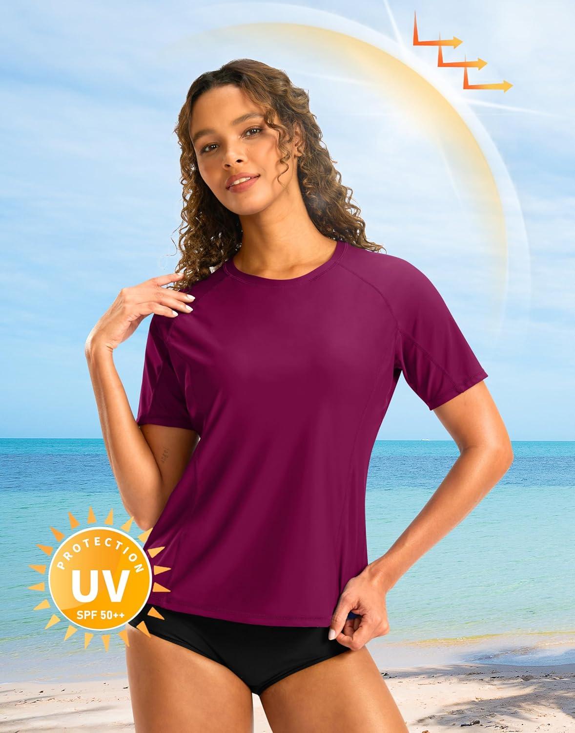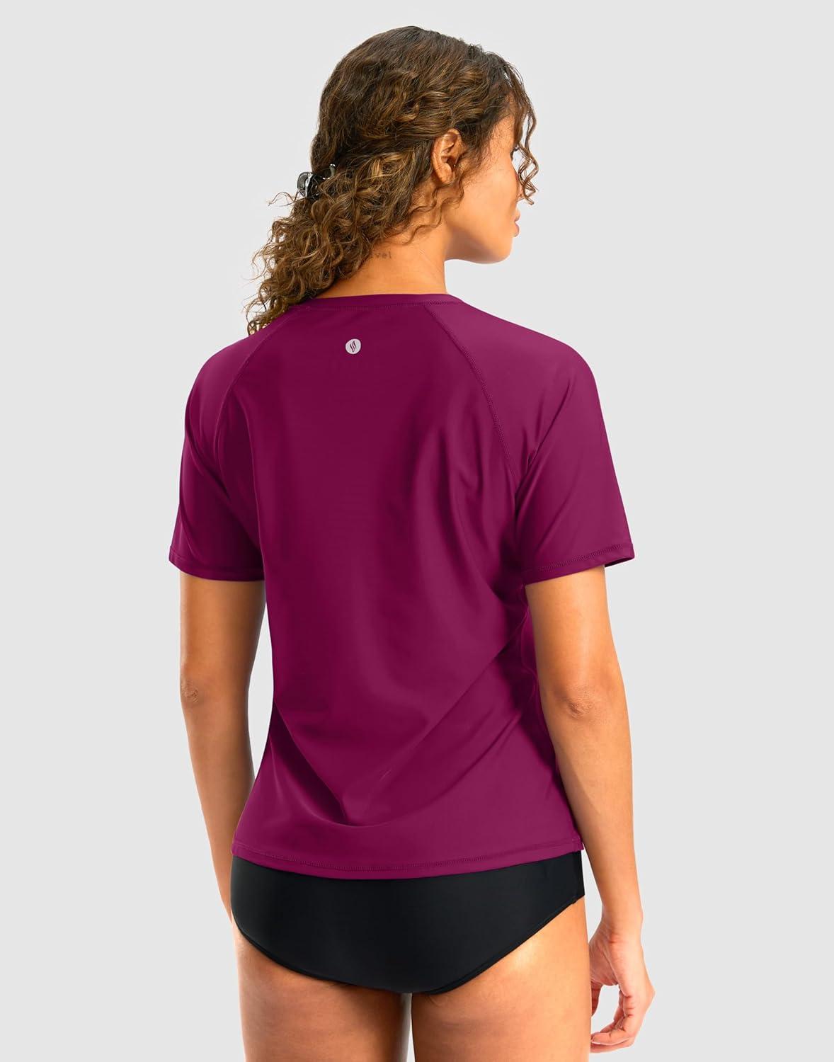SANTINY Rash Guard for Women UPF 50+ Bathing Suit Sun Protection Short Sleeve Swimsuit Top Quick Dry Swim Shirts for Women(Fuchsia)