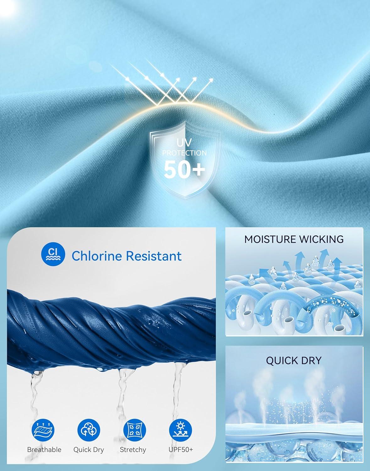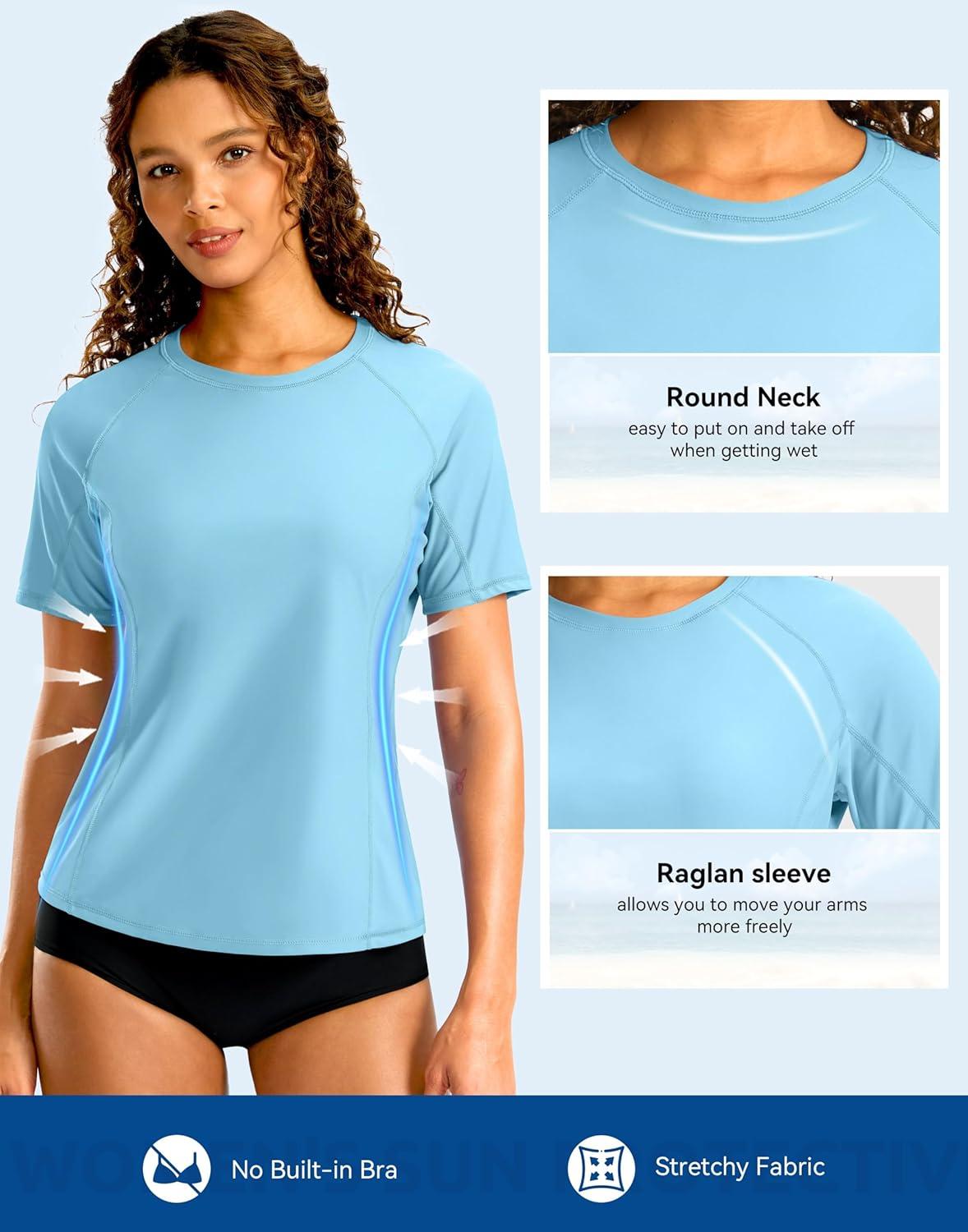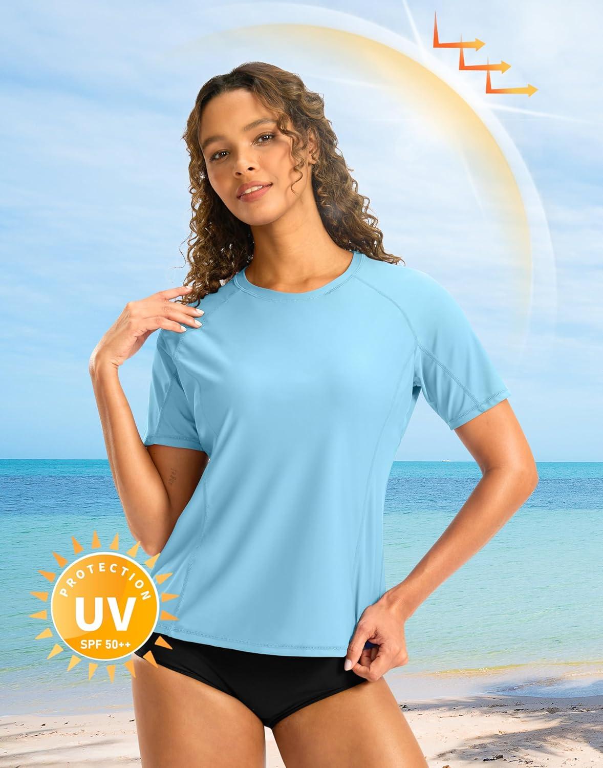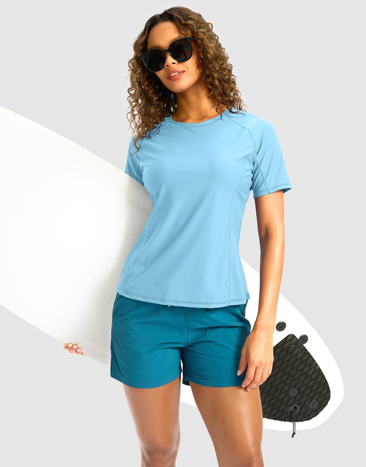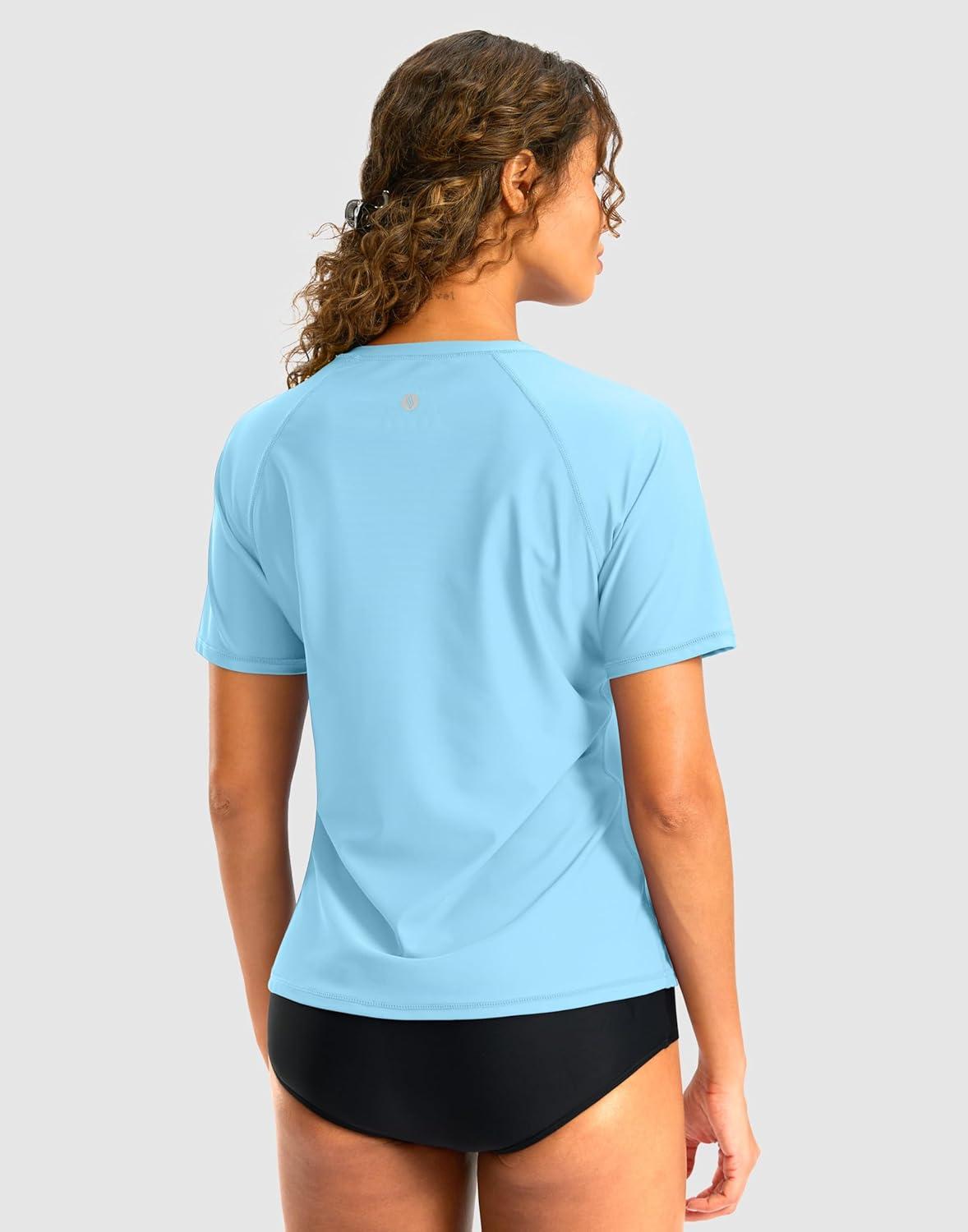 SANTINY Rash Guard for Women UPF 50+ Bathing Suit Sun Protection Short Sleeve Swimsuit Top Quick Dry Swim Shirts for Women(Sky Blue)