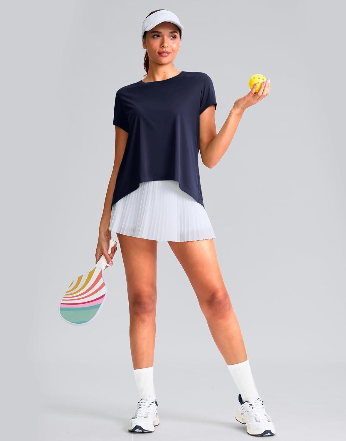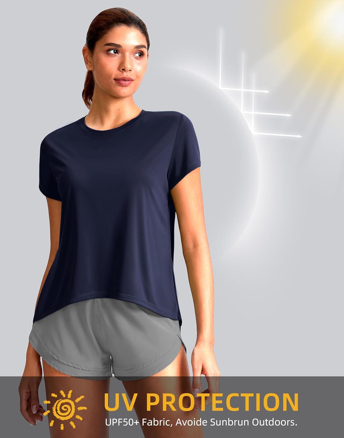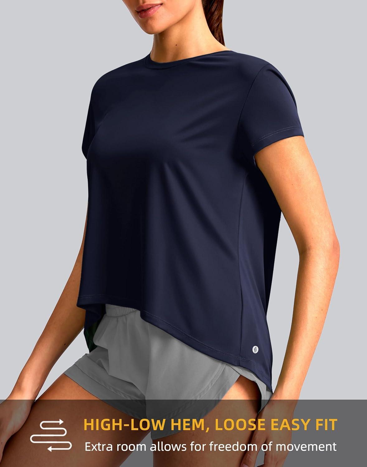 SANTINY Short Sleeve Workout Tops for Women Loose Yoga T-Shirts Sun Protection Breathable Running Athletic Tee Shirts(Navy)