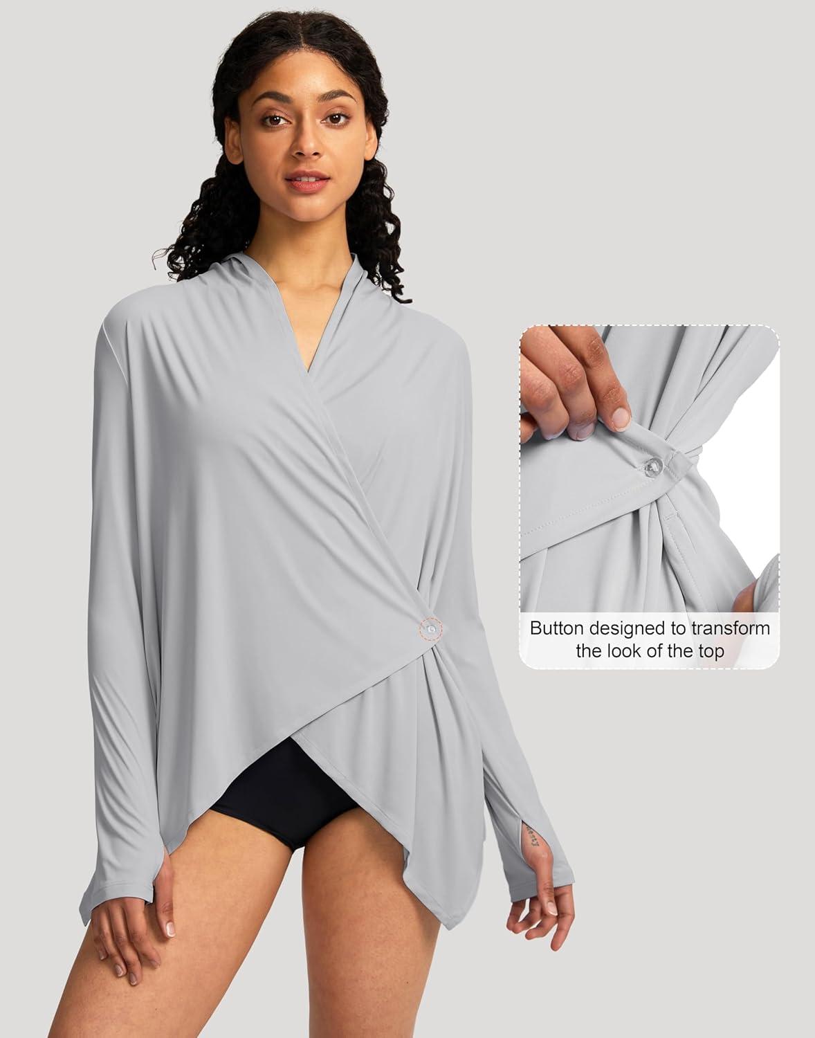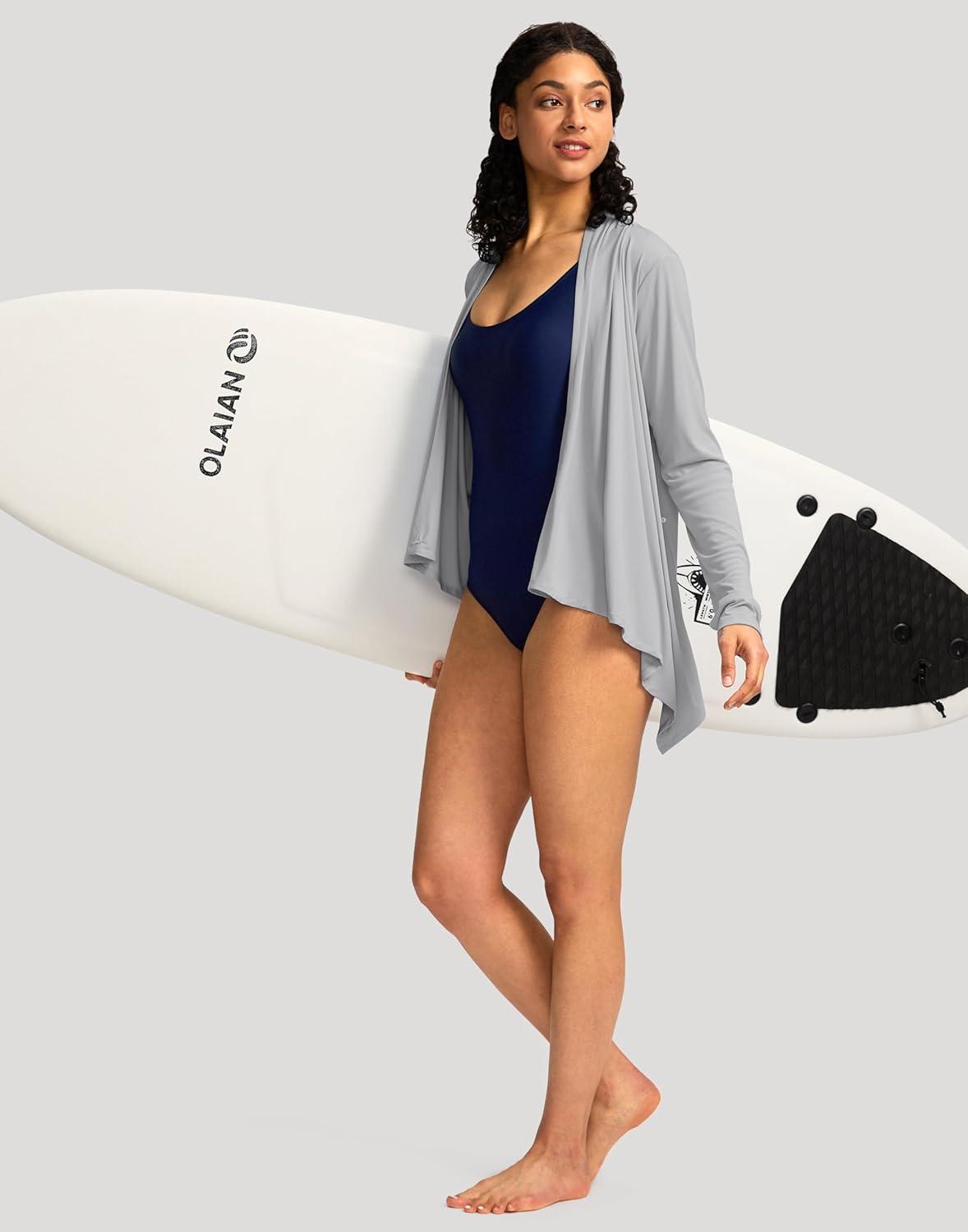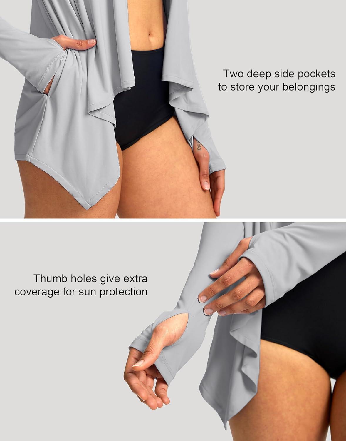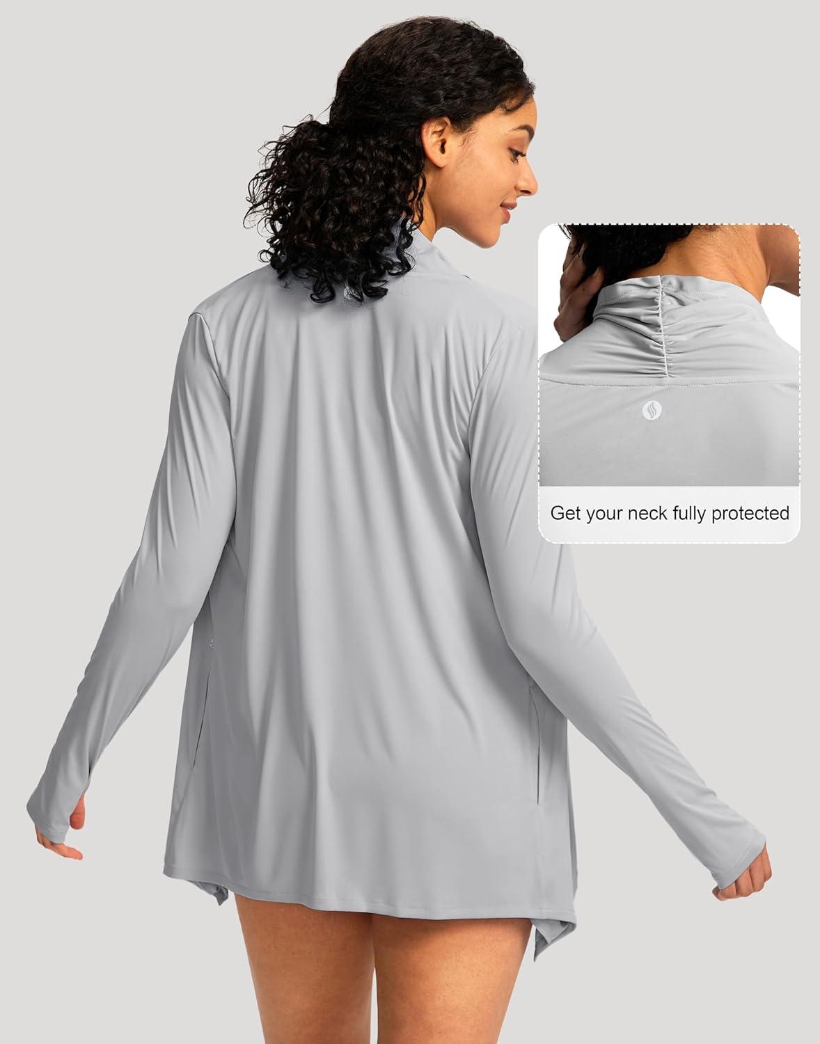 SANTINY UPF50+ Sun Shirt for Women Long Sleeve SPF UV Sun Protection Shirts Lightweight Cardigan with Pockets Swim Cover Up(Light Grey)