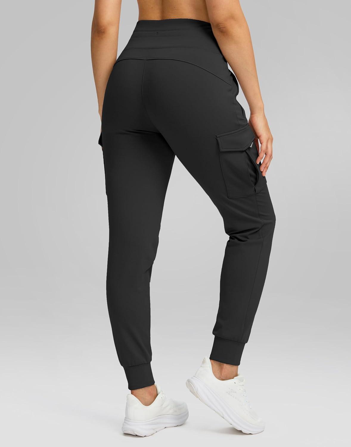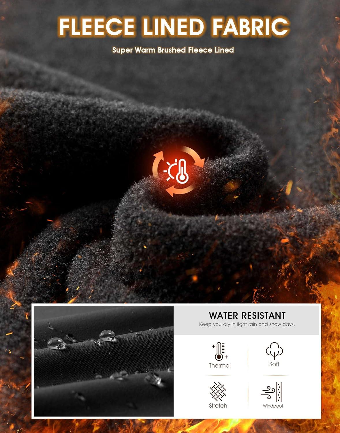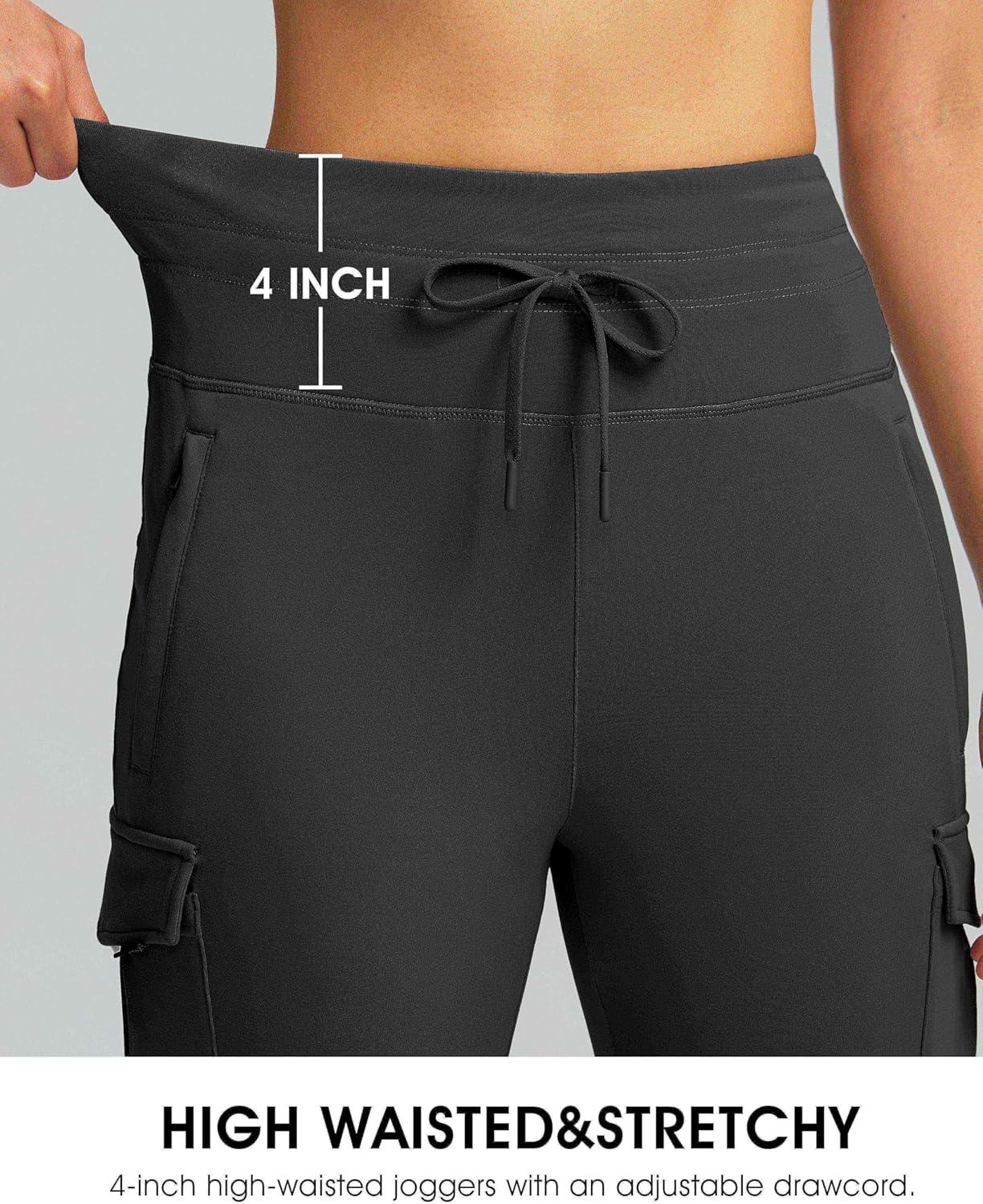 SANTINY Women Fleece Lined Cargo Joggers High Waisted Winter Warm Waterproof Hiking Pants with Zipper Pockets(Black)