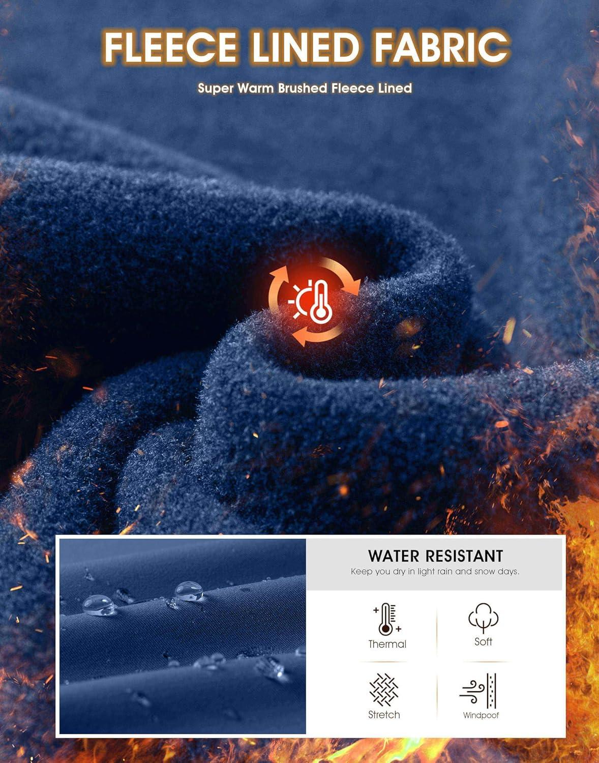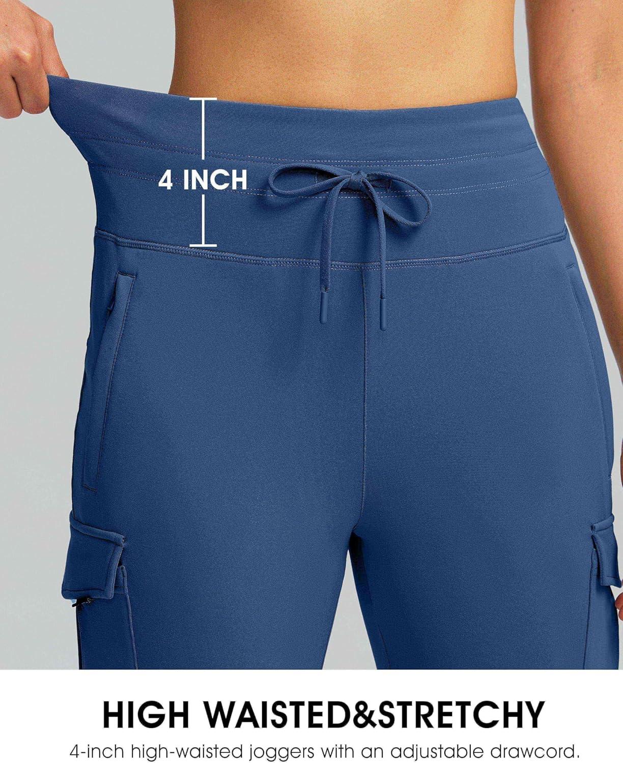 SANTINY Women Fleece Lined Cargo Joggers High Waisted Winter Warm Waterproof Hiking Pants with Zipper Pockets(Dark Blue)