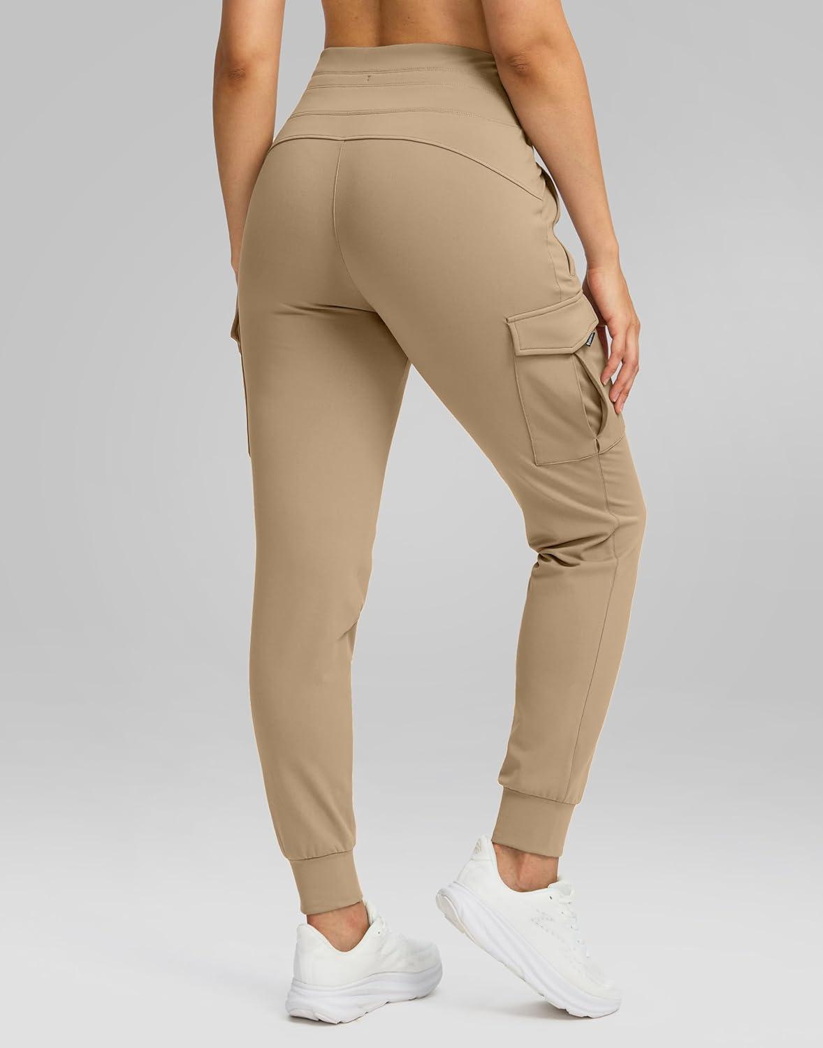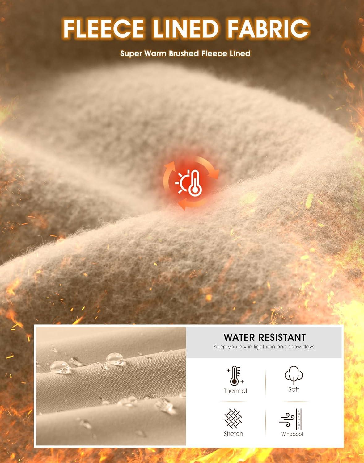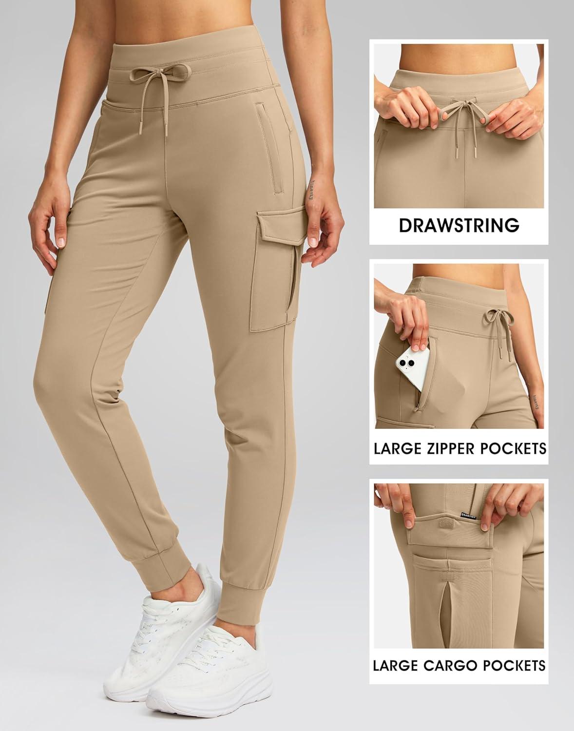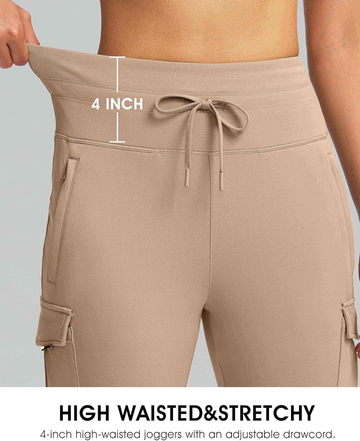SANTINY Women Fleece Lined Cargo Joggers High Waisted Winter Warm Waterproof Hiking Pants with Zipper Pockets(Khaki)