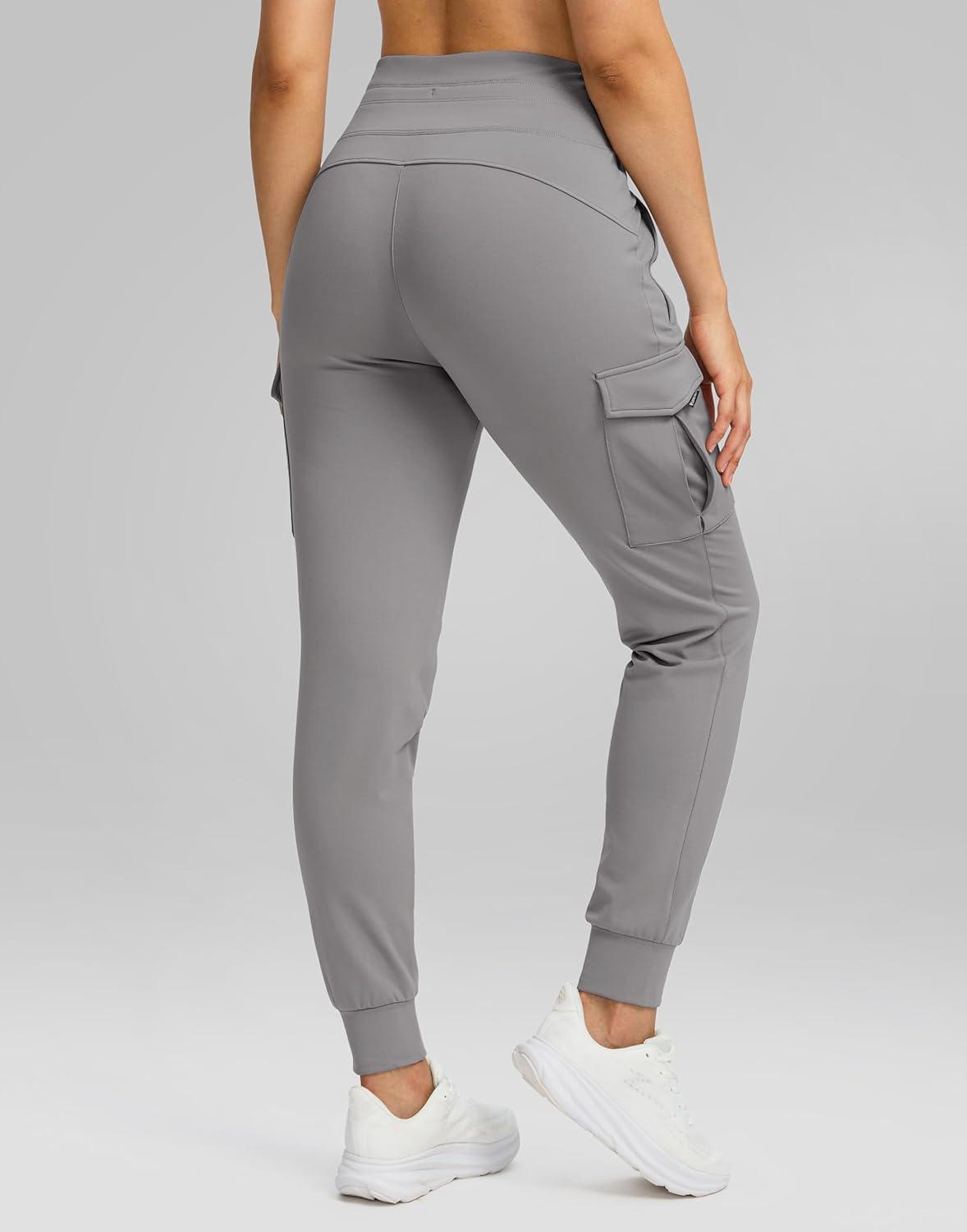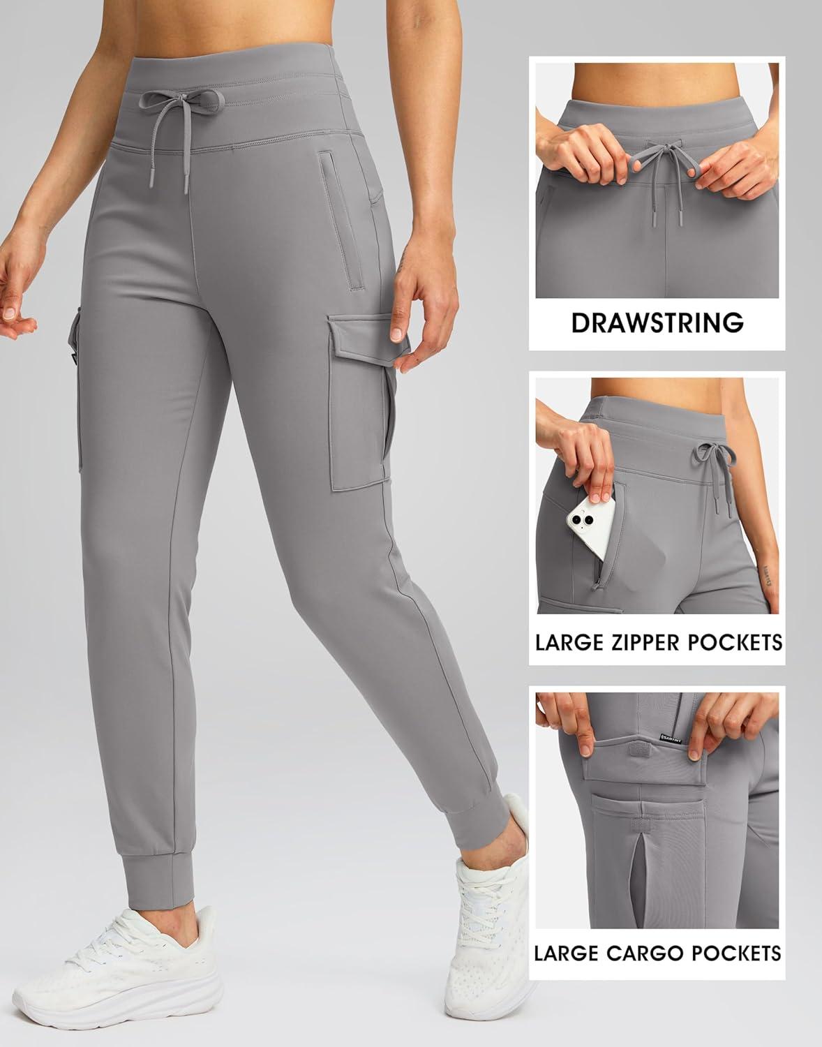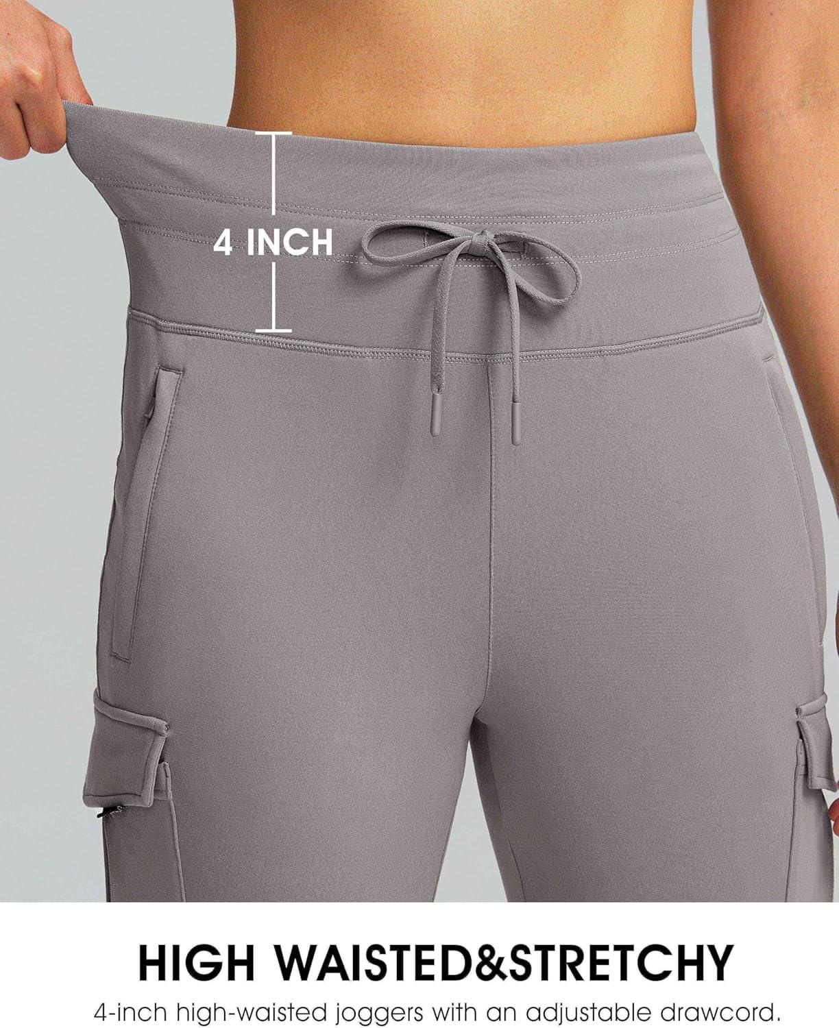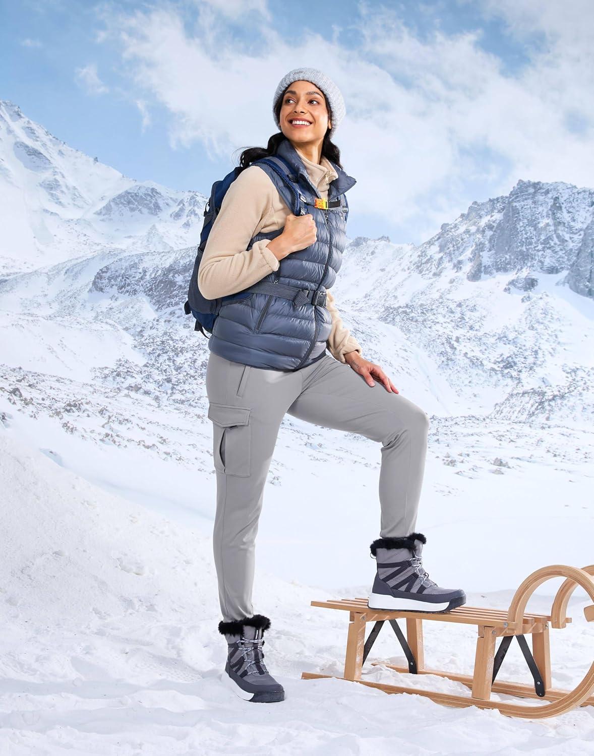 SANTINY Women Fleece Lined Cargo Joggers High Waisted Winter Warm Waterproof Hiking Pants with Zipper Pockets(Light Grey)