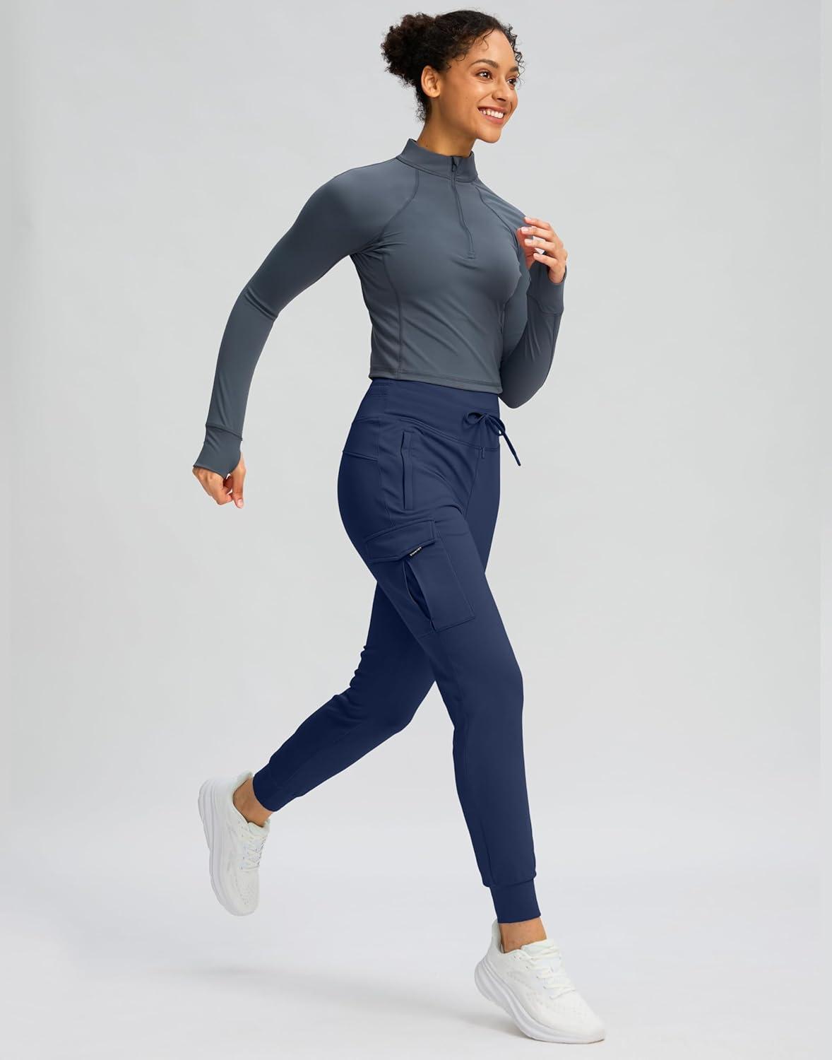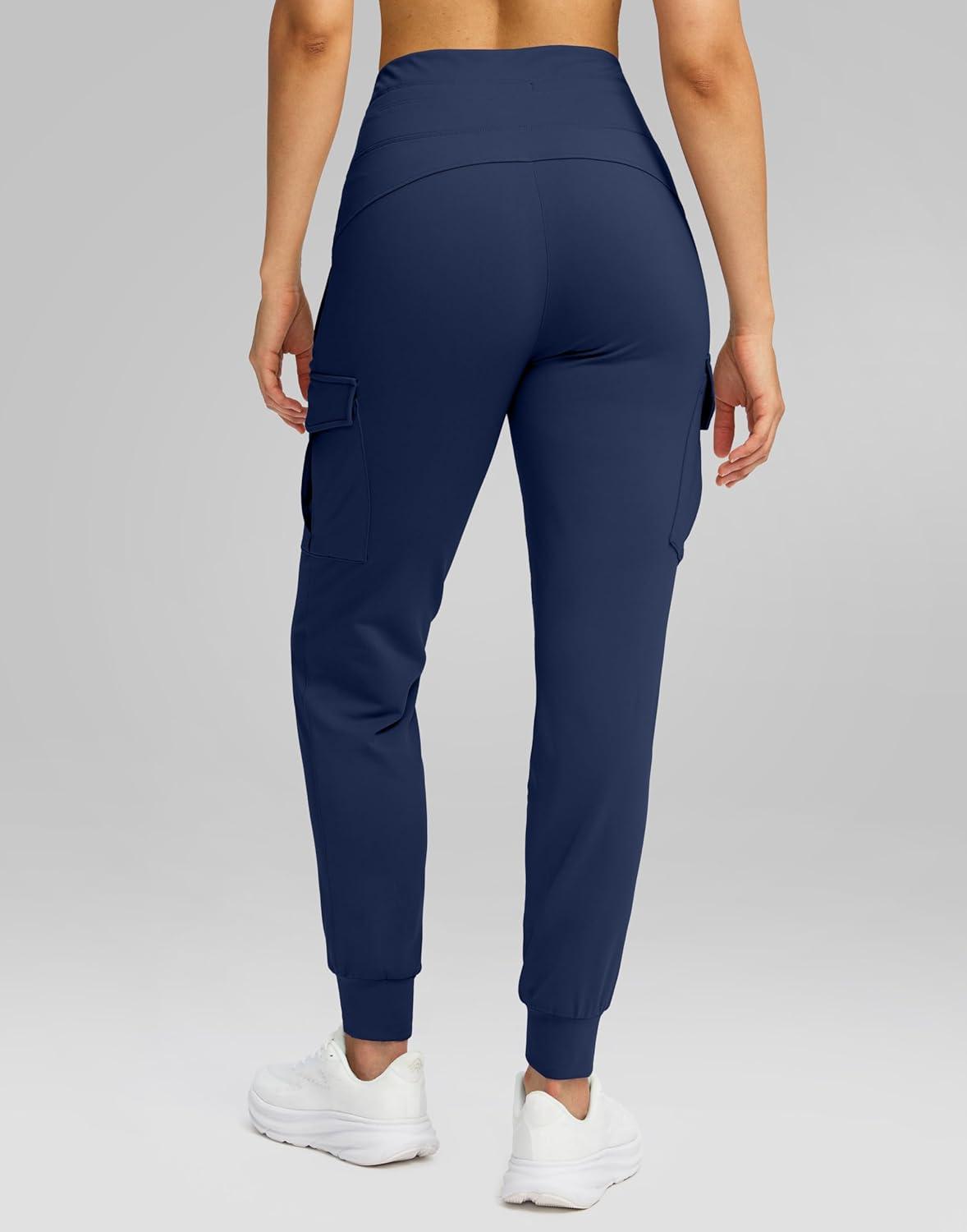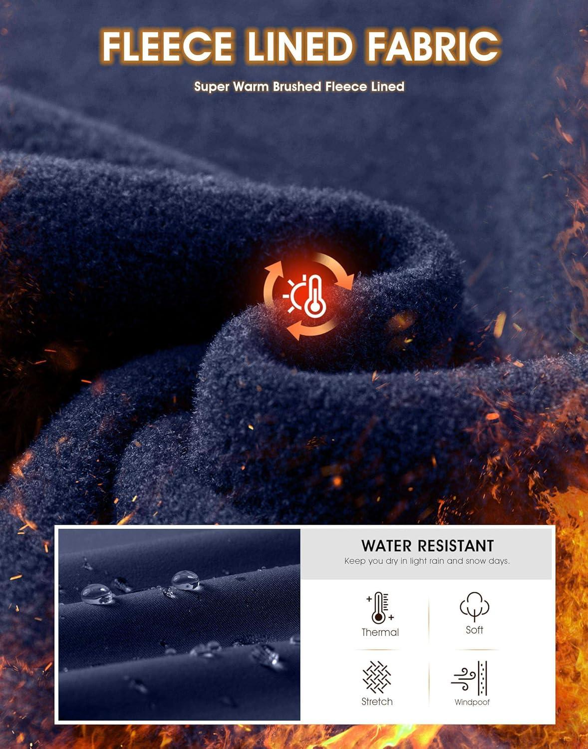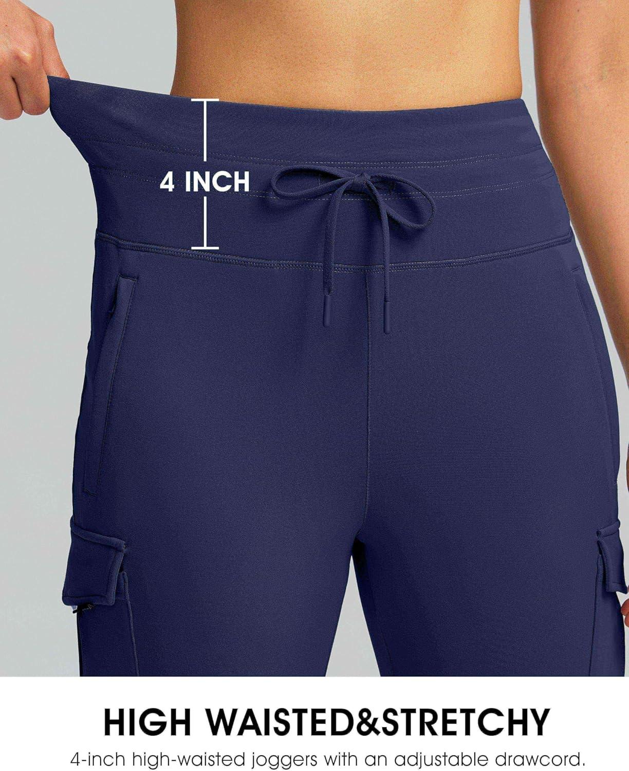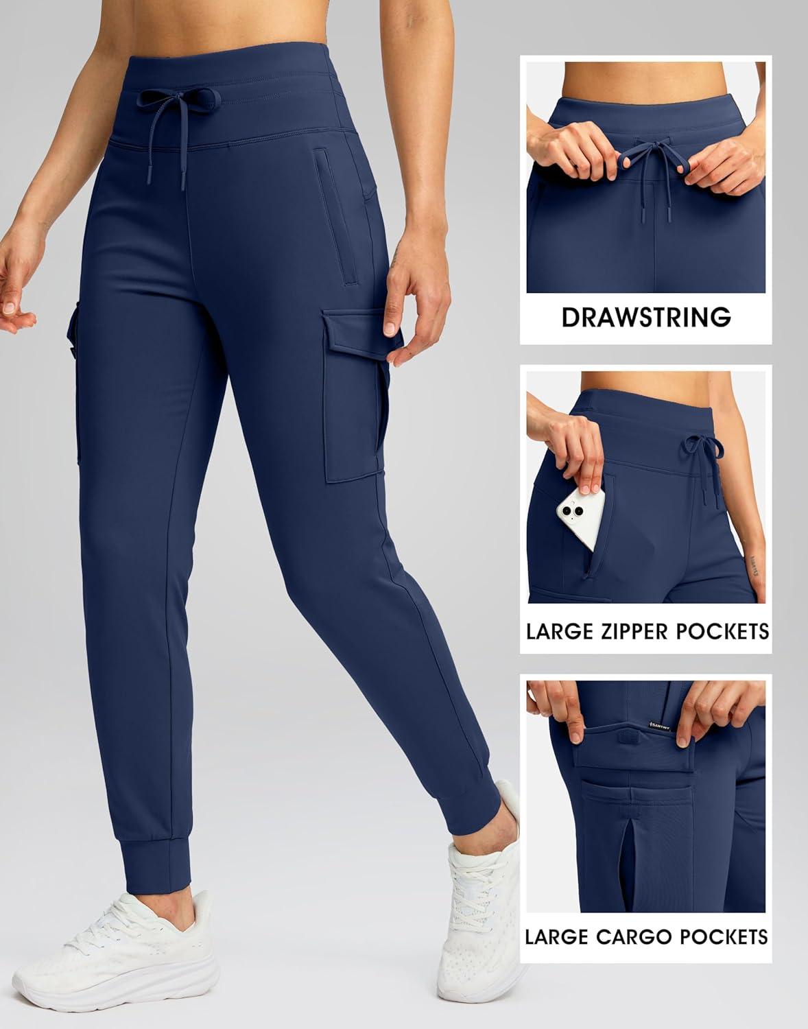 SANTINY Women Fleece Lined Cargo Joggers High Waisted Winter Warm Waterproof Hiking Pants with Zipper Pockets(Navy)