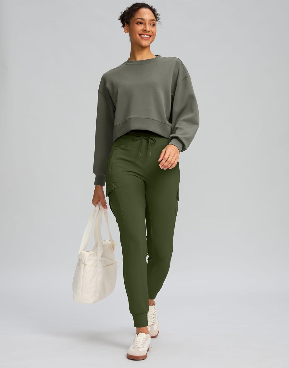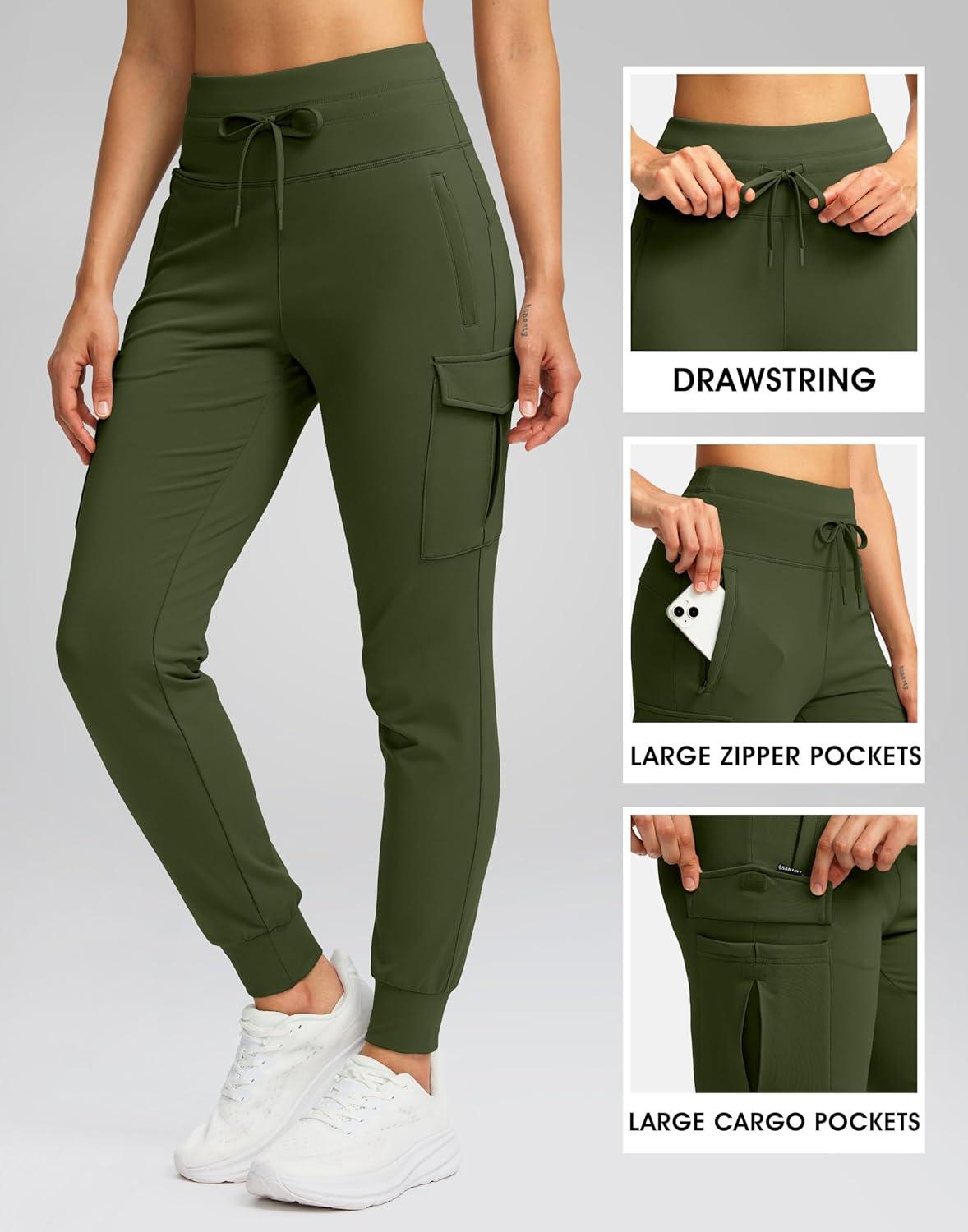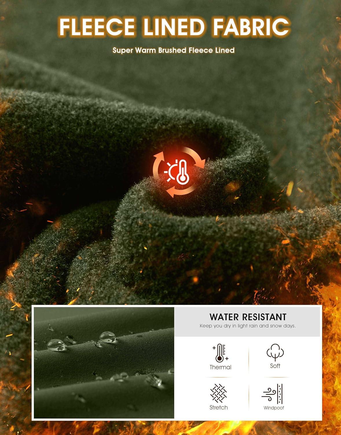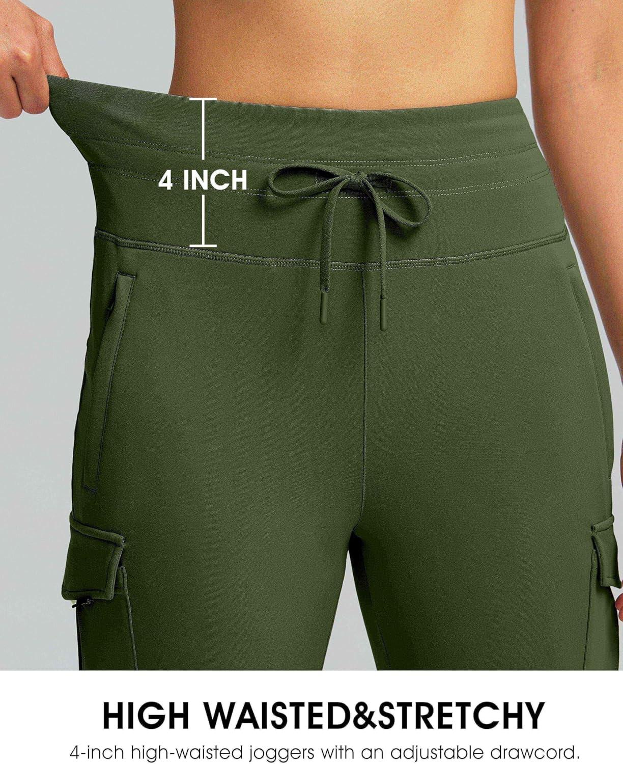 SANTINY Women Fleece Lined Cargo Joggers High Waisted Winter Warm Waterproof Hiking Pants with Zipper Pockets(Olive Green)