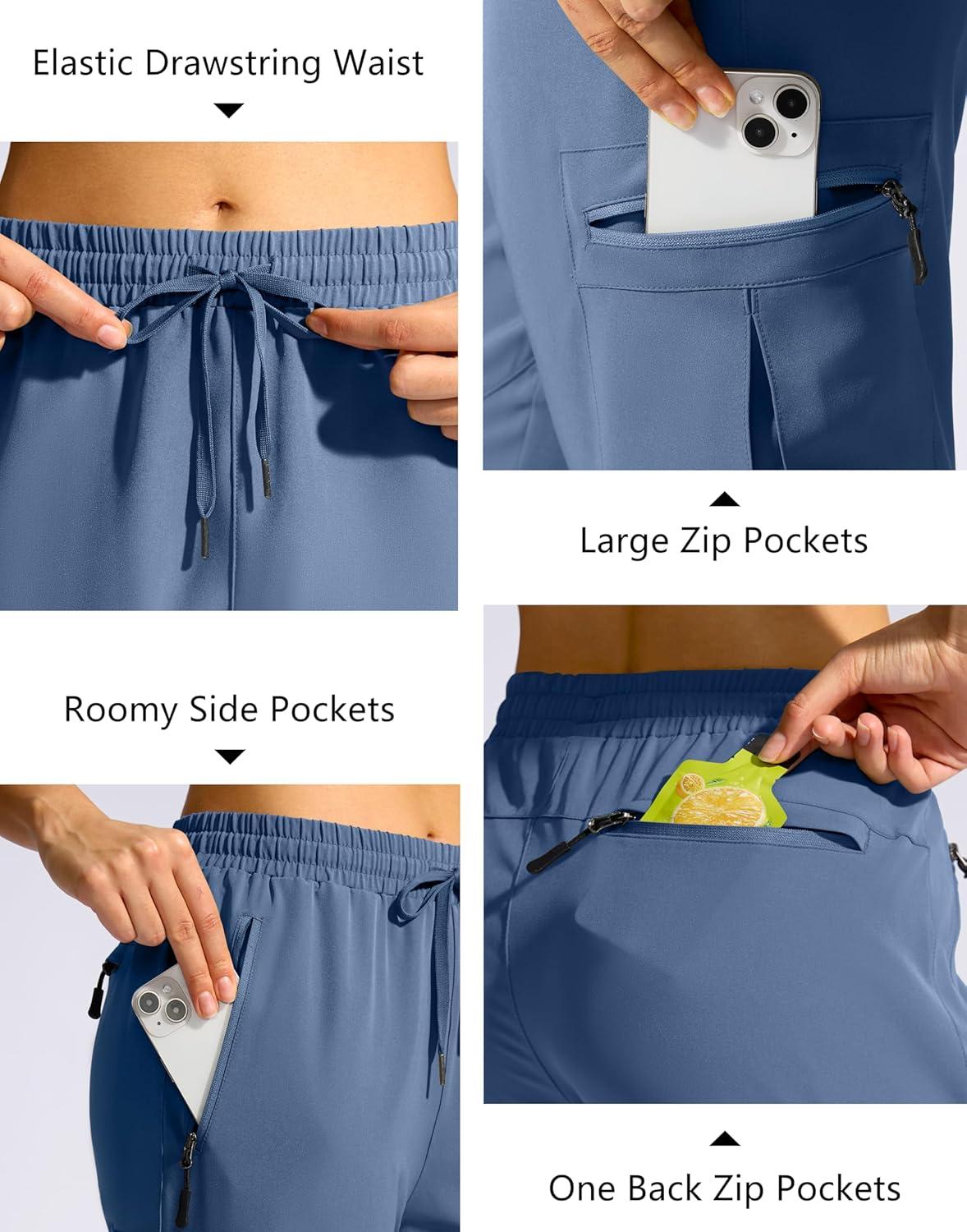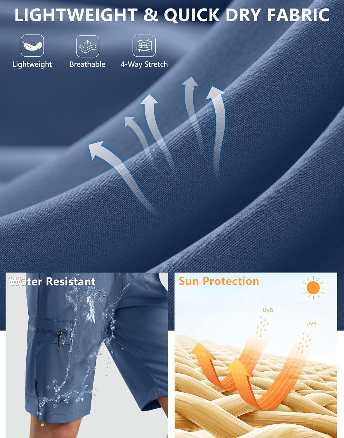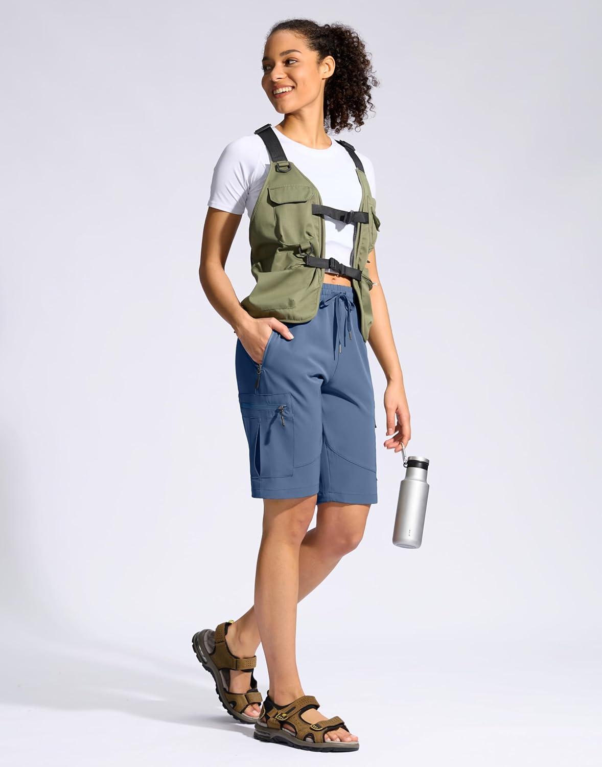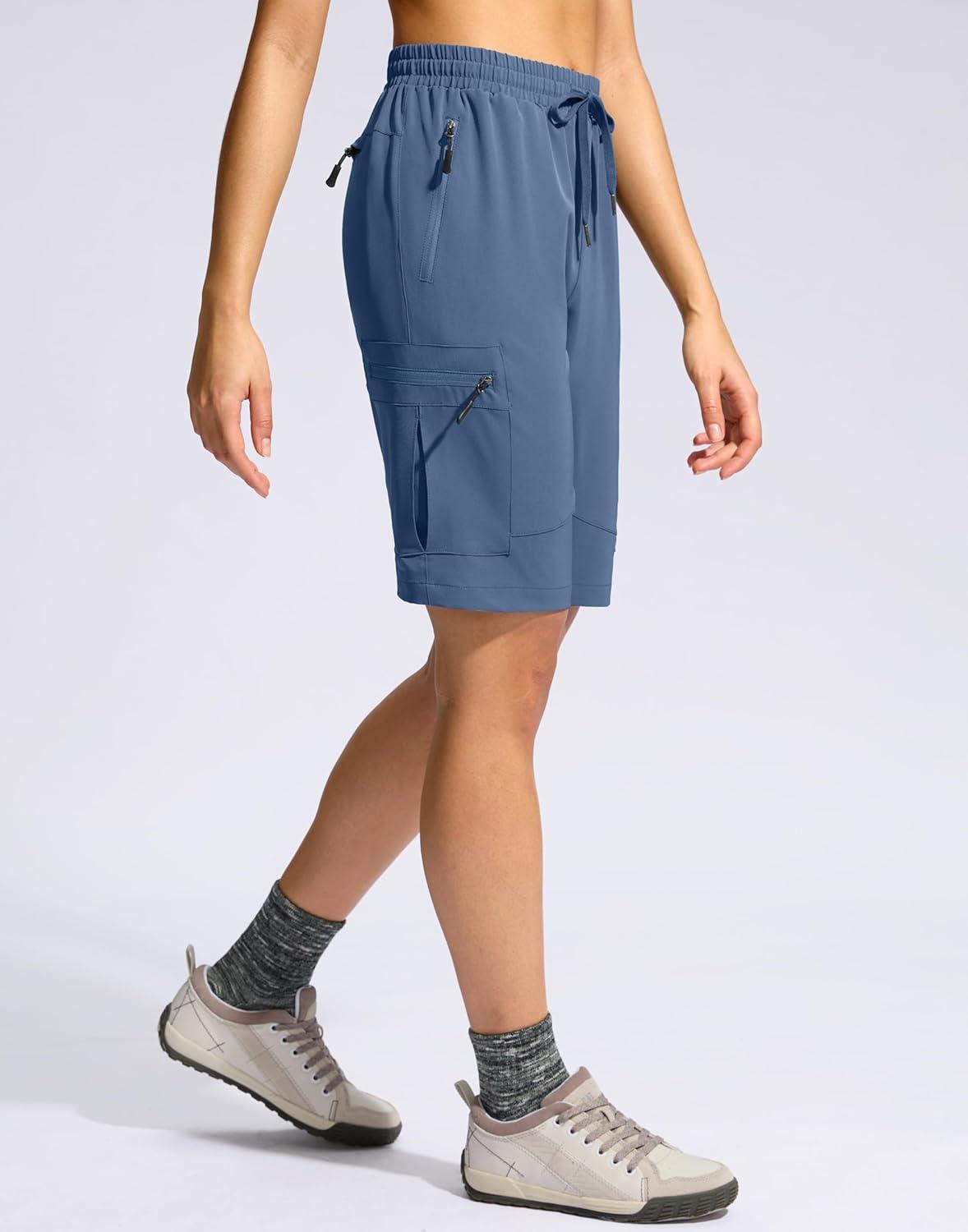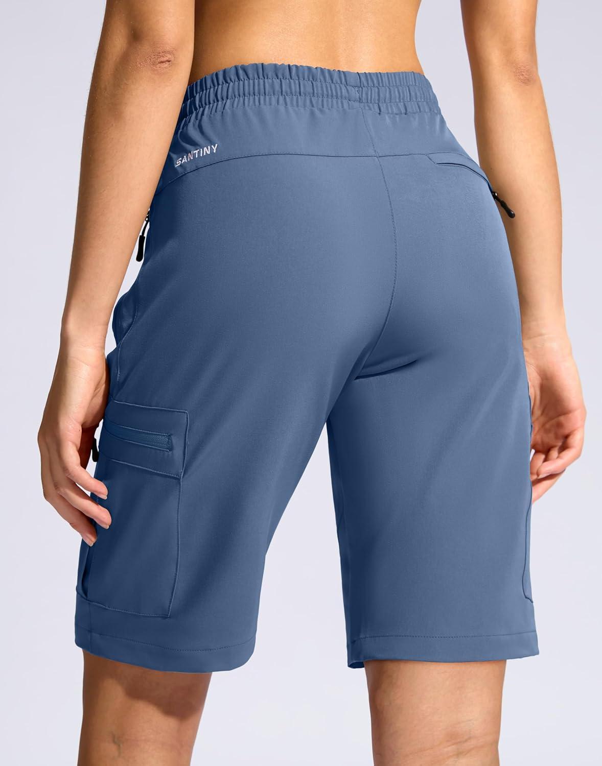 SANTINY Women’s 10” Lightweight Hiking Cargo Shorts with 5 Zipper Pockets Quick Dry Summer Long Travel Golf Shorts for Women(Blue)