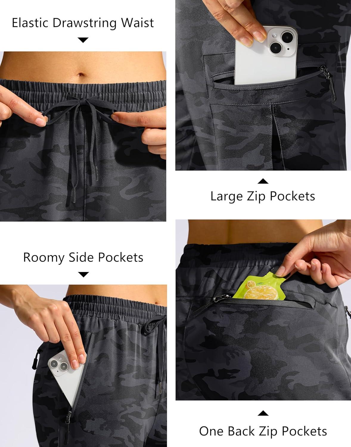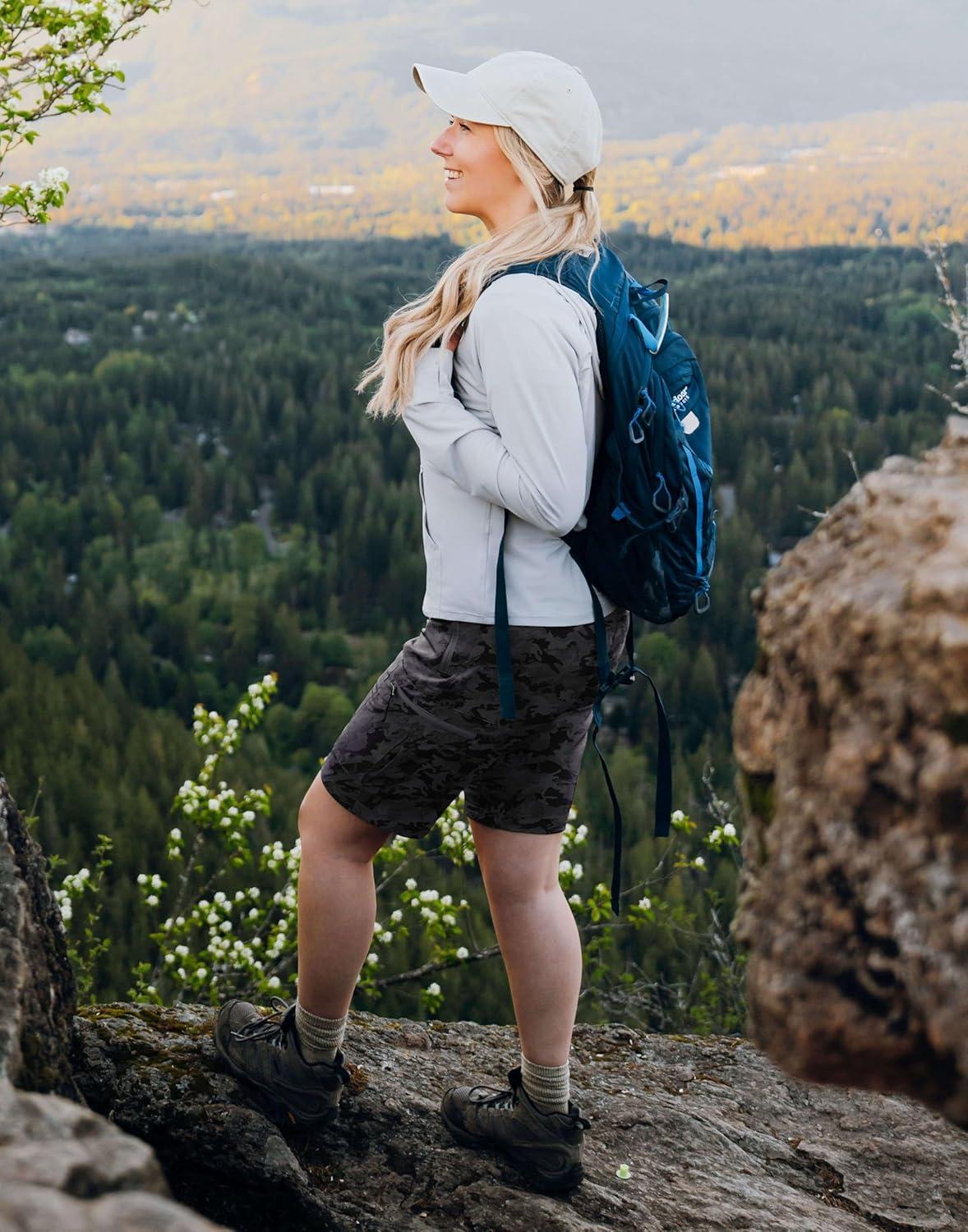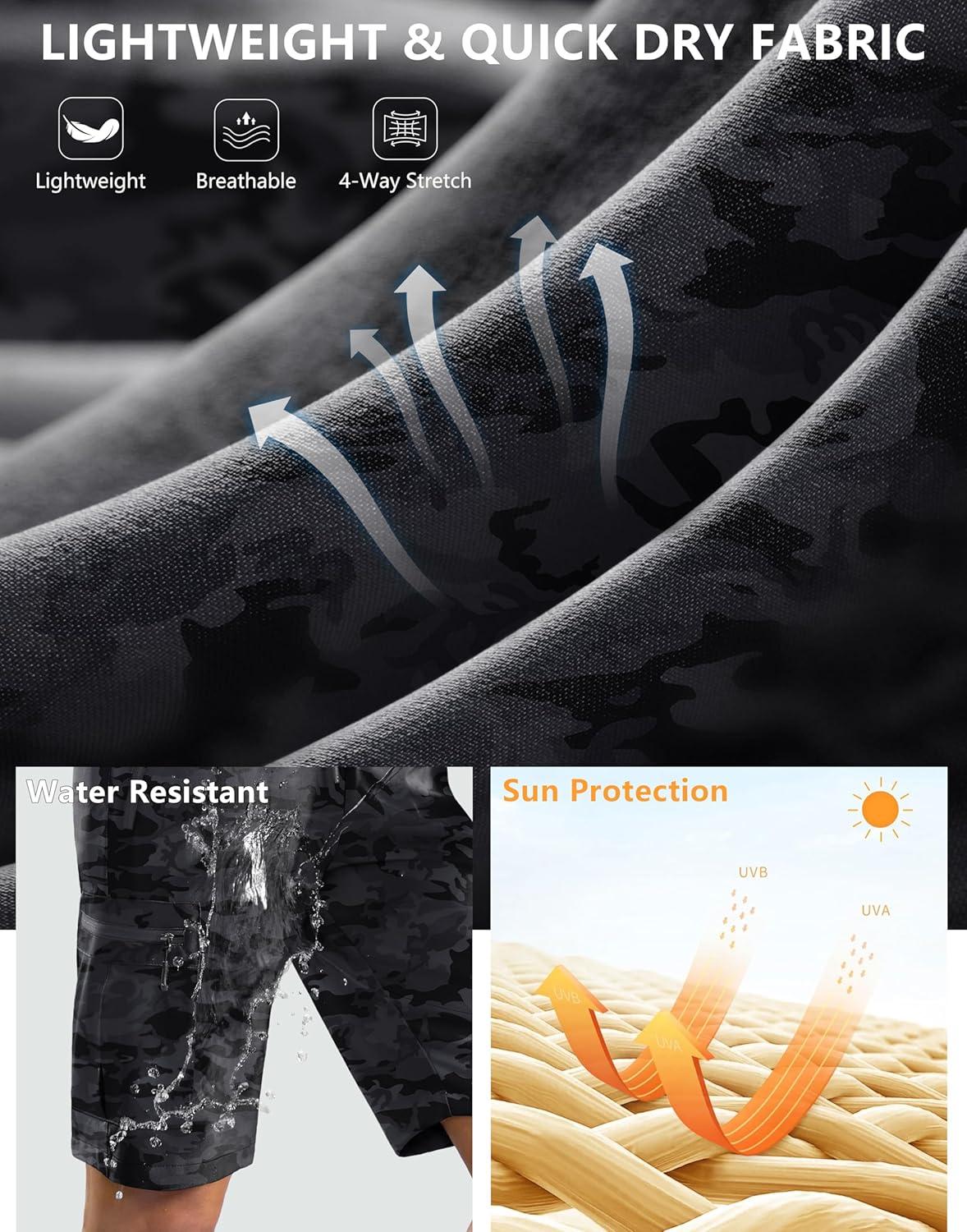 SANTINY Women’s 10” Lightweight Hiking Cargo Shorts with 5 Zipper Pockets Quick Dry Summer Long Travel Golf Shorts for Women(Grey Camo)