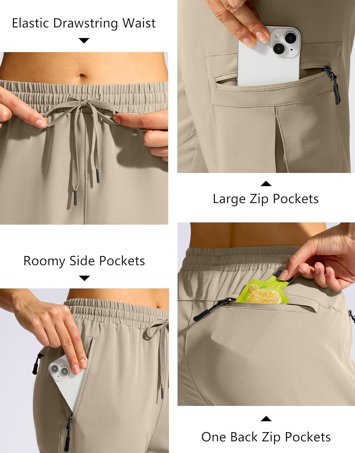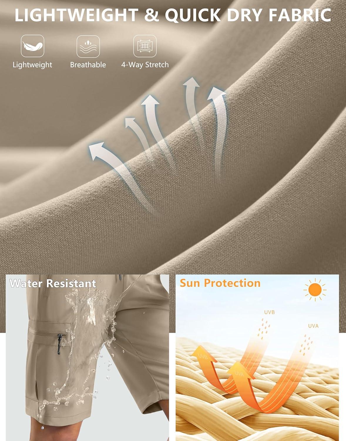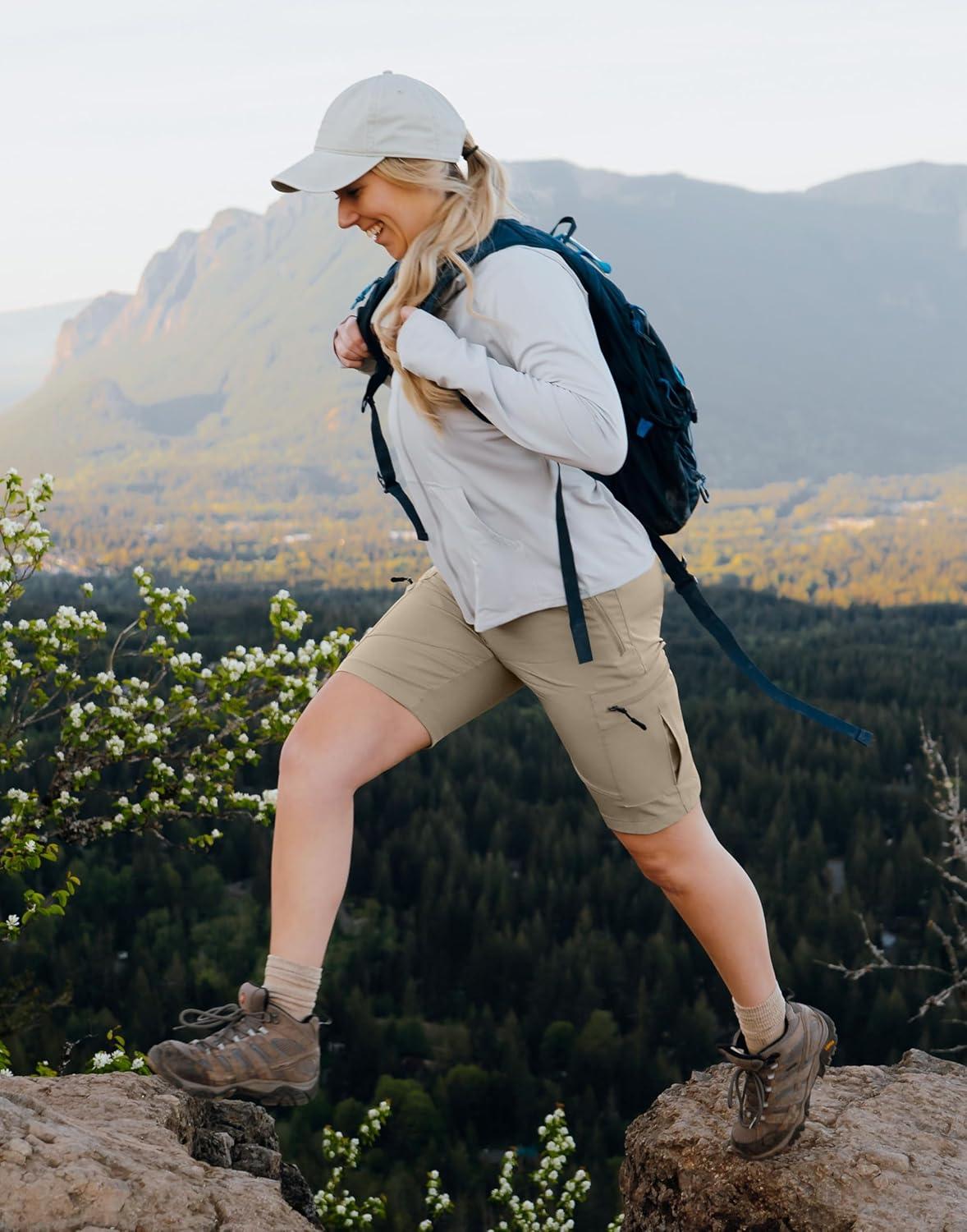 SANTINY Women’s 10” Lightweight Hiking Cargo Shorts with 5 Zipper Pockets Quick Dry Summer Long Travel Golf Shorts for Women(Khaki)