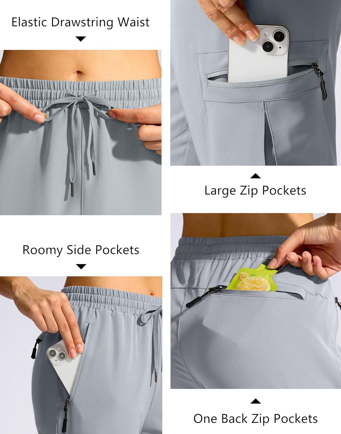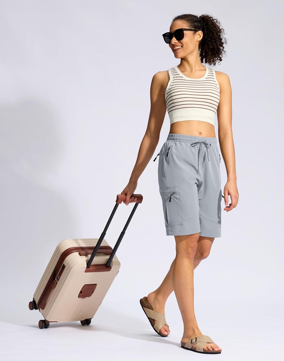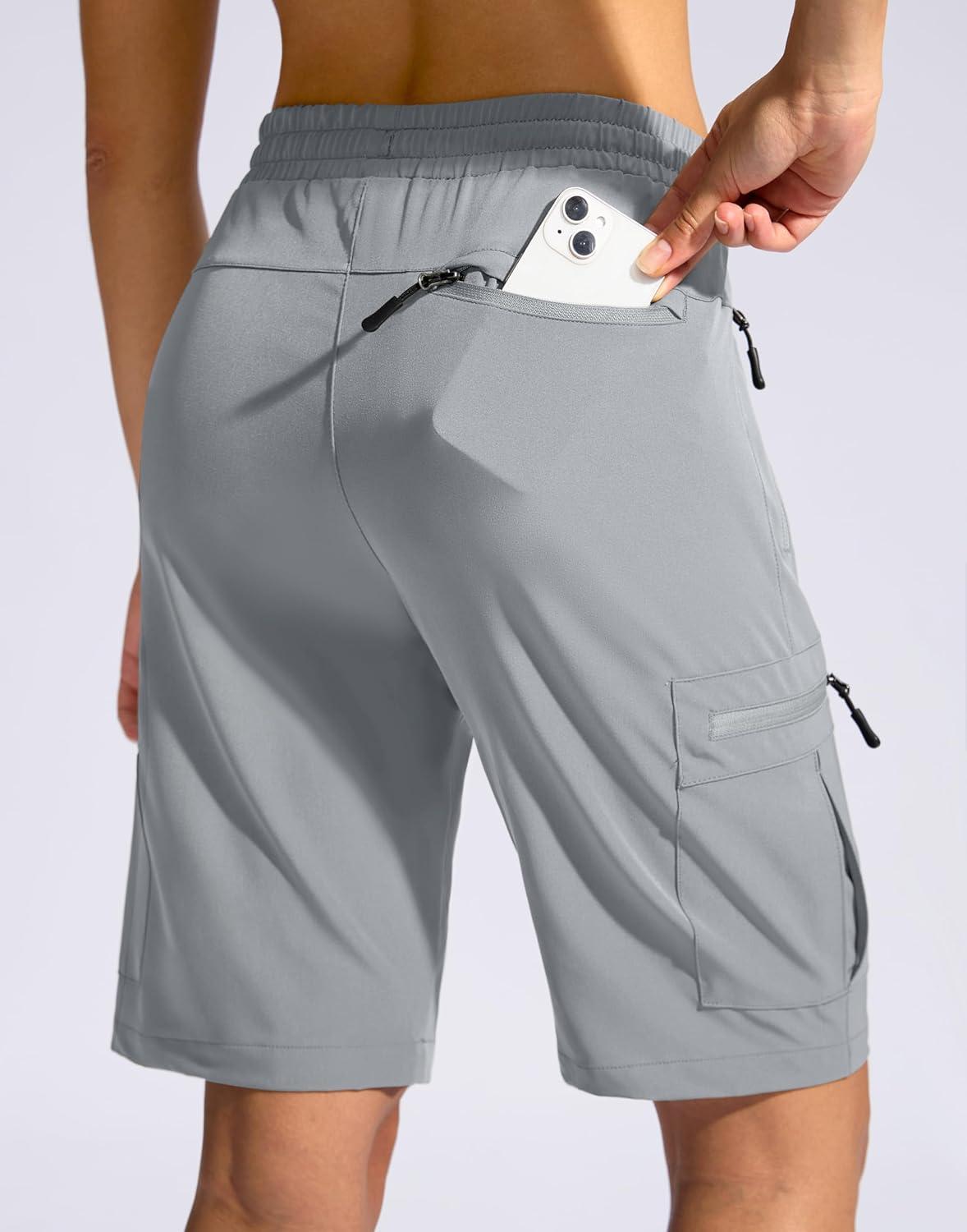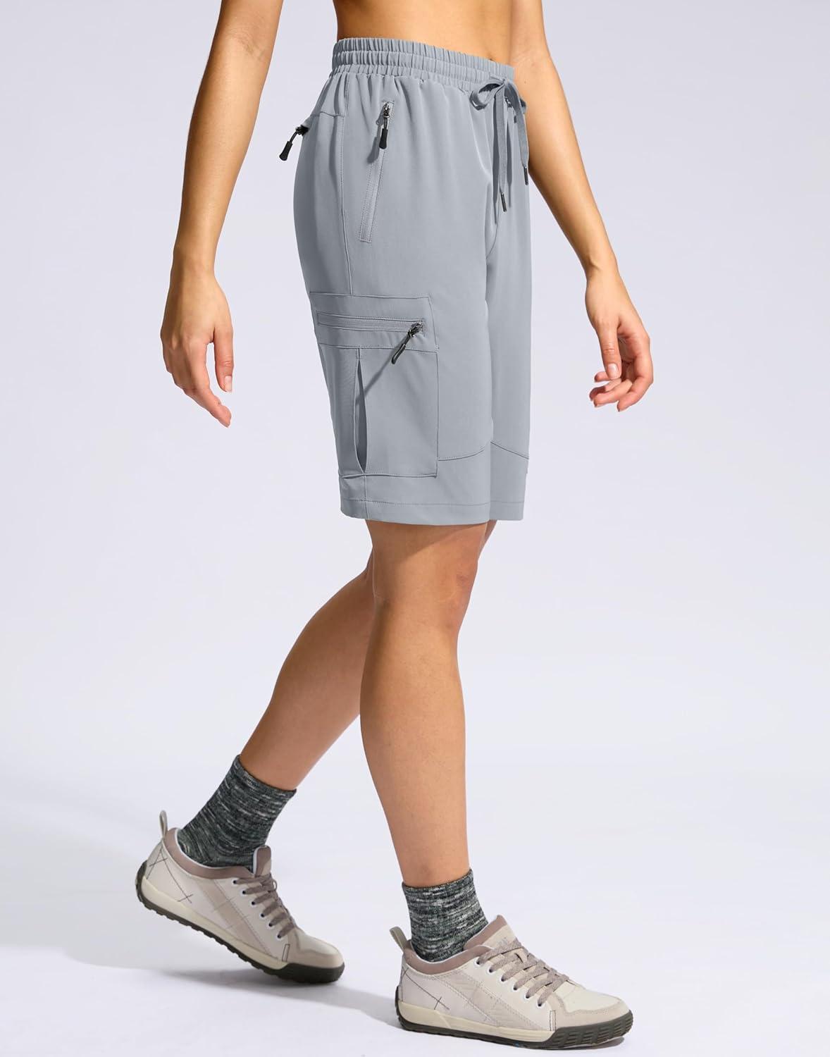 SANTINY Women’s 10” Lightweight Hiking Cargo Shorts with 5 Zipper Pockets Quick Dry Summer Long Travel Golf Shorts for Women(Light Grey)