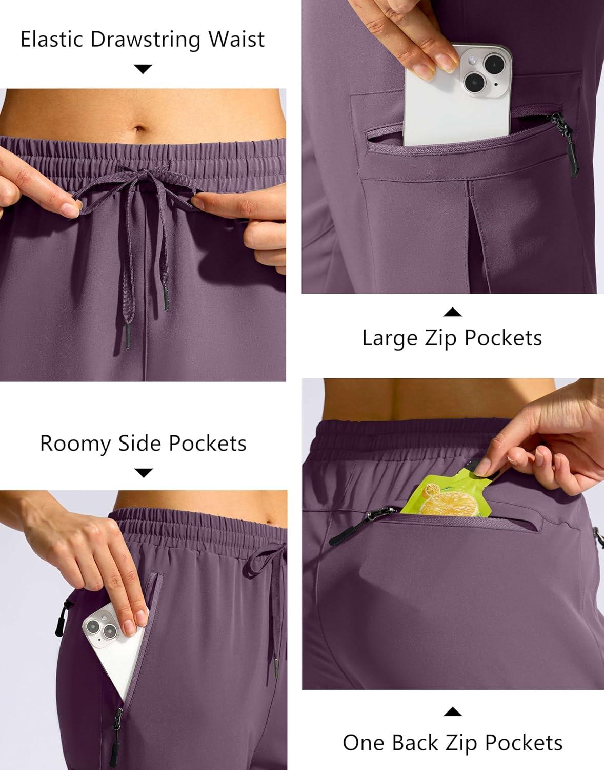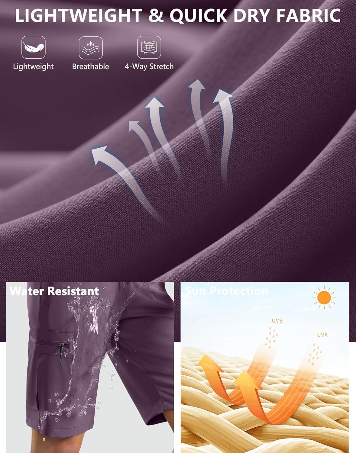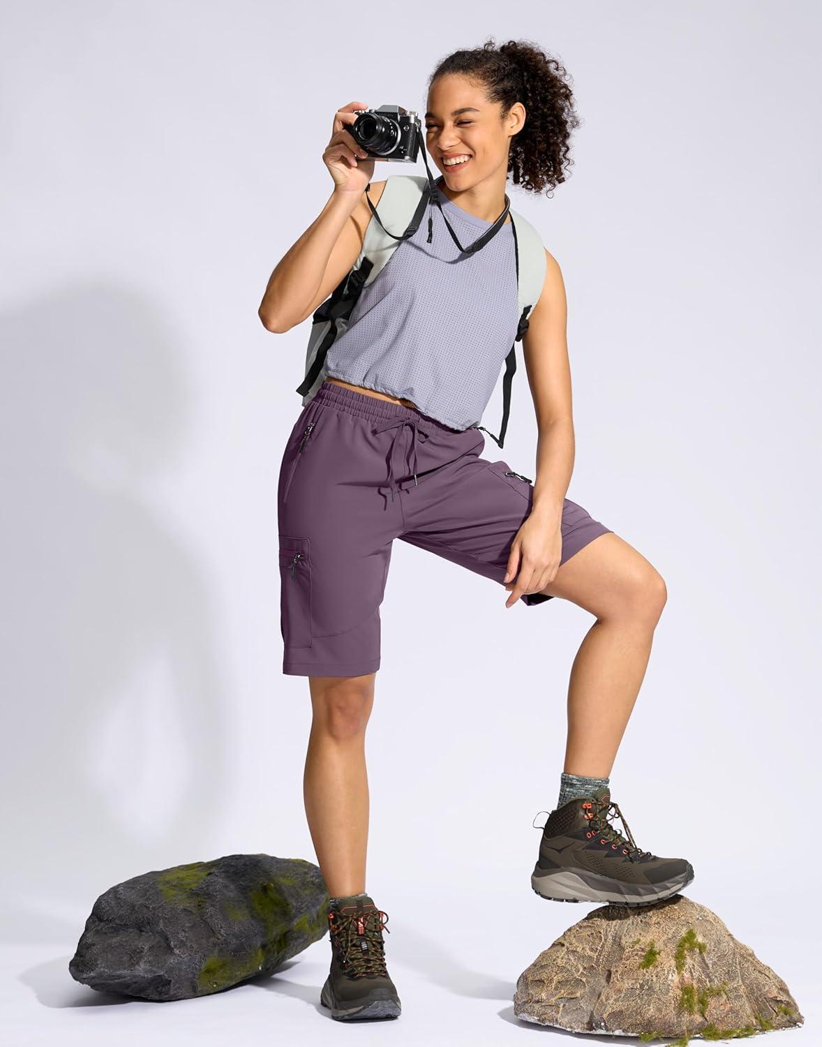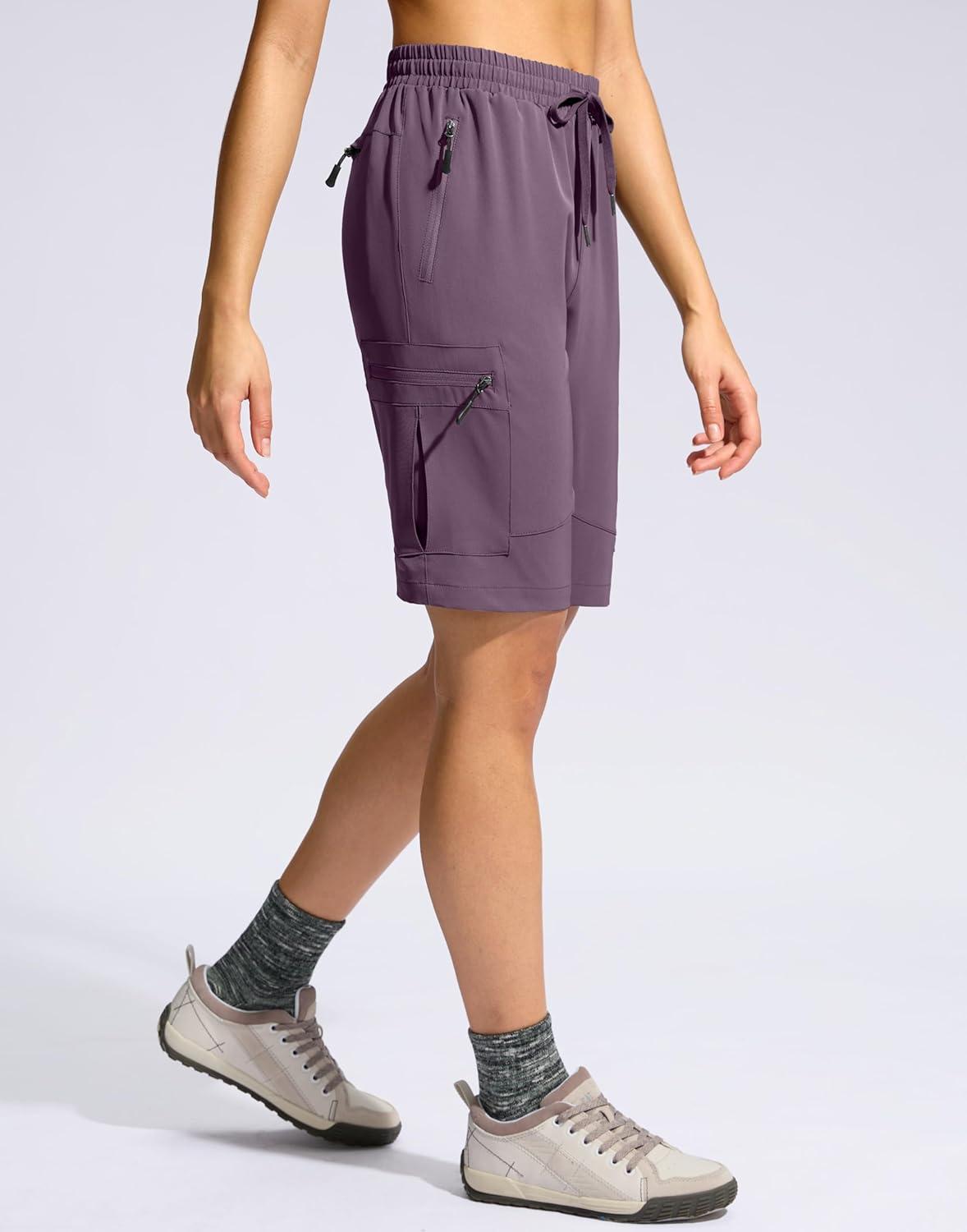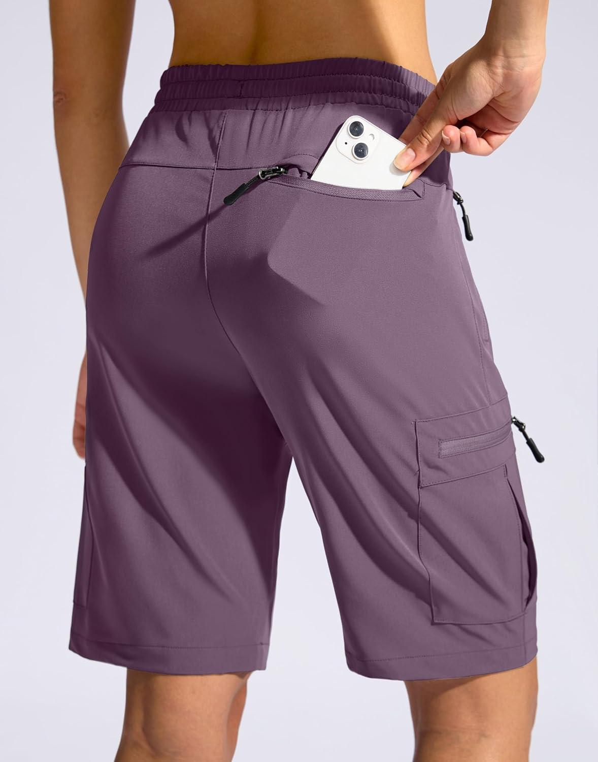 SANTINY Women’s 10” Lightweight Hiking Cargo Shorts with 5 Zipper Pockets Quick Dry Summer Long Travel Golf Shorts for Women(Purple)