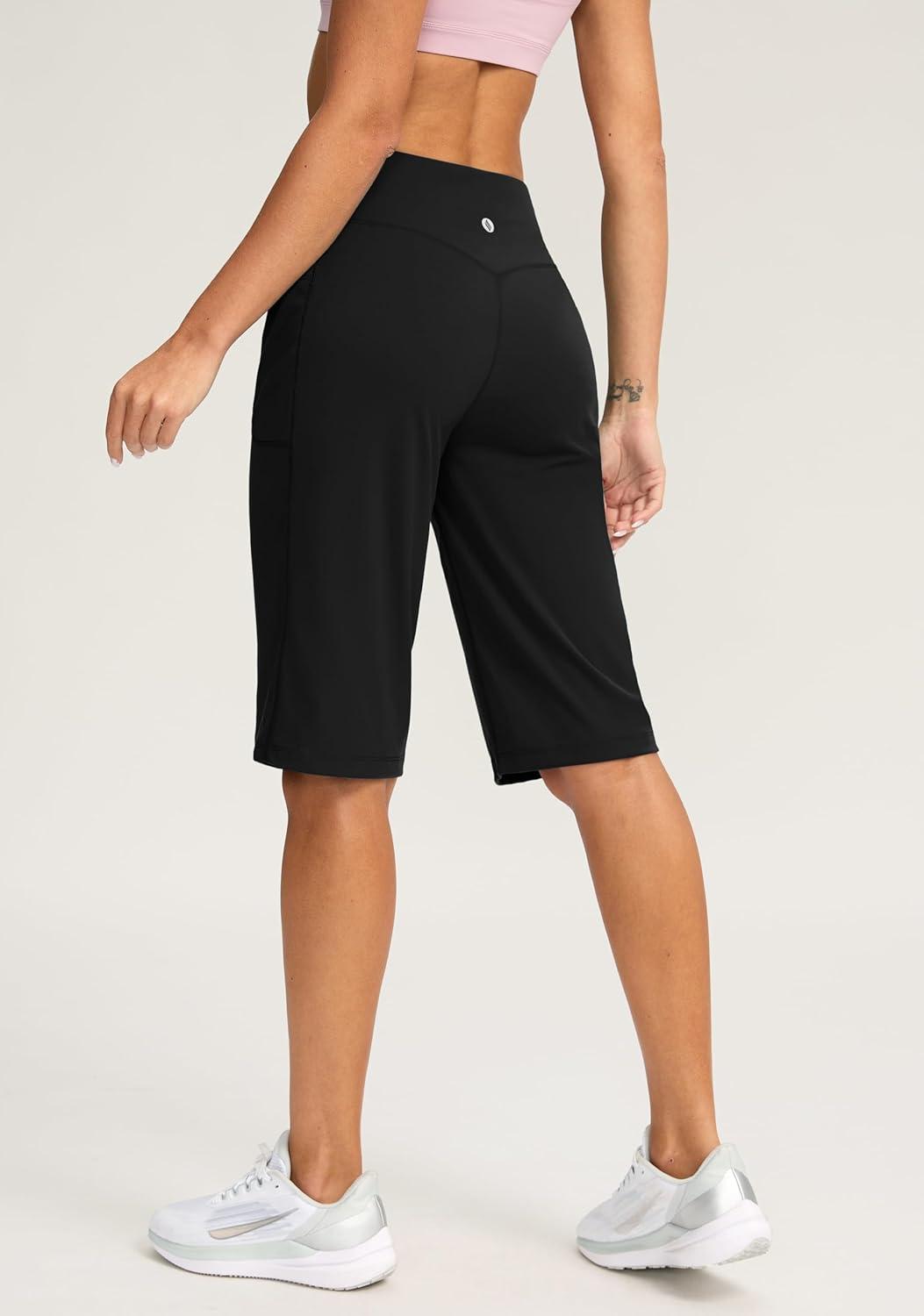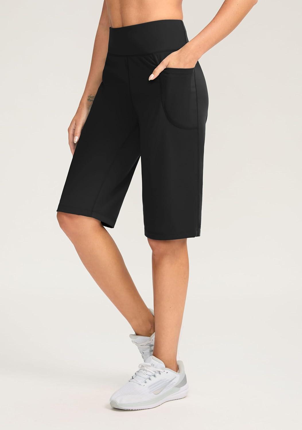 SANTINY Women’s 12″ Bermuda Shorts Knee Length with Pockets High Waisted Long Shorts for Women Stretch Casual Walking(Black)