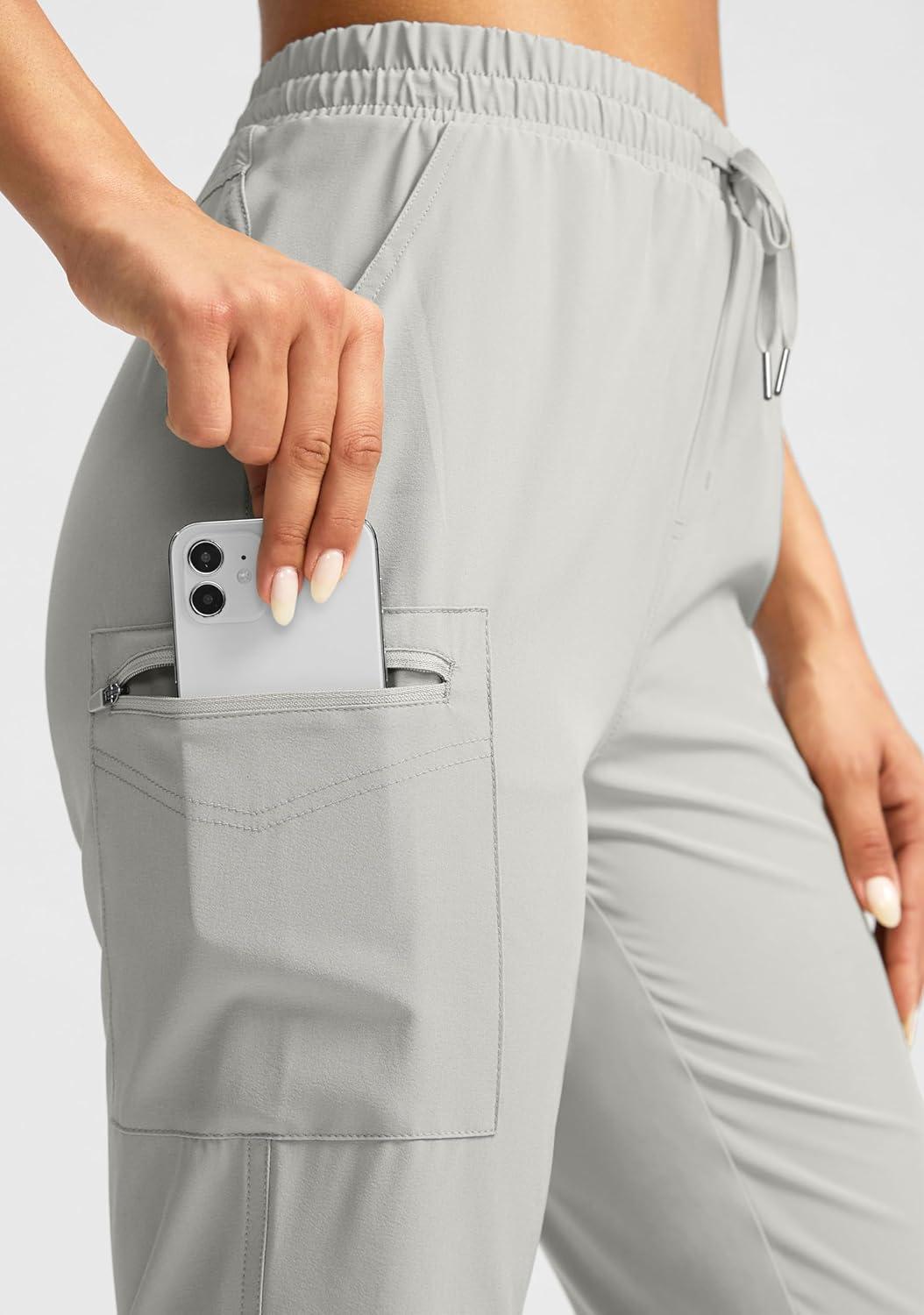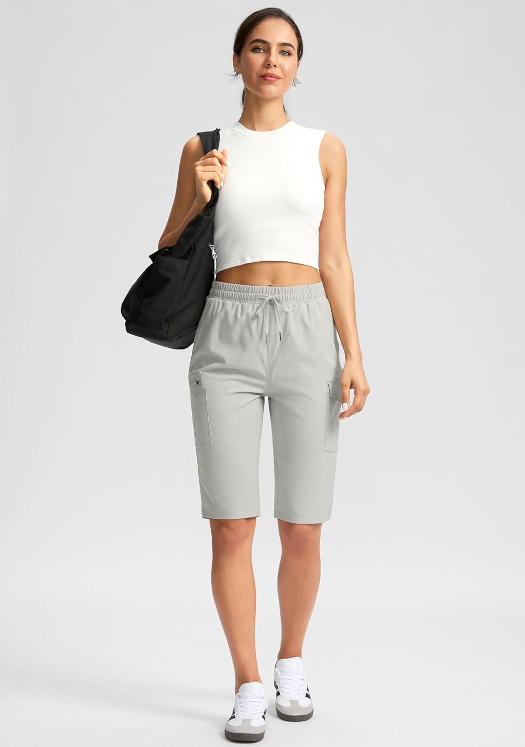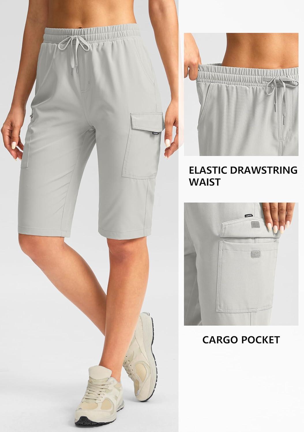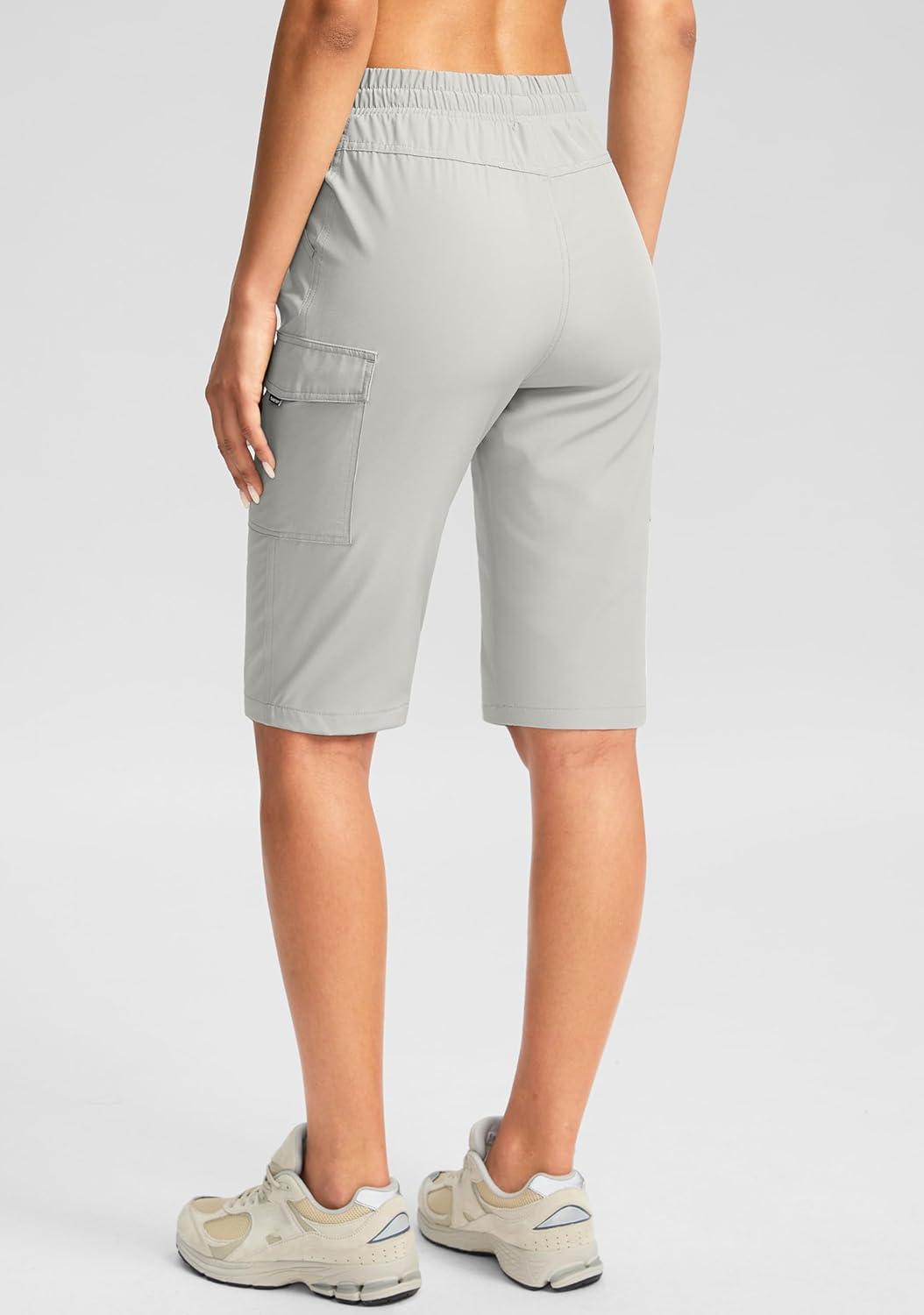 SANTINY Women’s 13″ Long Hiking Shorts Knee Length Quick Dry Cargo Bermuda Shorts for Women with Zipper Pockets(Light Grey)