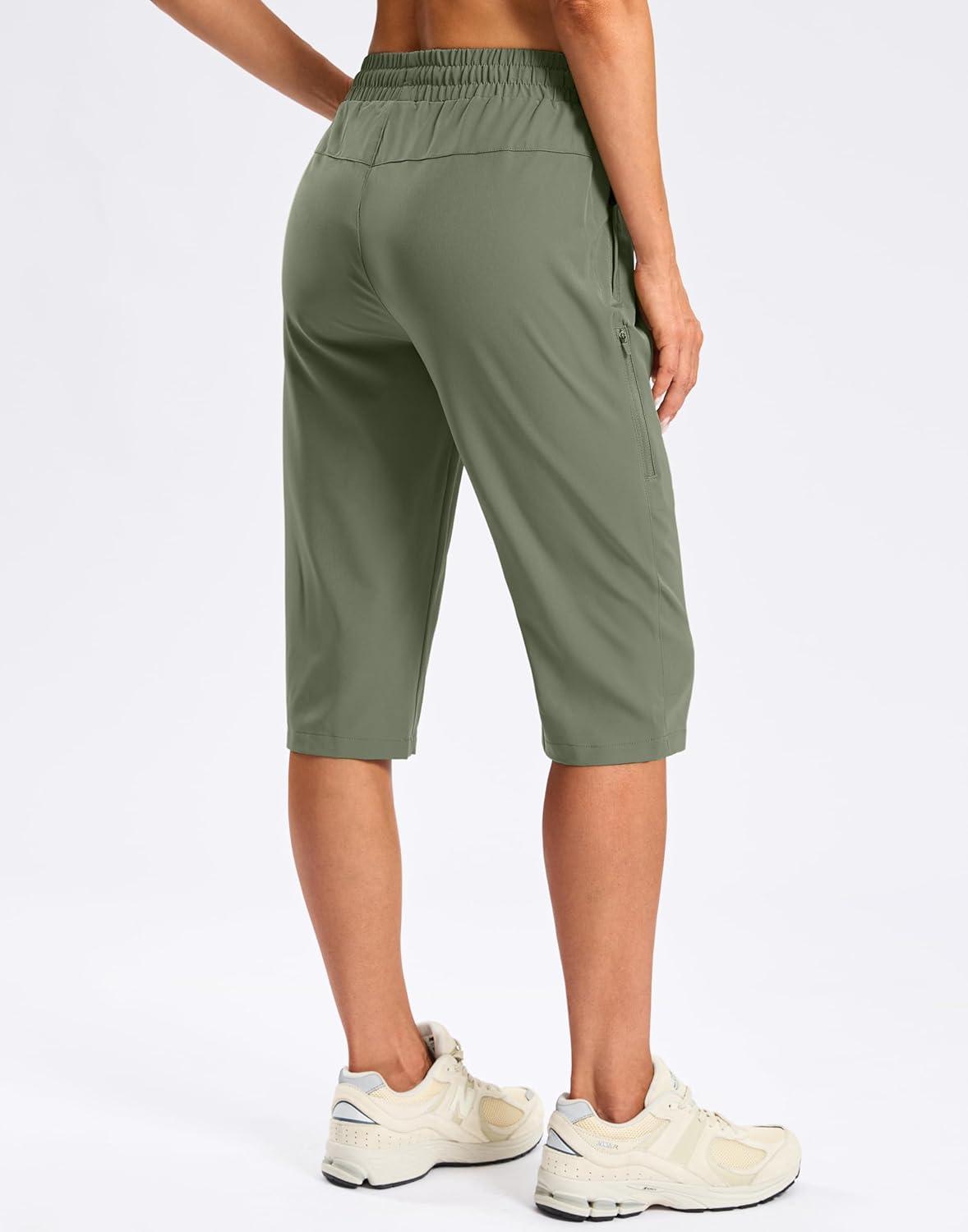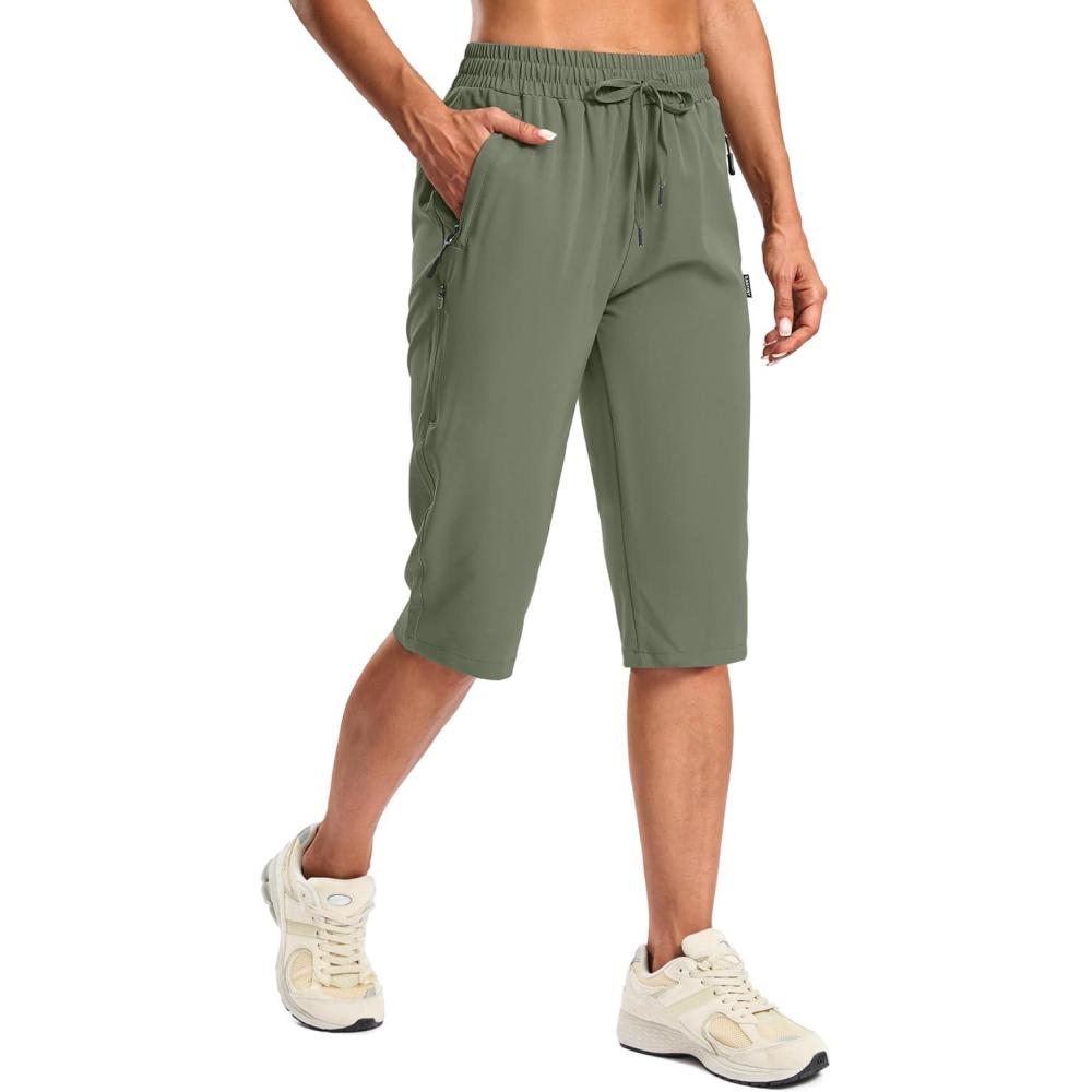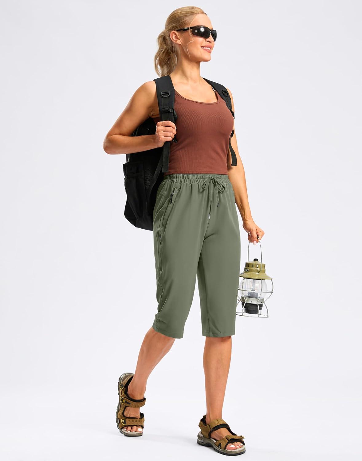 SANTINY Women’s 15″ Long Shorts with Pockets Below The Knee Length Hiking Cargo Capris Lightweight Quick Dry Bermuda Shorts(Grey Sage)