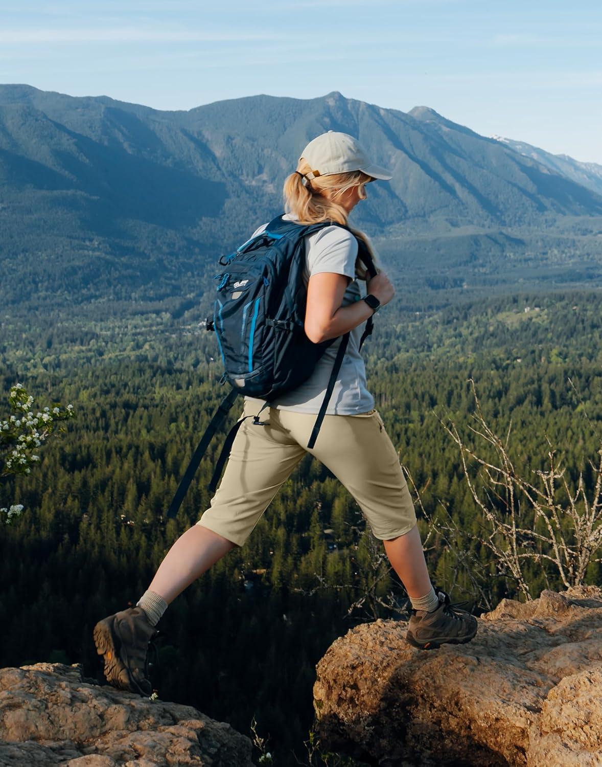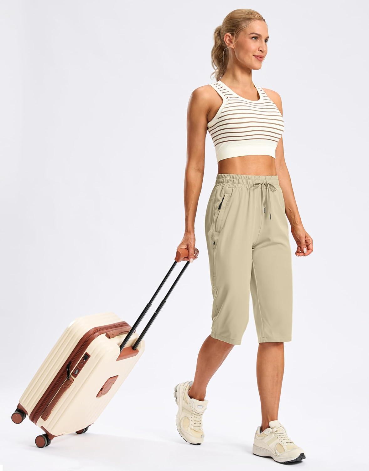 SANTINY Women’s 15″ Long Shorts with Pockets Below The Knee Length Hiking Cargo Capris Lightweight Quick Dry Bermuda Shorts(Light Khaki)