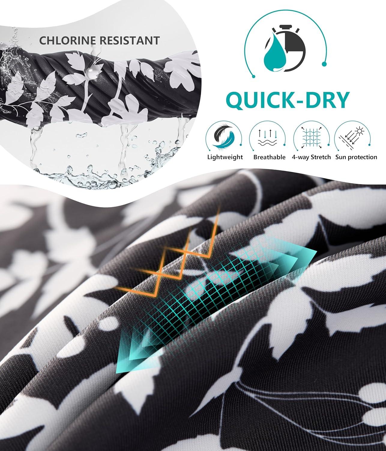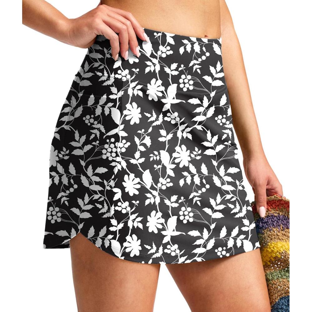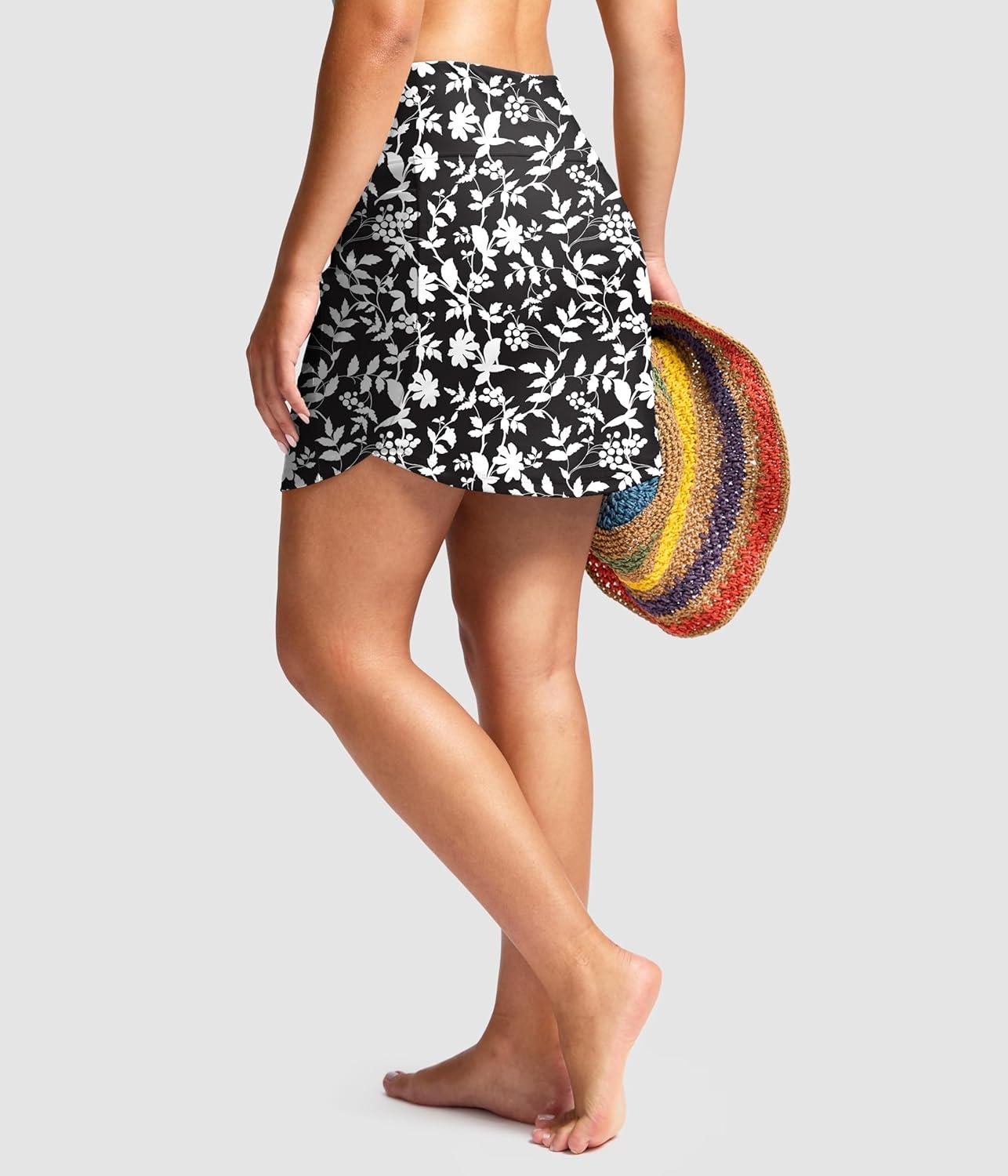 SANTINY Women’s 17” Long Swim Skirt with Pockets High Waisted Modest Tummy Control Swimsuit Skirt Bathing Suit Bottoms(Black Flower)