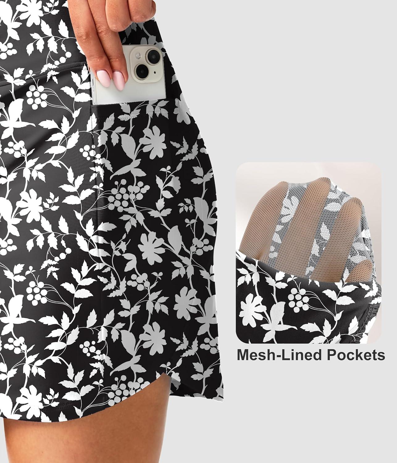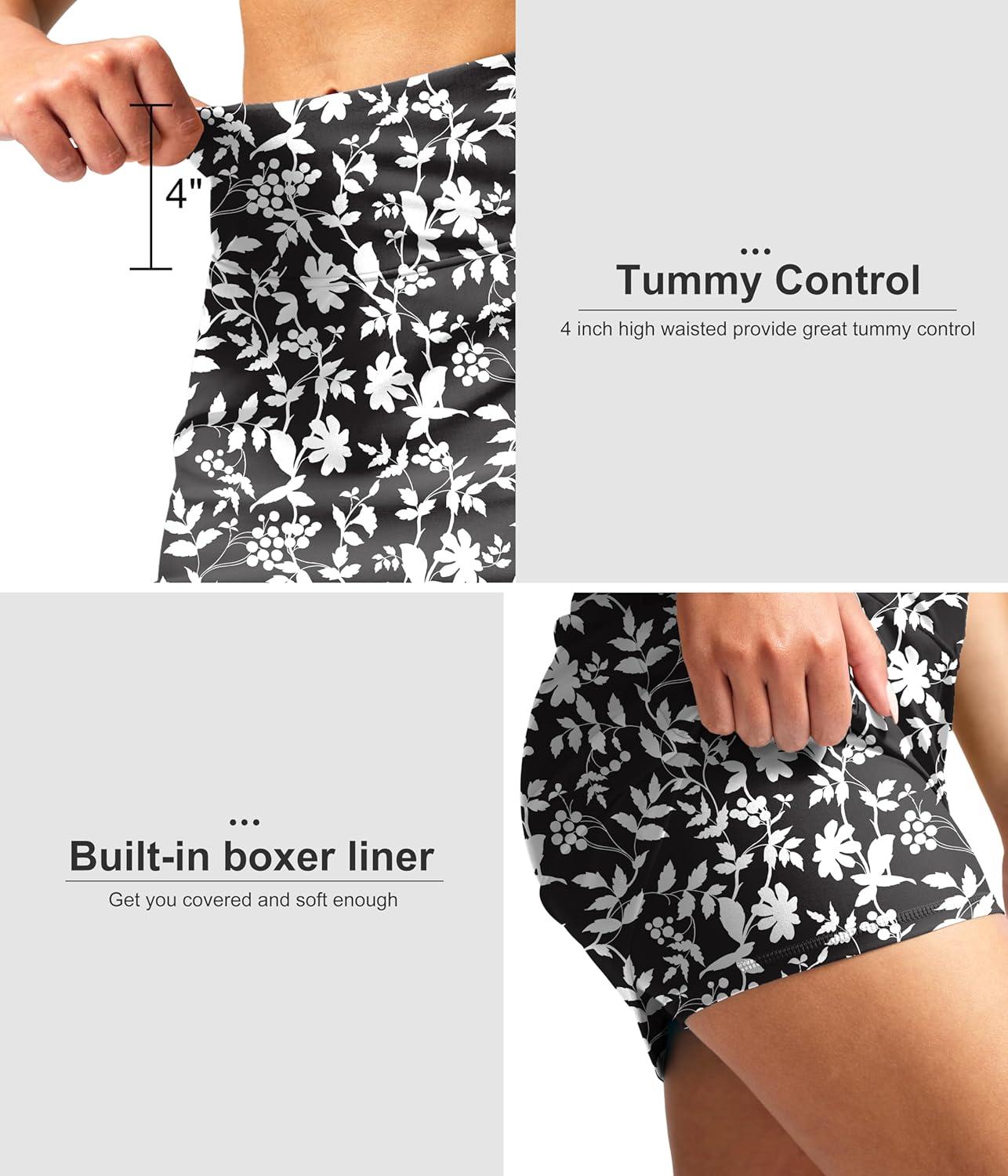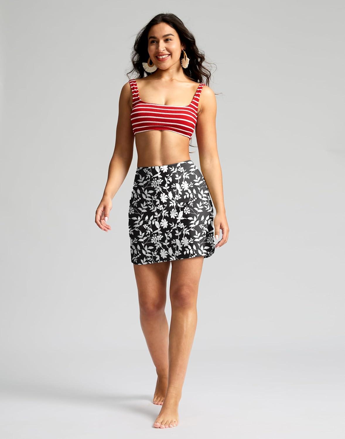 SANTINY Women’s 17” Long Swim Skirt with Pockets High Waisted Modest Tummy Control Swimsuit Skirt Bathing Suit Bottoms(Black Flower)